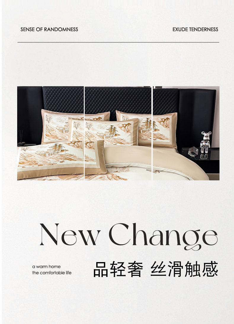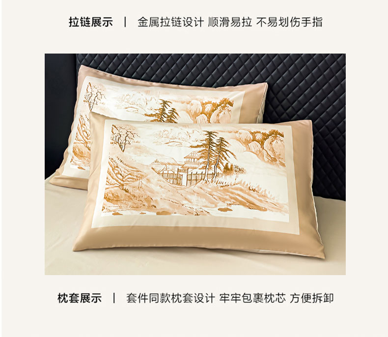 2024新款水洗真丝画意山水系列四件套 画意山水-咖