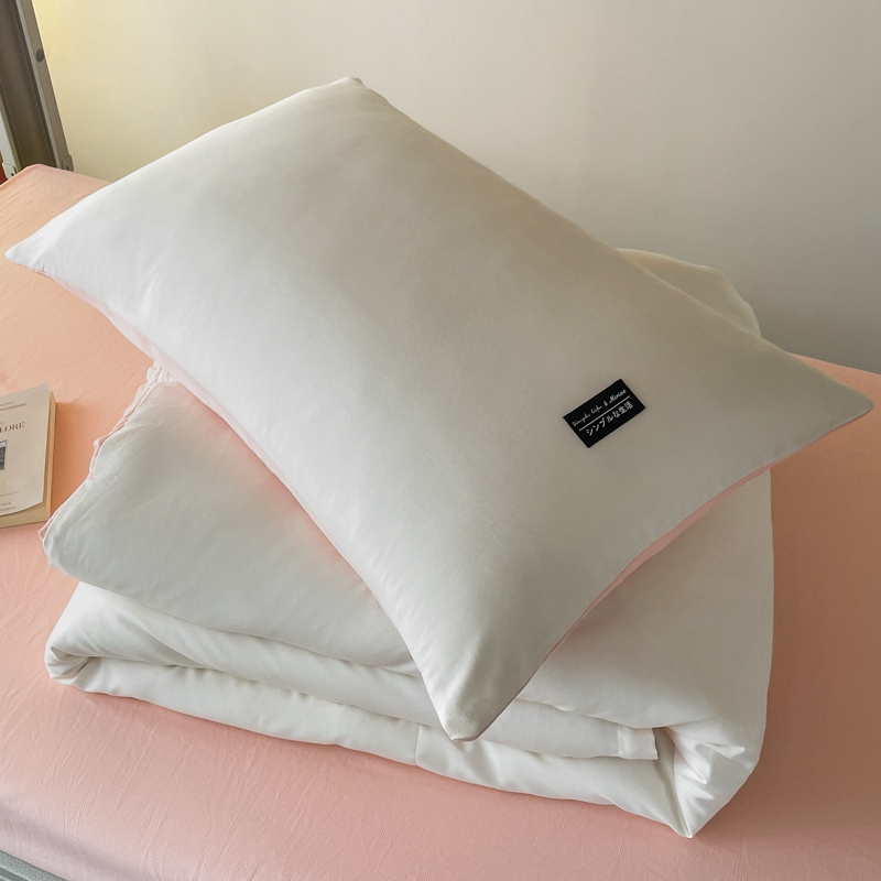 商品名称:米瑞娜2024水洗棉麻双拼纯色学生款枕套 奶白+冰粉