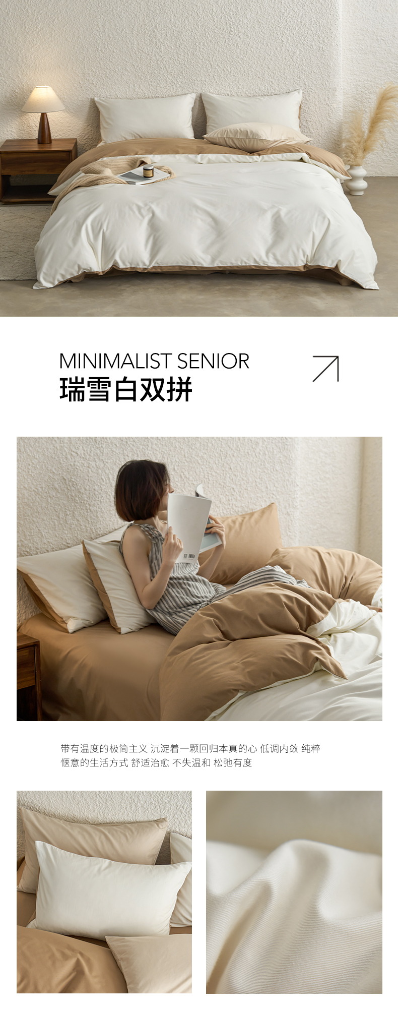 商品名称:千朵森 2024新款全棉贡缎双拼纯色四件套 暗香-瑞雪白双拼