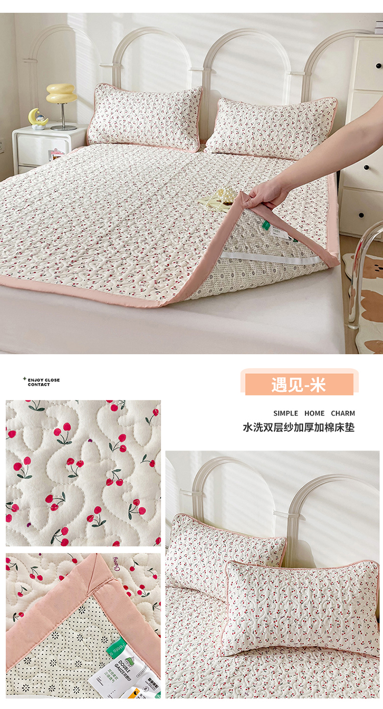 (总)纽缦家纺 水洗双层纱加厚加棉床垫子夹棉床褥毯子,半眠日记,南岛小镇,嗨皮兔,夹心果冻,小兔堡,小南瓜,小橘子,小熊猫,小熊院长,小绿鸭,小黑球,心动兔兔,捉迷藏,撞进晚风,日记小姐,旧岛望海,曼塔玫瑰,桃你喜欢,甜茶日记,甜酥少女,童话小熊,素颜捧花,莓天开心,蓝小鸭,蓝海玫瑰,遇见-米,遇见-紫,香草薄荷
