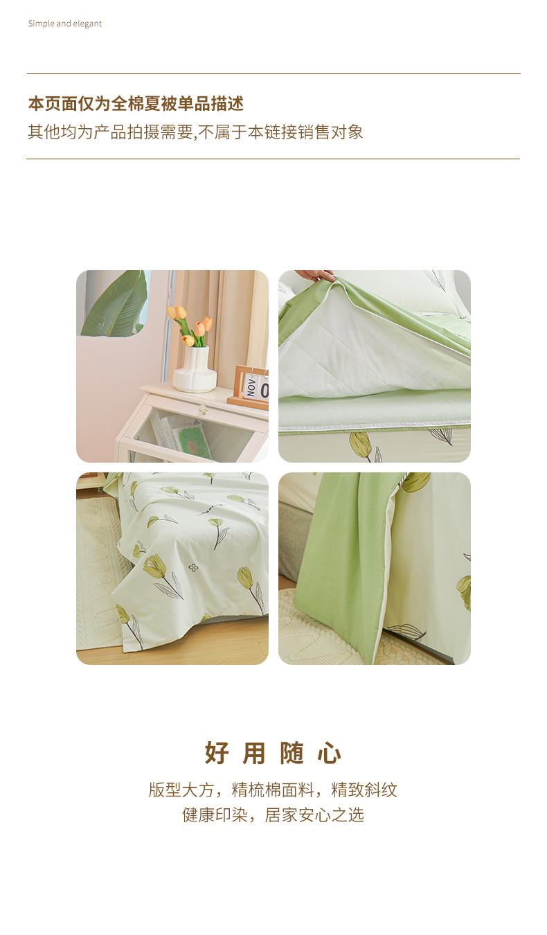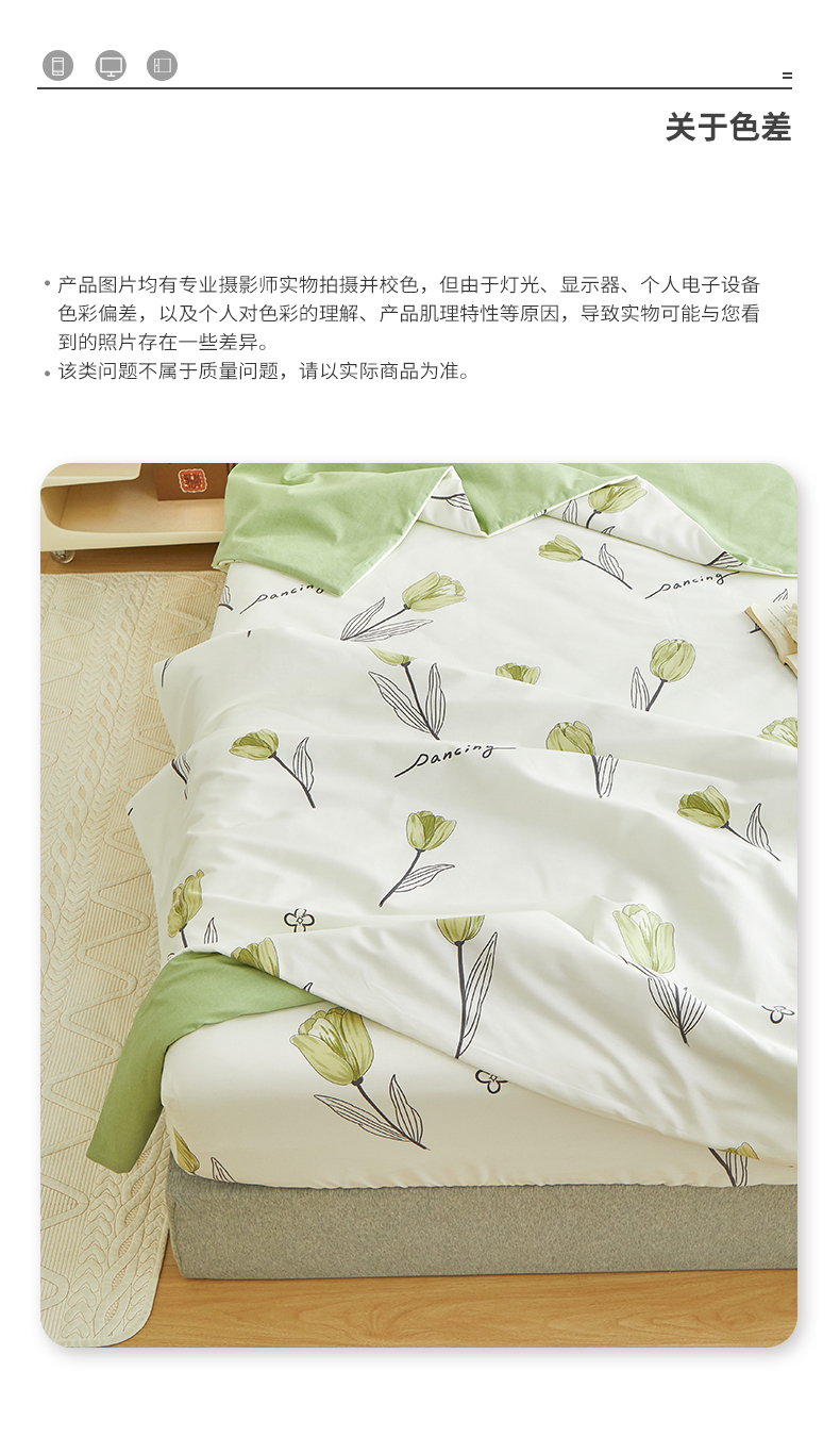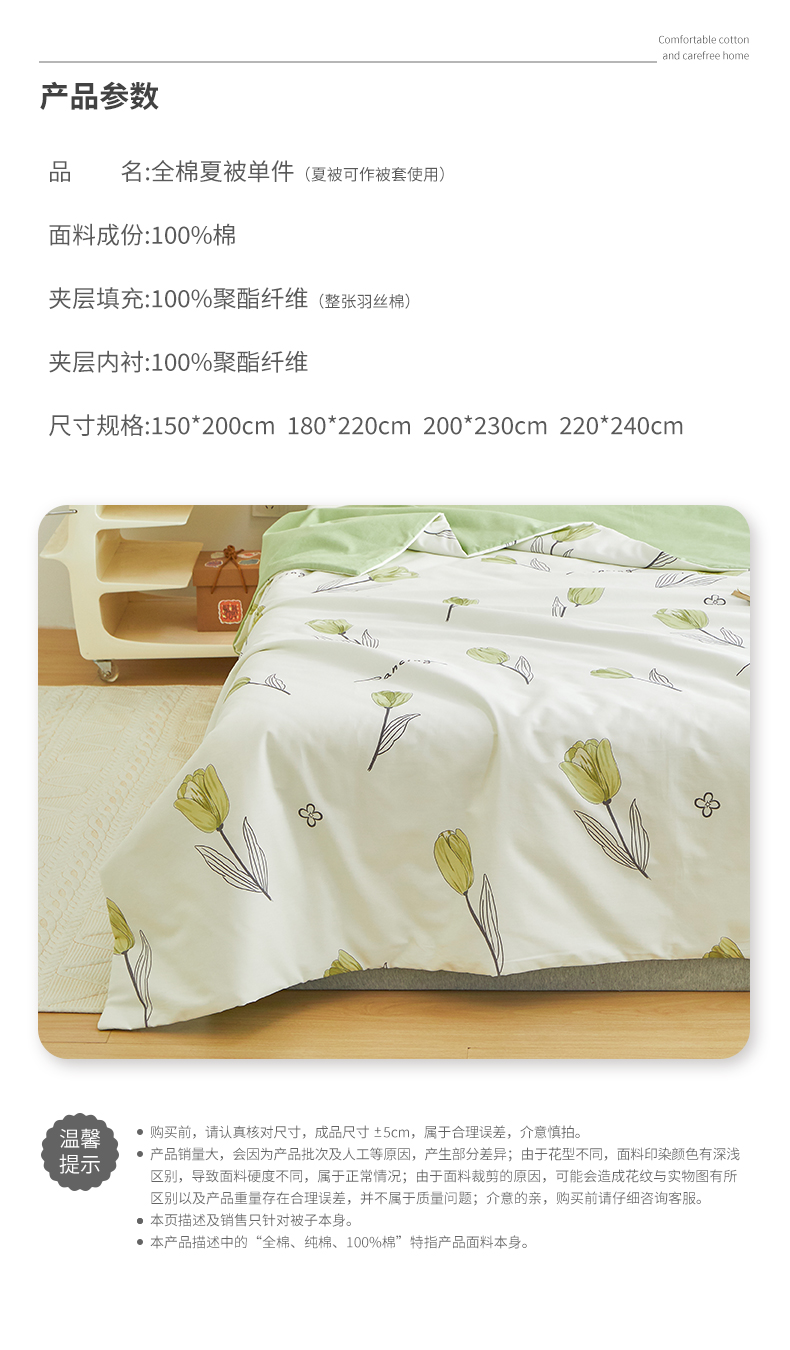 商品名称:元元被芯 2024新款全棉小清新夏被四件套-单夏被 娇兰-绿