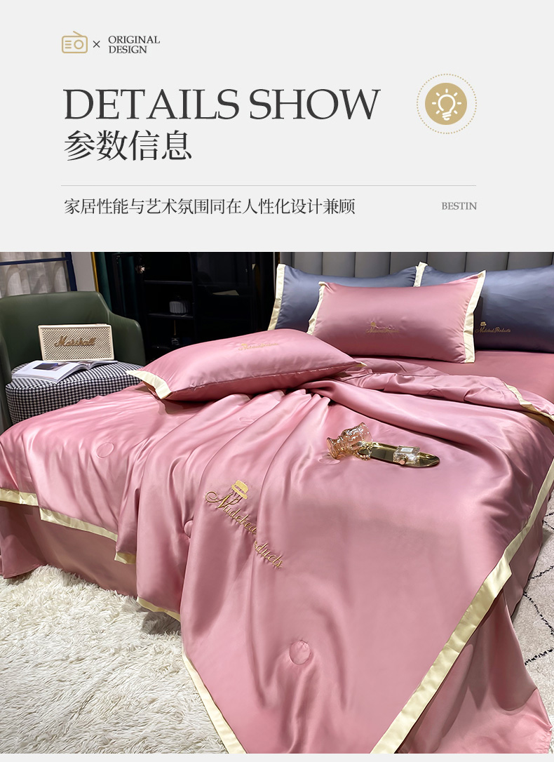 • 91家纺网 家纺一手货源 找家纺 经年 2025新款纯色水洗真丝夏被 凉夏-豆沙