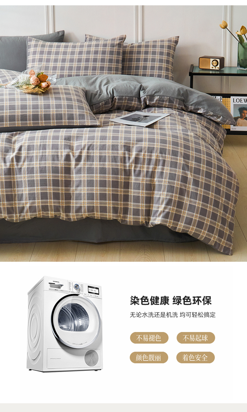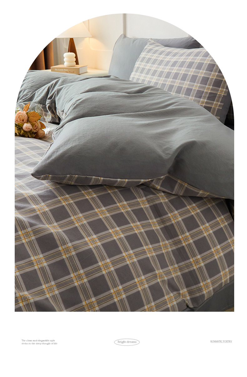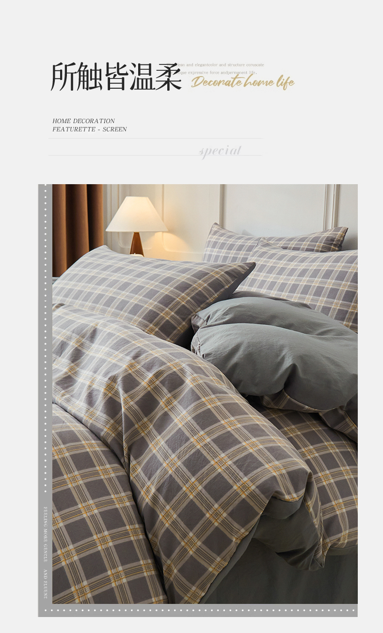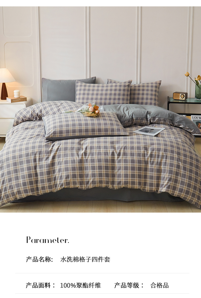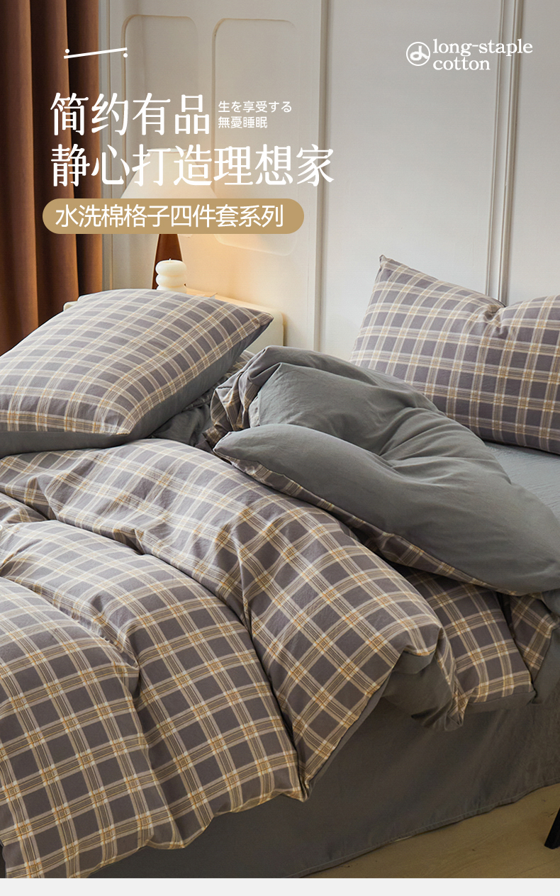 商品名称:(总)盛秋家纺 2025新款水洗棉格子条纹系列四件套【易安阁】