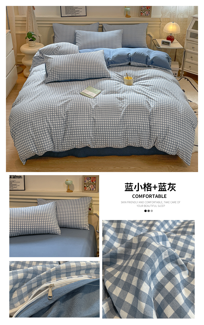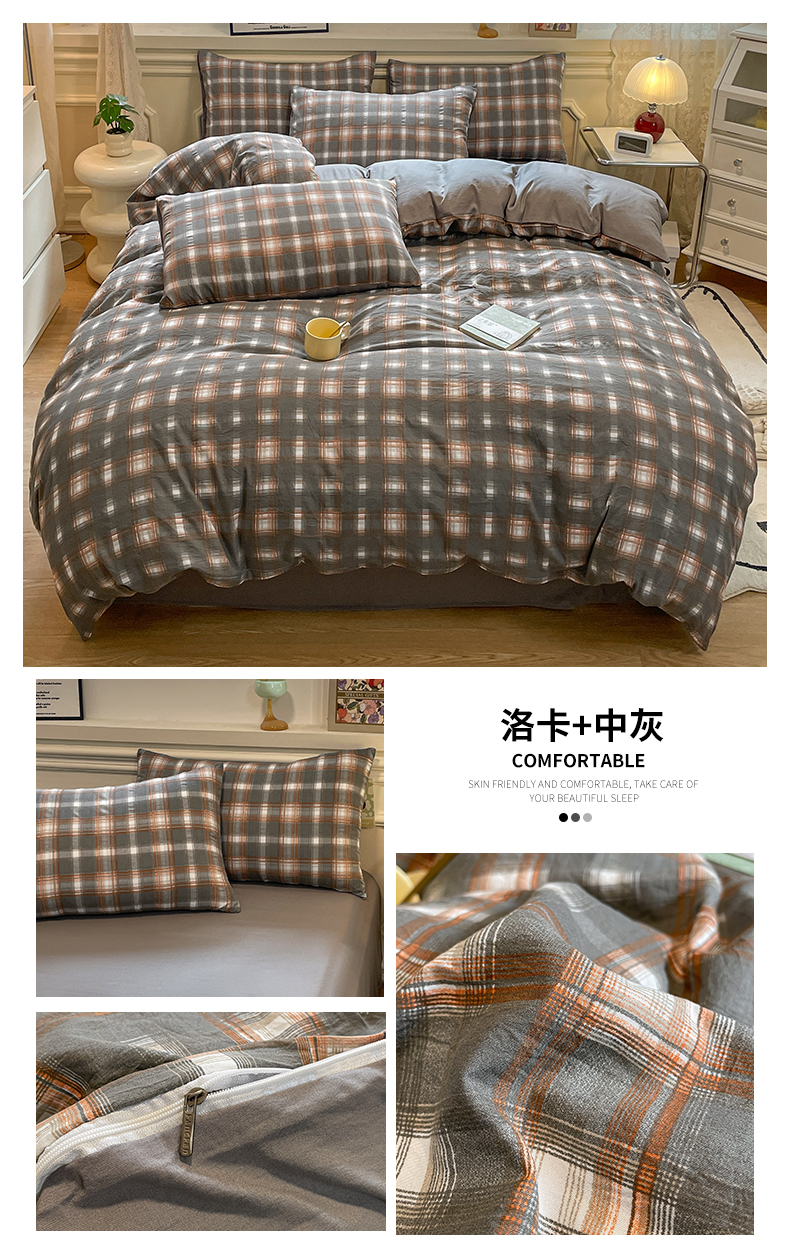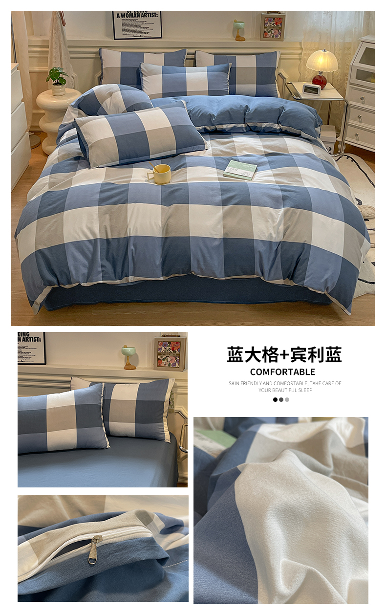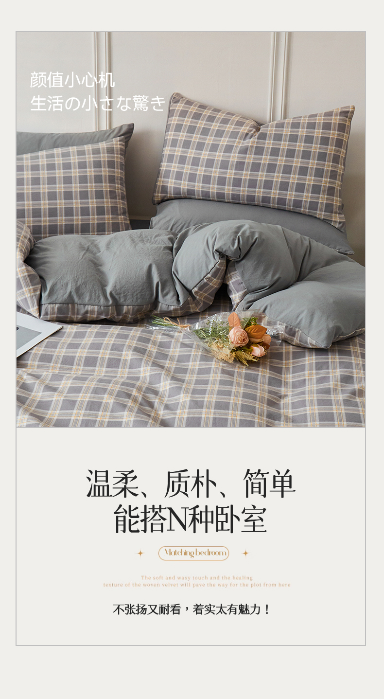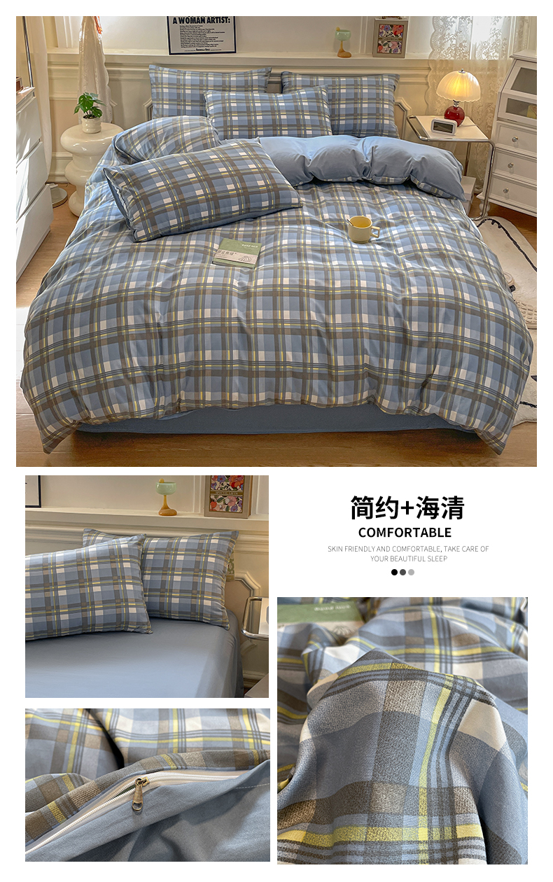 商品名称:(总)盛秋家纺 2025新款水洗棉格子条纹系列四件套【易安阁】