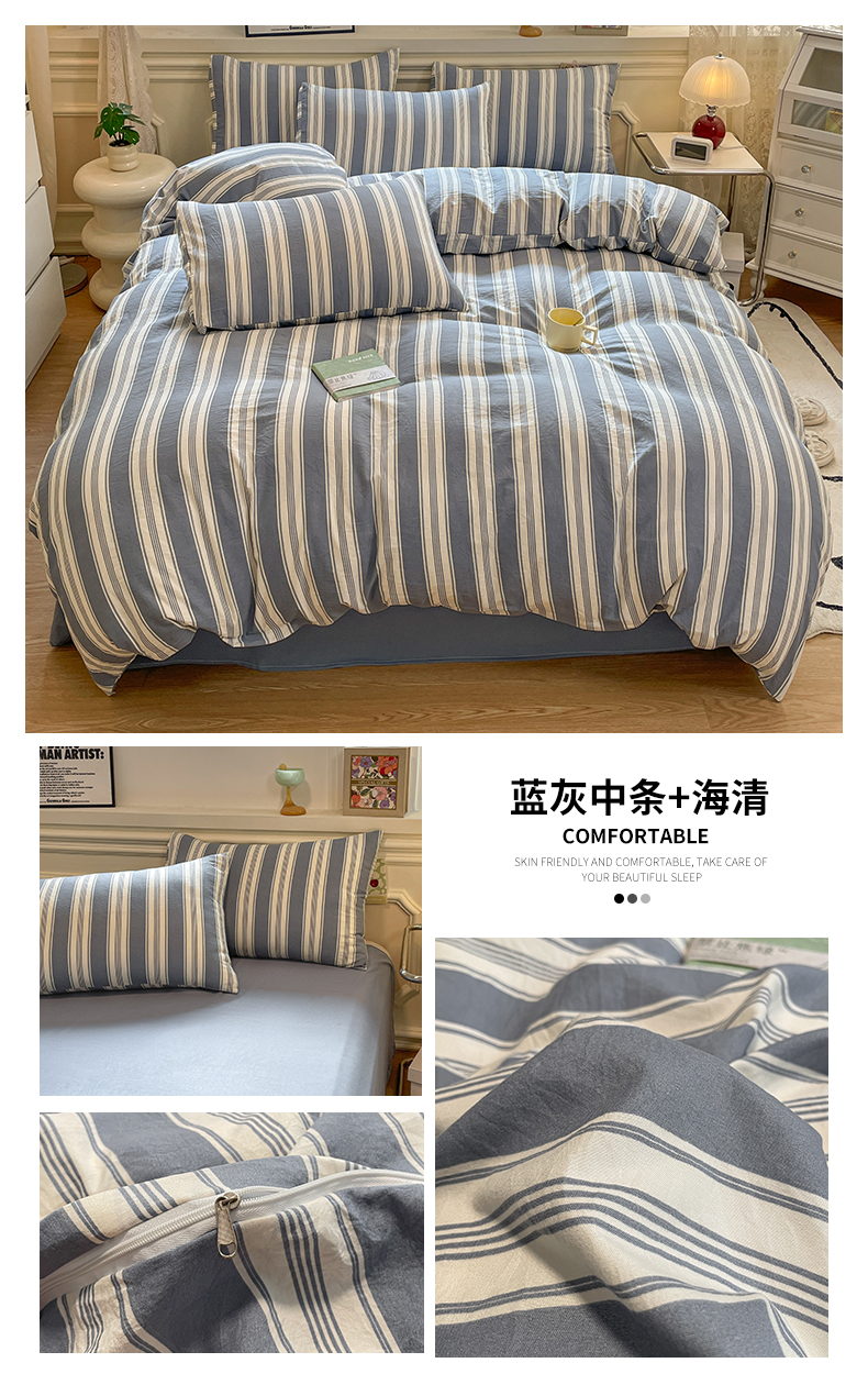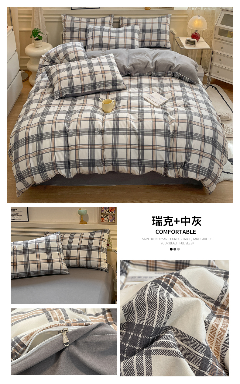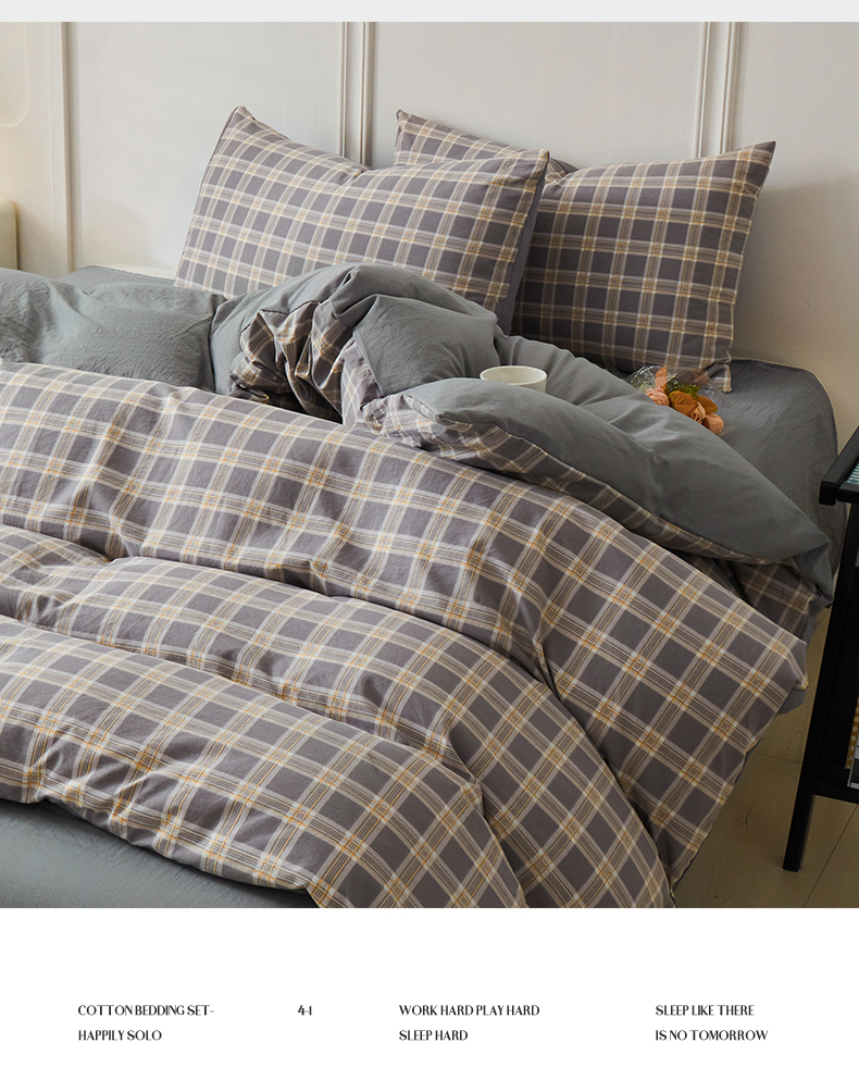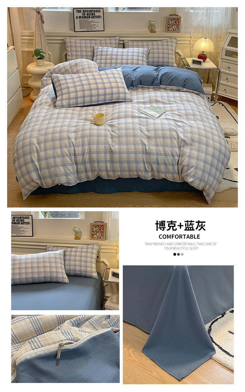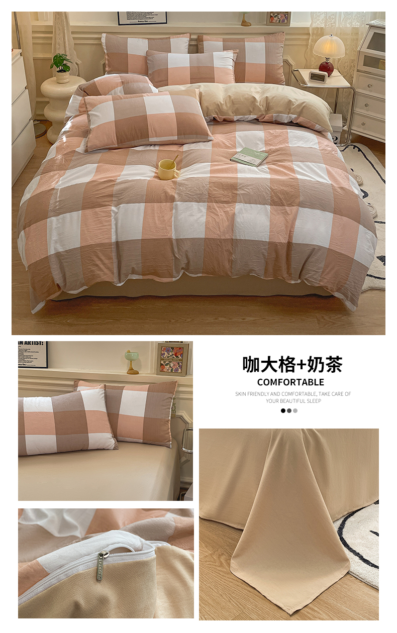 商品名称:(总)盛秋家纺 2025新款水洗棉格子条纹系列四件套【易安阁】