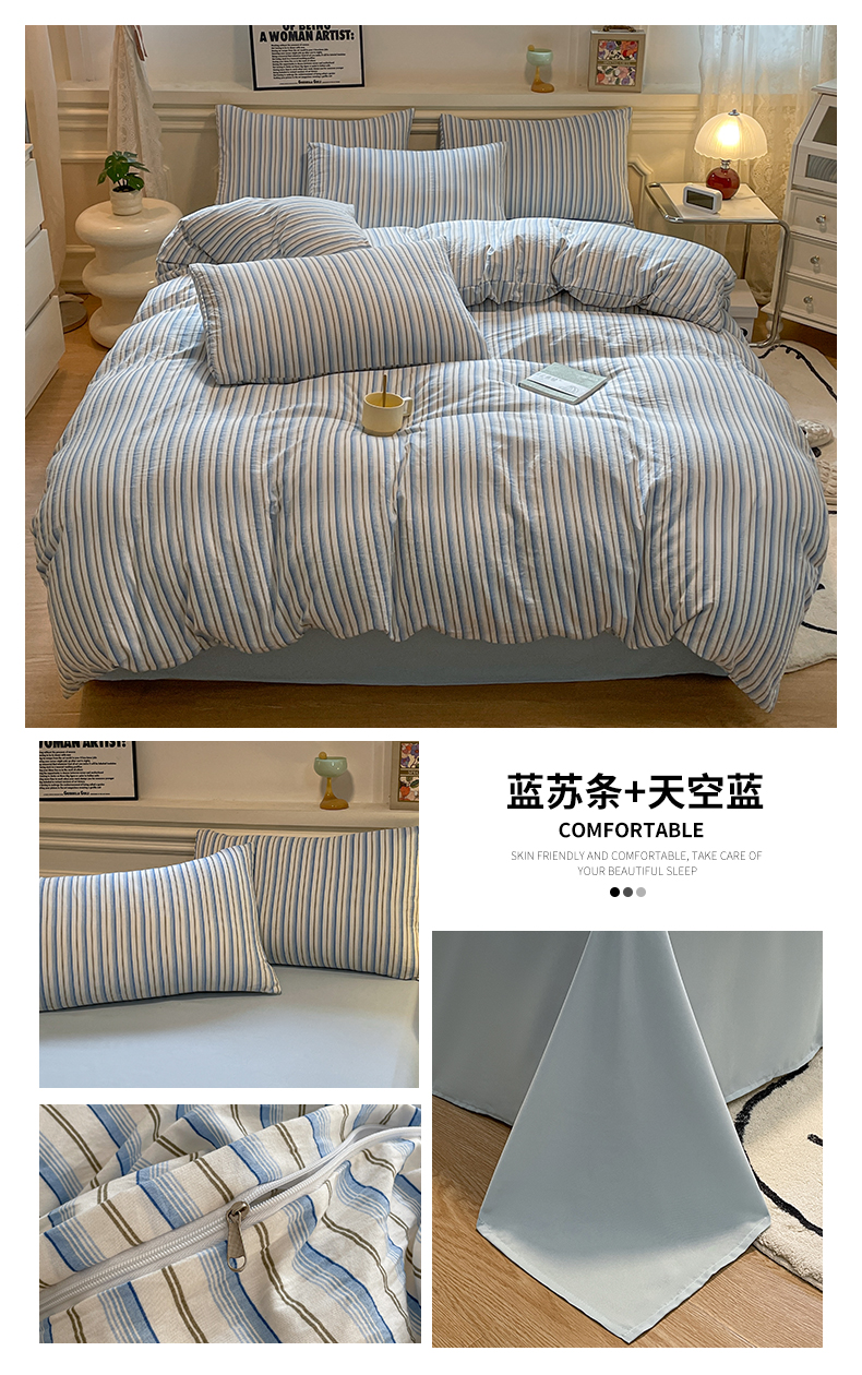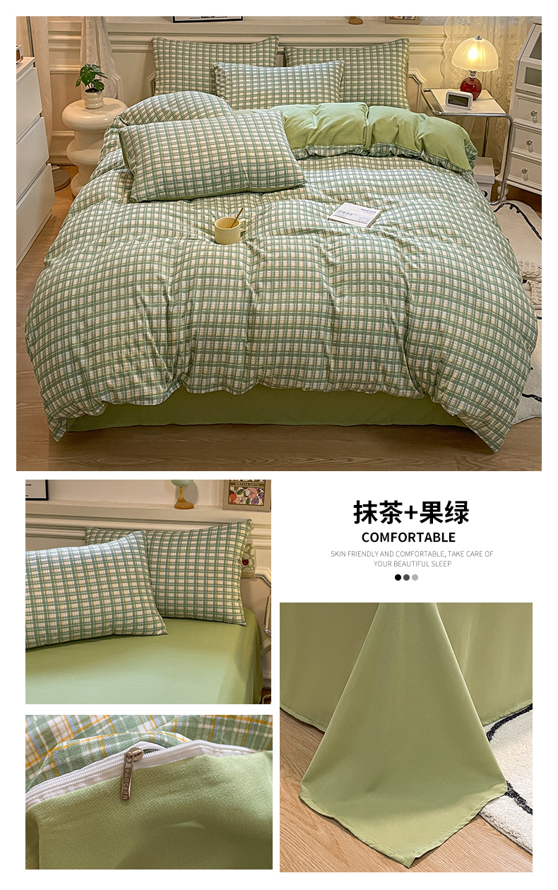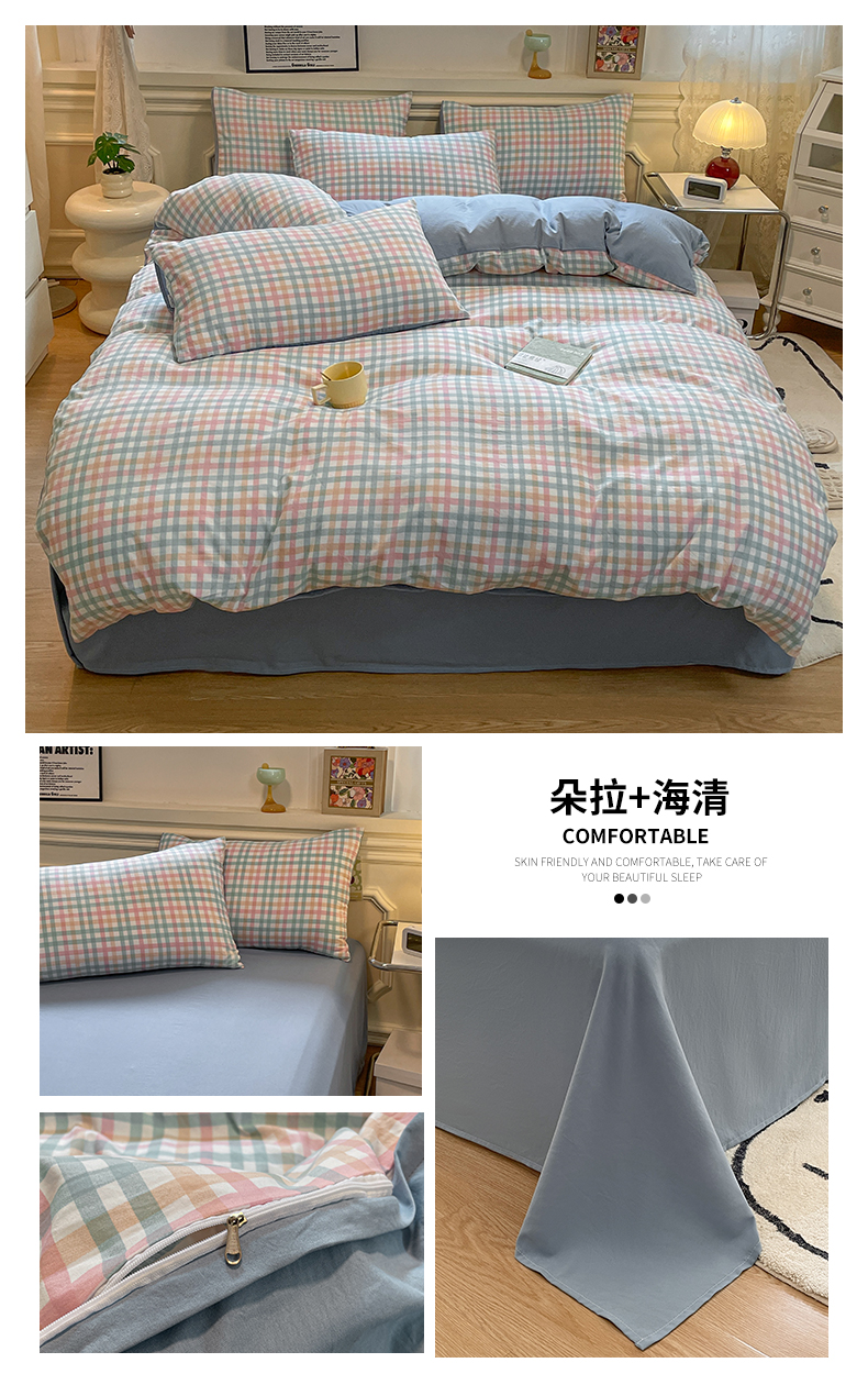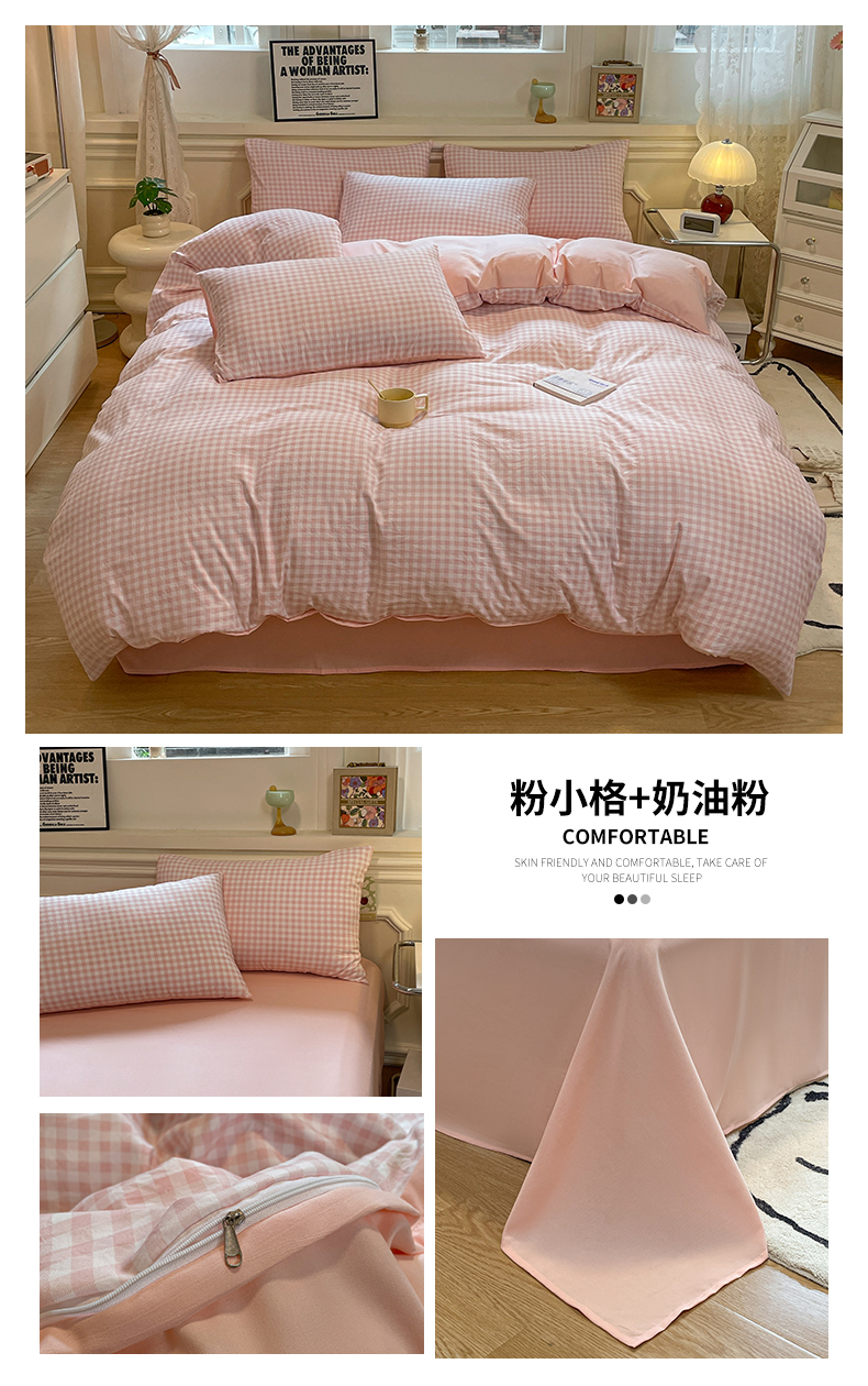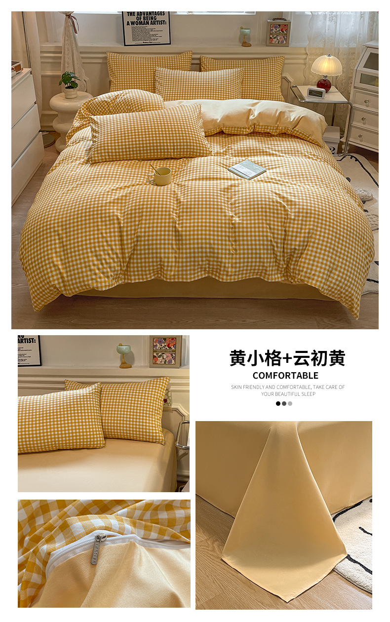 商品名称:(总)盛秋家纺 2025新款水洗棉格子条纹系列四件套【易安阁】