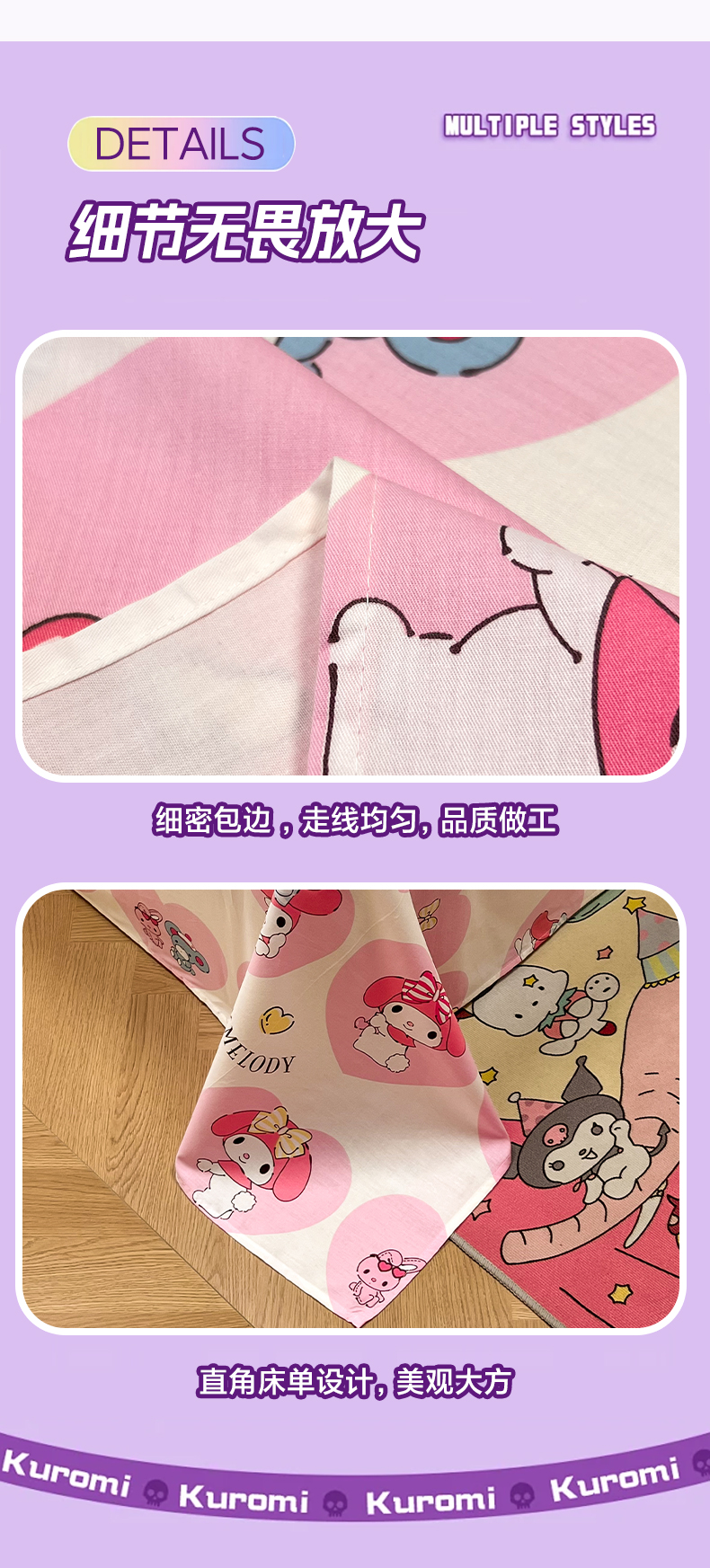 (总)沐辰 2025新款牛奶绒绣花三丽鸥系列四件套,酷酷库洛米,假日云朵狗,暖心凯蒂猫,骑行蛙蛙,气球美乐蒂,玩家帕恰狗