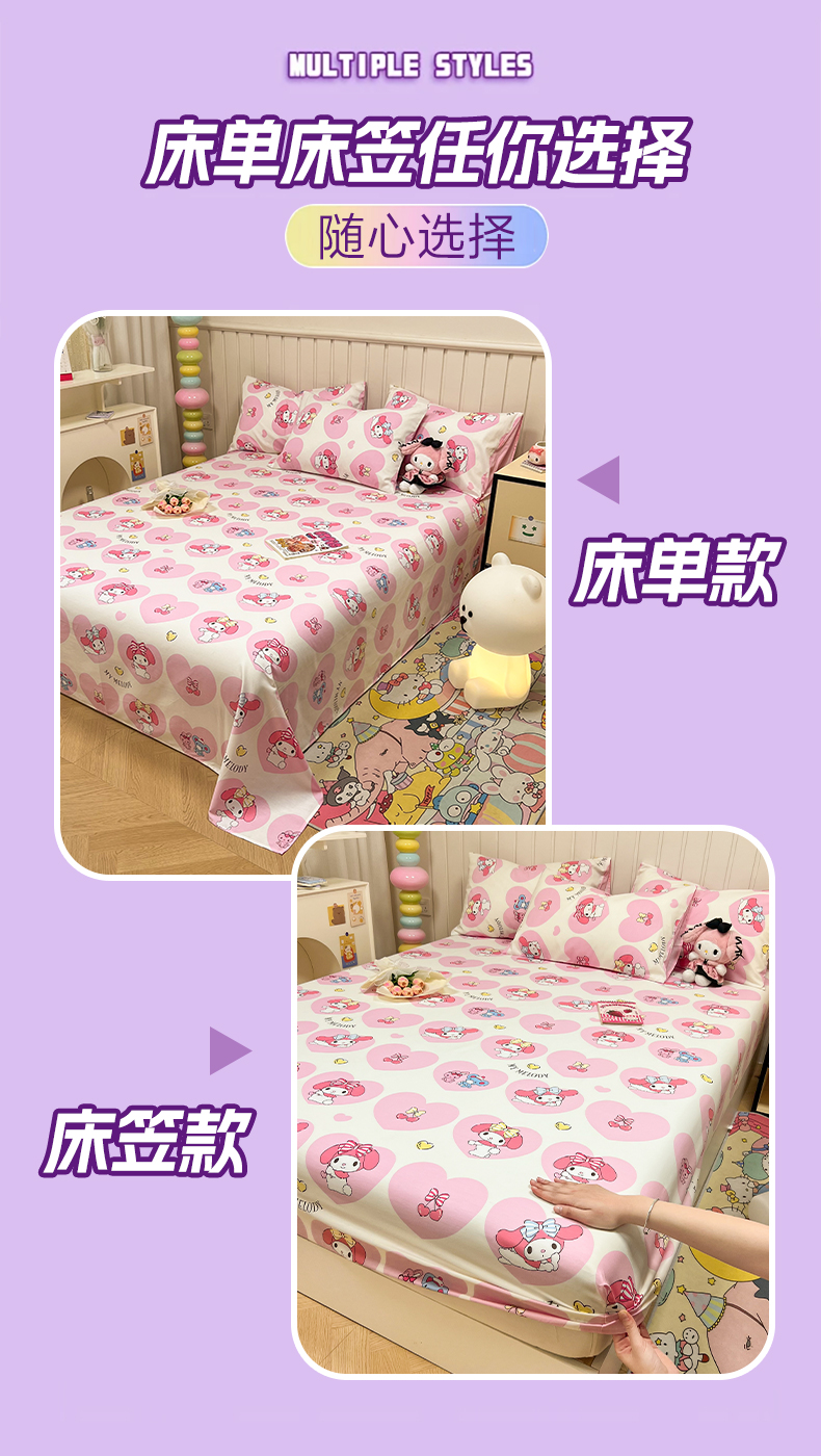 商品名称:沐辰 2024新款正版三丽鸥花型床单 樱桃美乐蒂