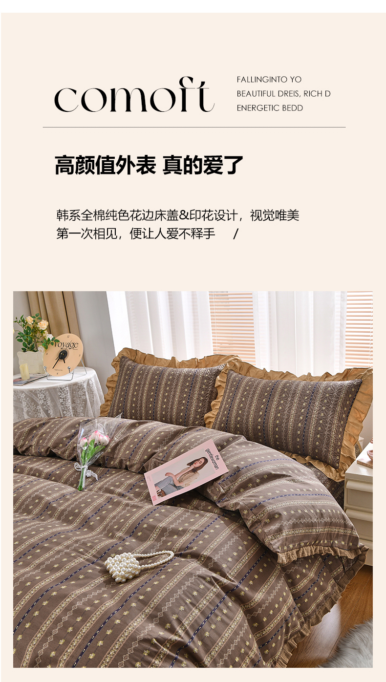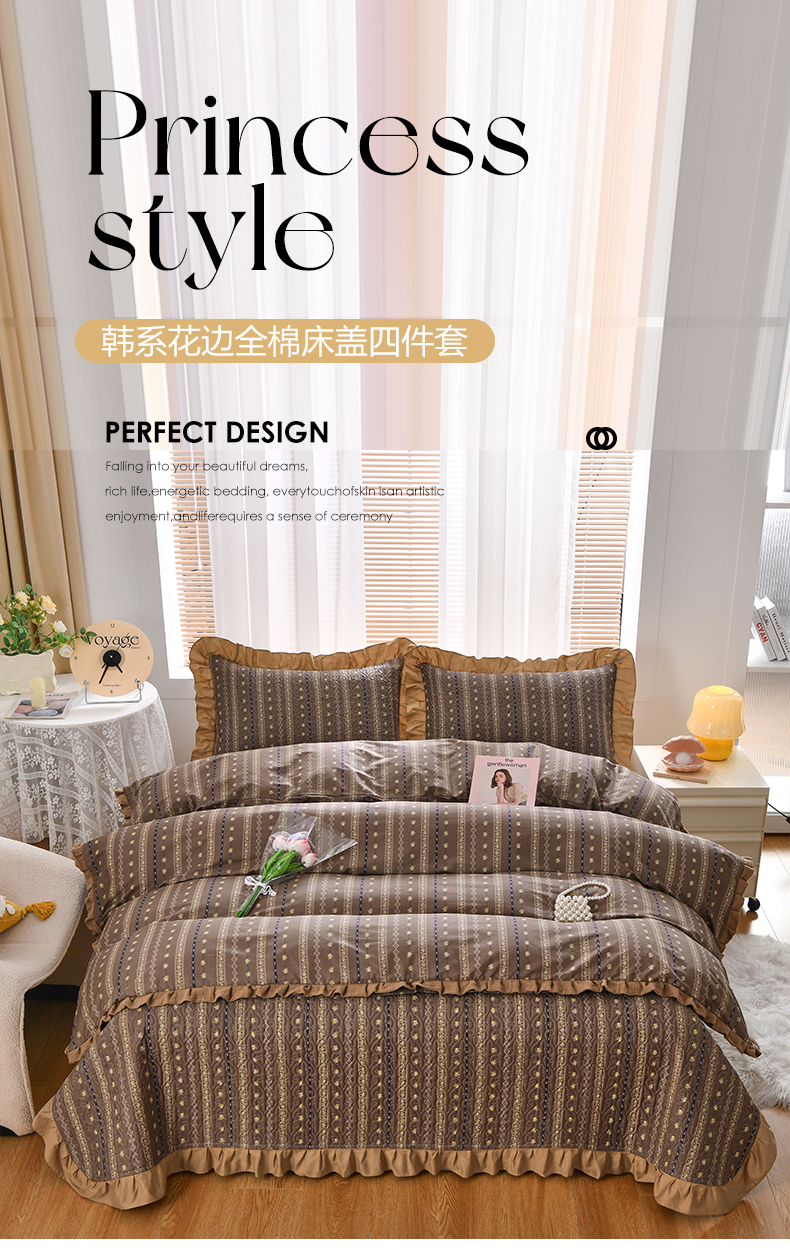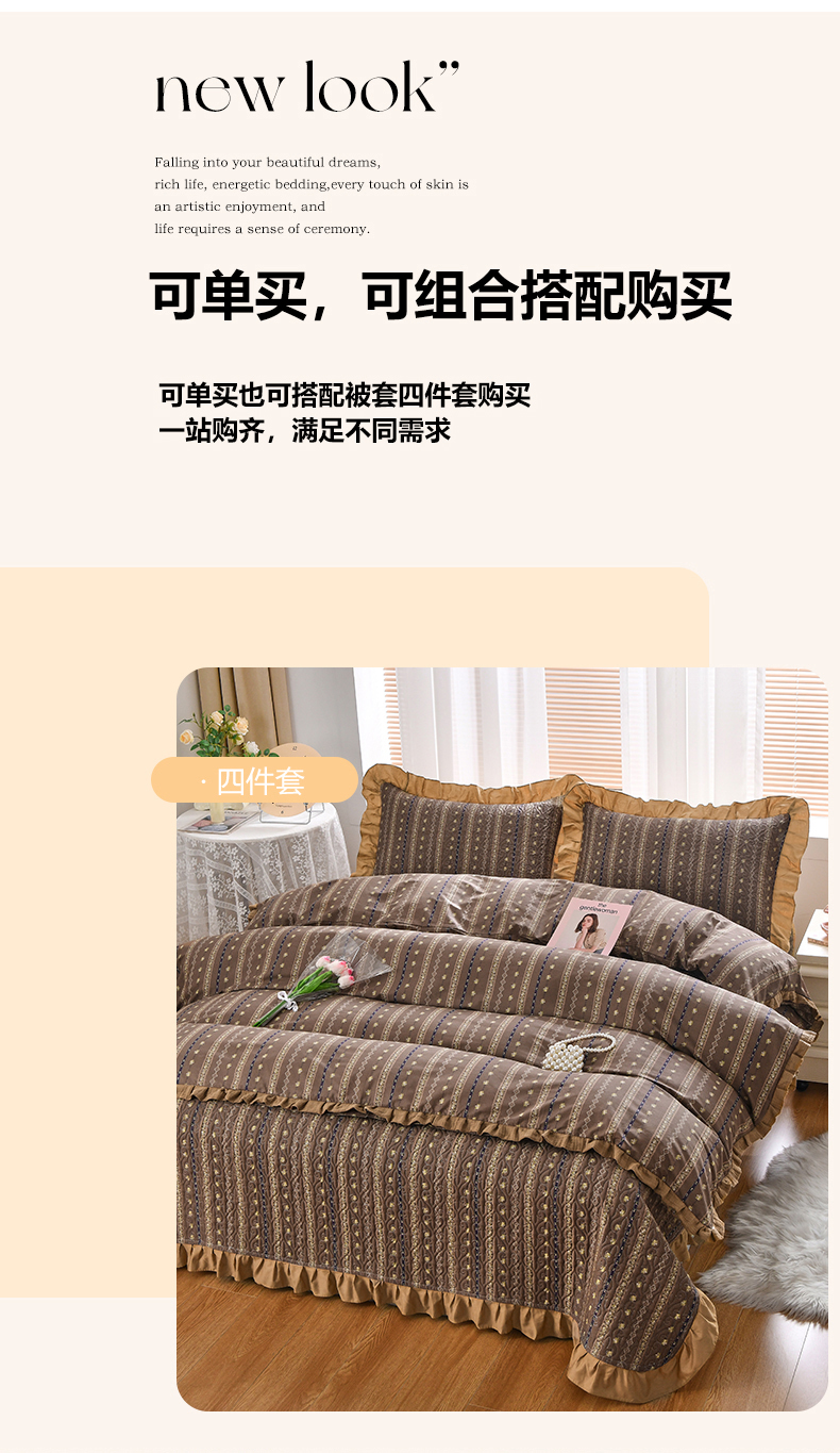 当前位置: 91家纺网 > 商品网购 > 床品套件 > 四件套 > 全棉普通四件套 > 梦精灵家纺 2025新款韩系花边全棉床盖四件套 青丝花带