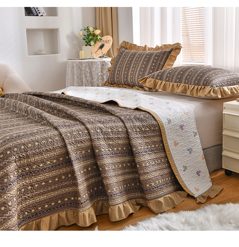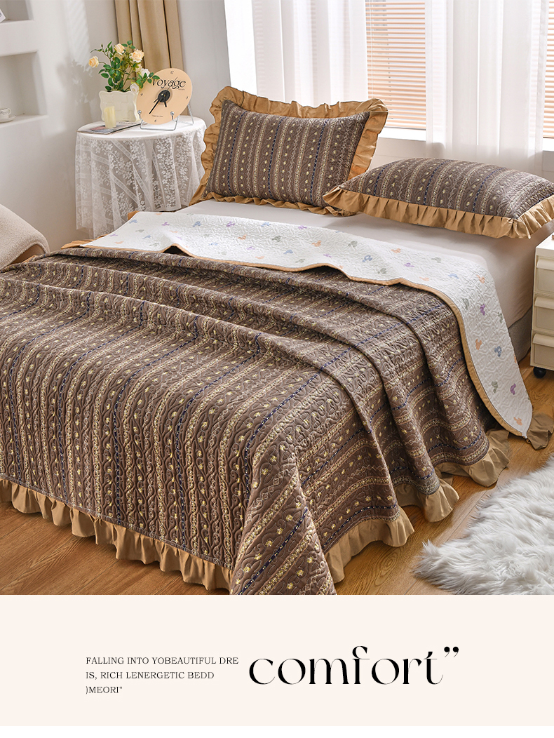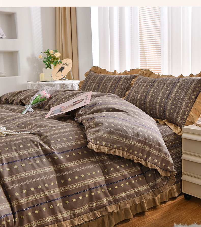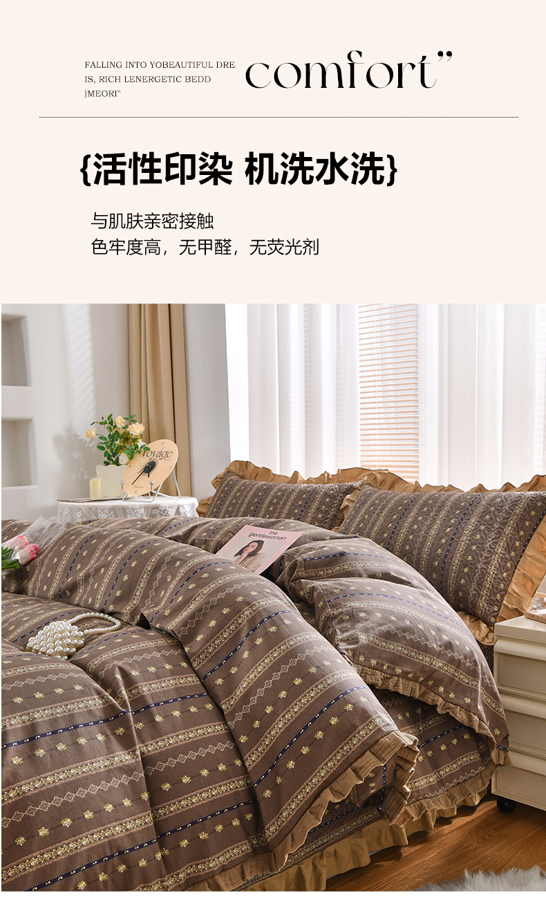 当前位置: 91家纺网 > 商品网购 > 床品套件 > 四件套 > 全棉普通四件套 > 梦精灵家纺 2025新款韩系花边全棉床盖四件套 青丝花带