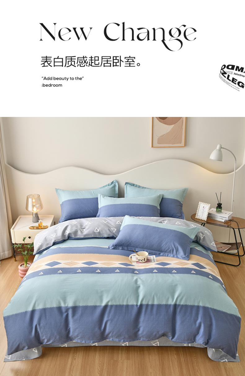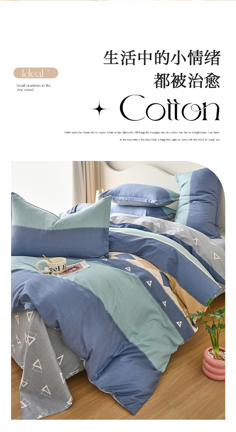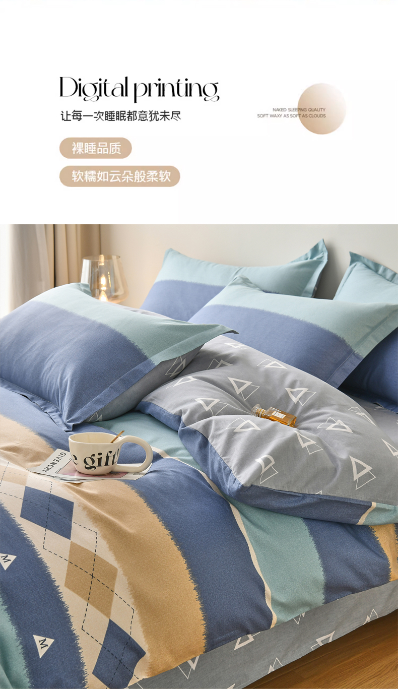 • 91家纺网 家纺一手货源 找家纺 珂博家纺 2024新款轻柔感全棉印花单品四件套系列-单床单单床笠 青山如黛
