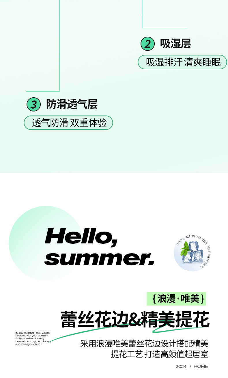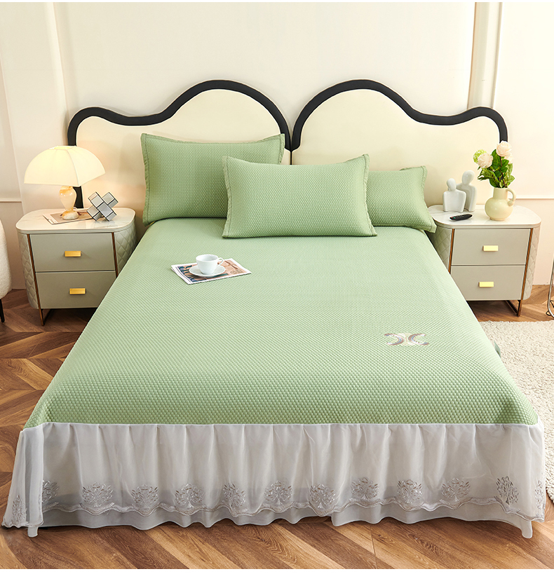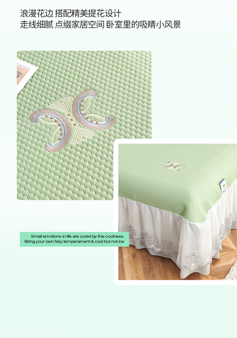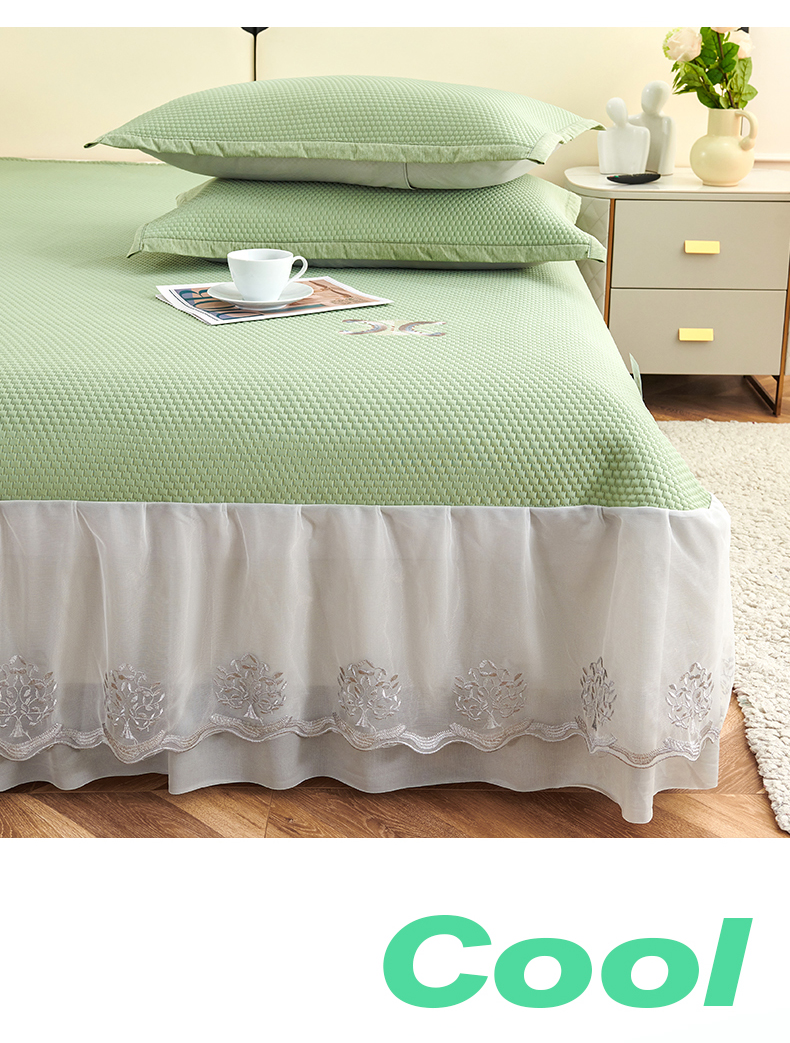 商品名称:宜派家纺 2024新款雪花冷感席三件套床单式床裙款 凤尾-绿