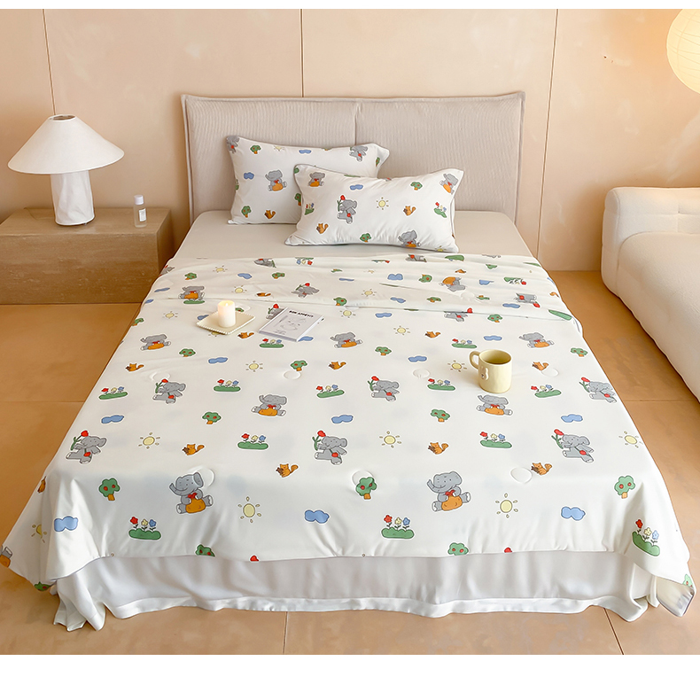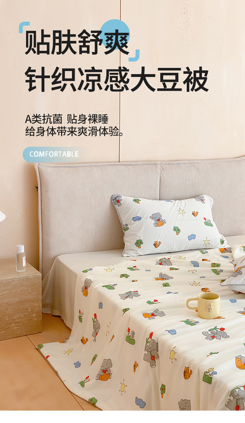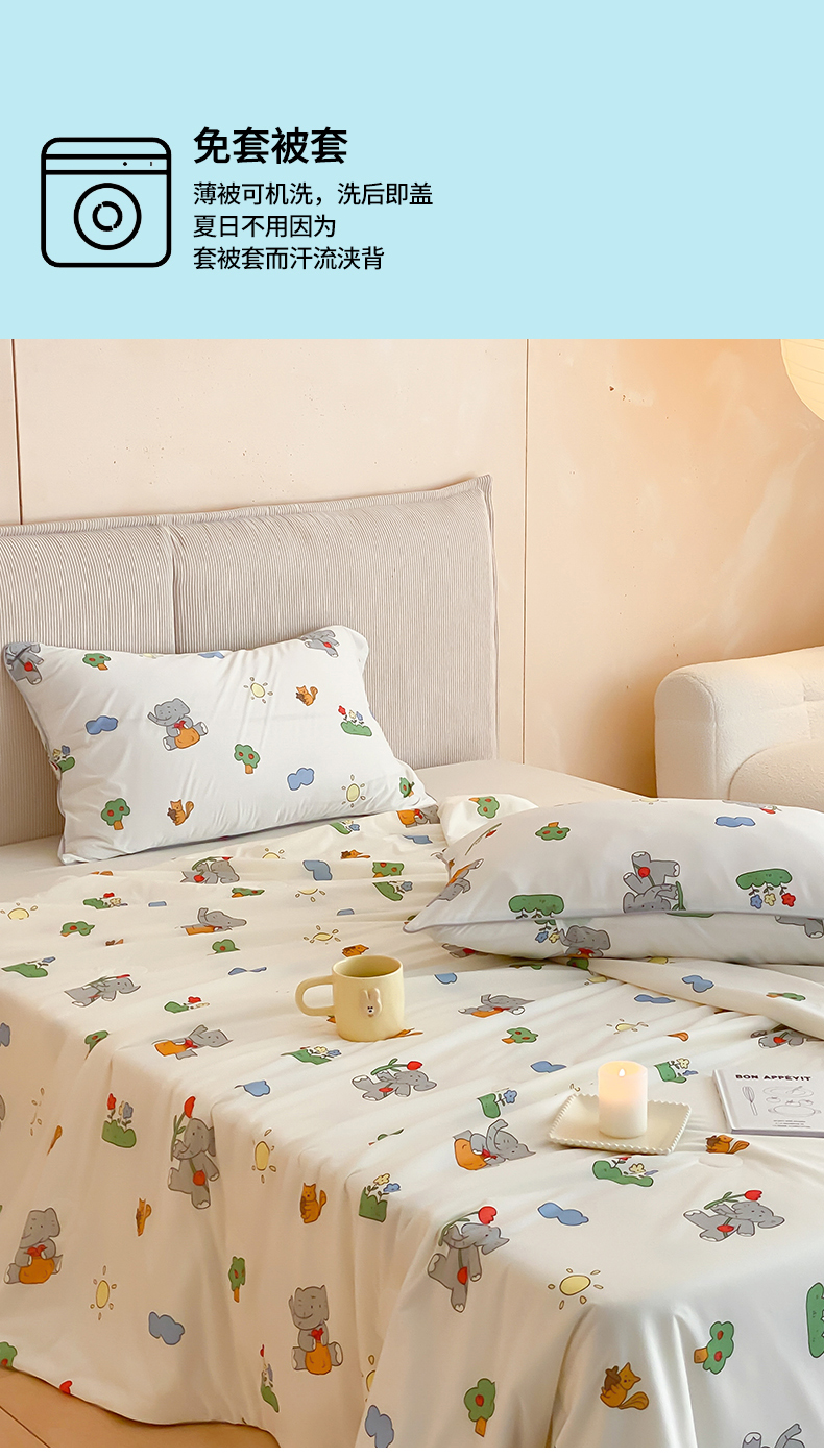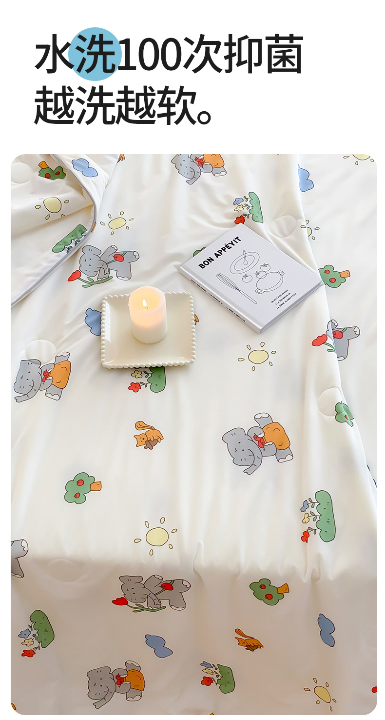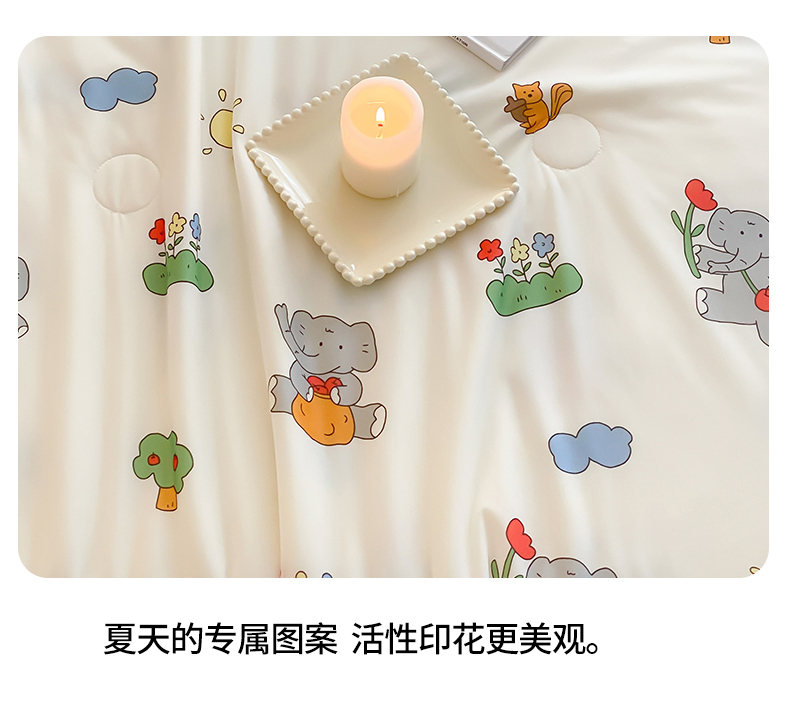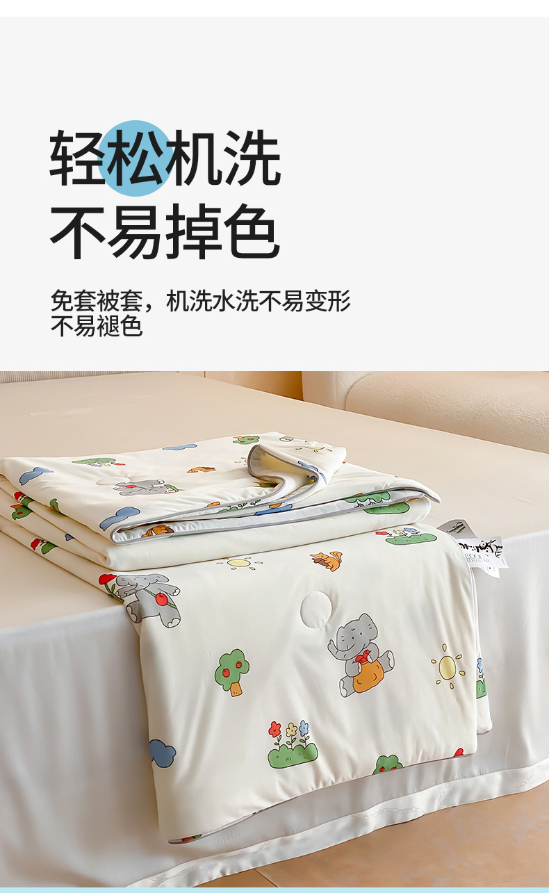 商品名称:头等舱 2025新款针织棉凉感氨纶A类印华大豆抗菌夏被 欢乐小象