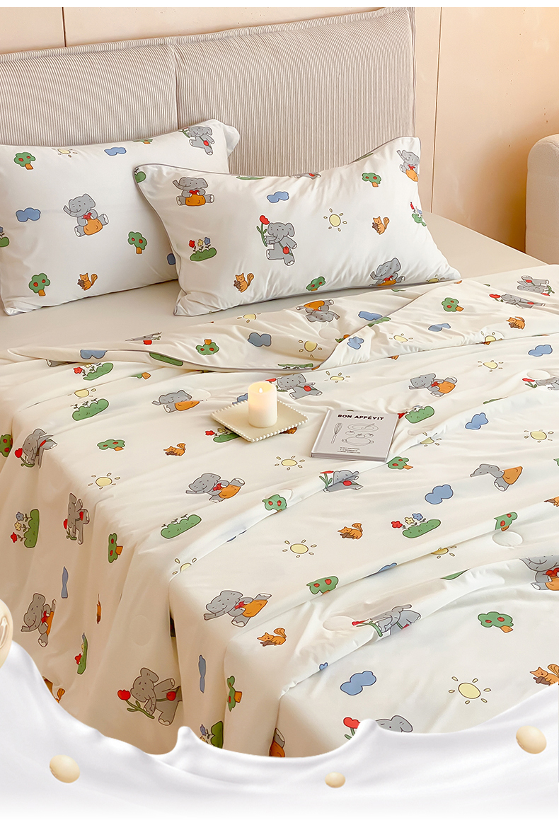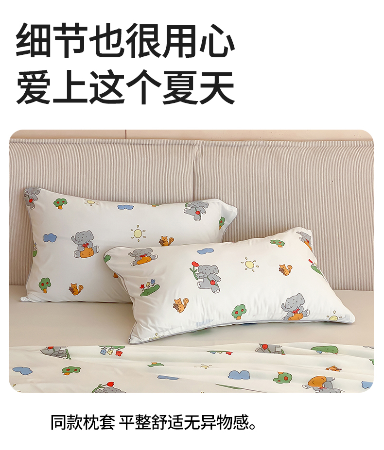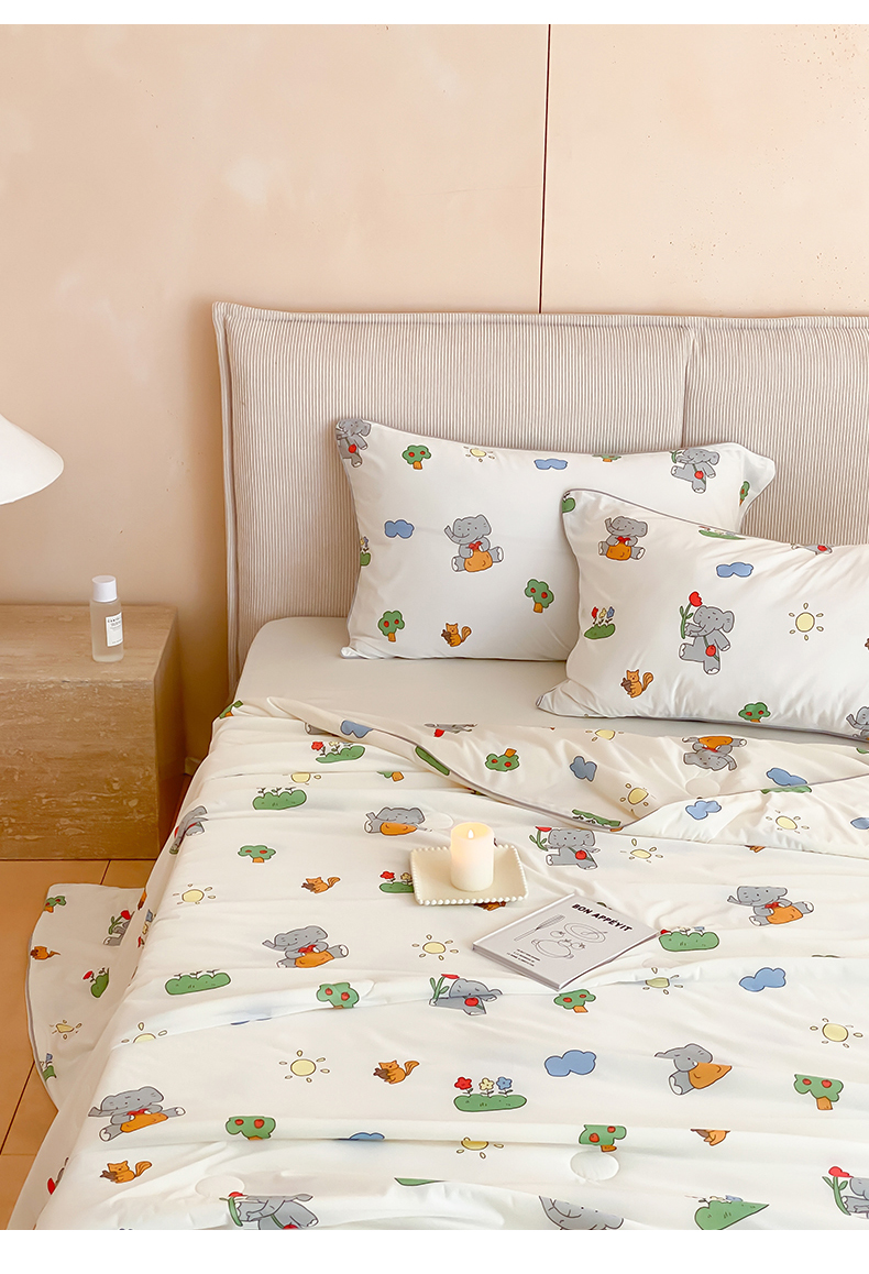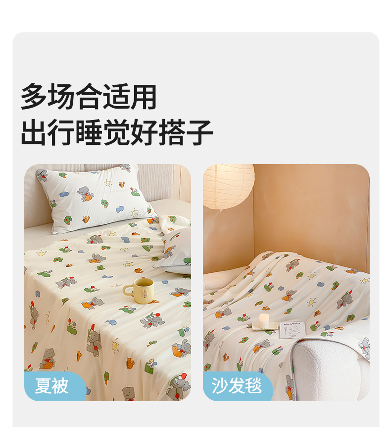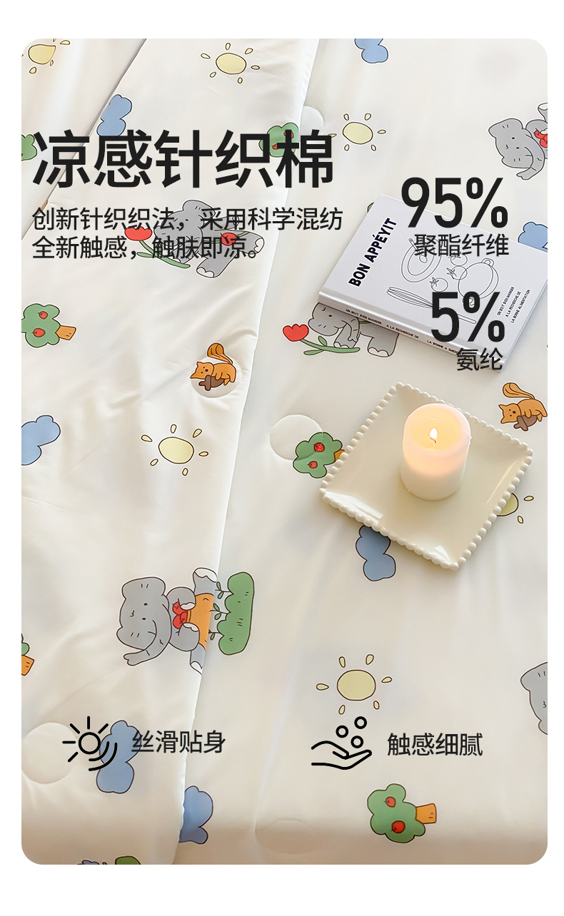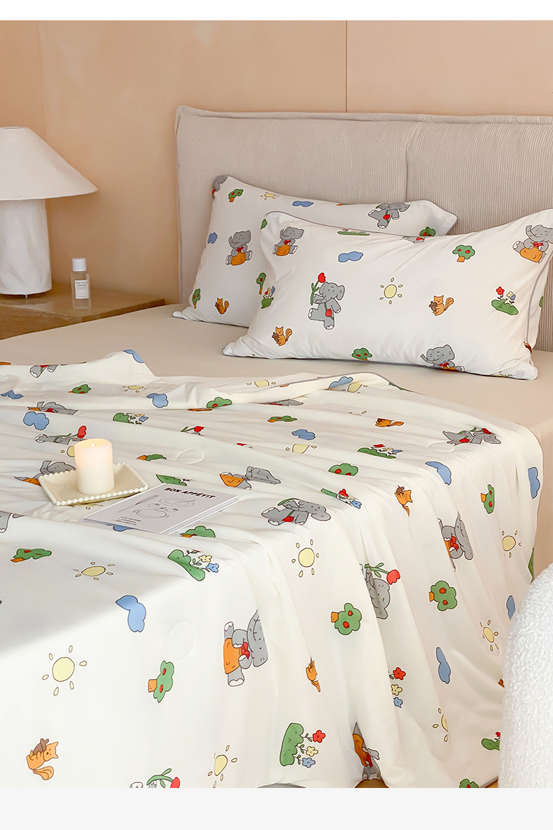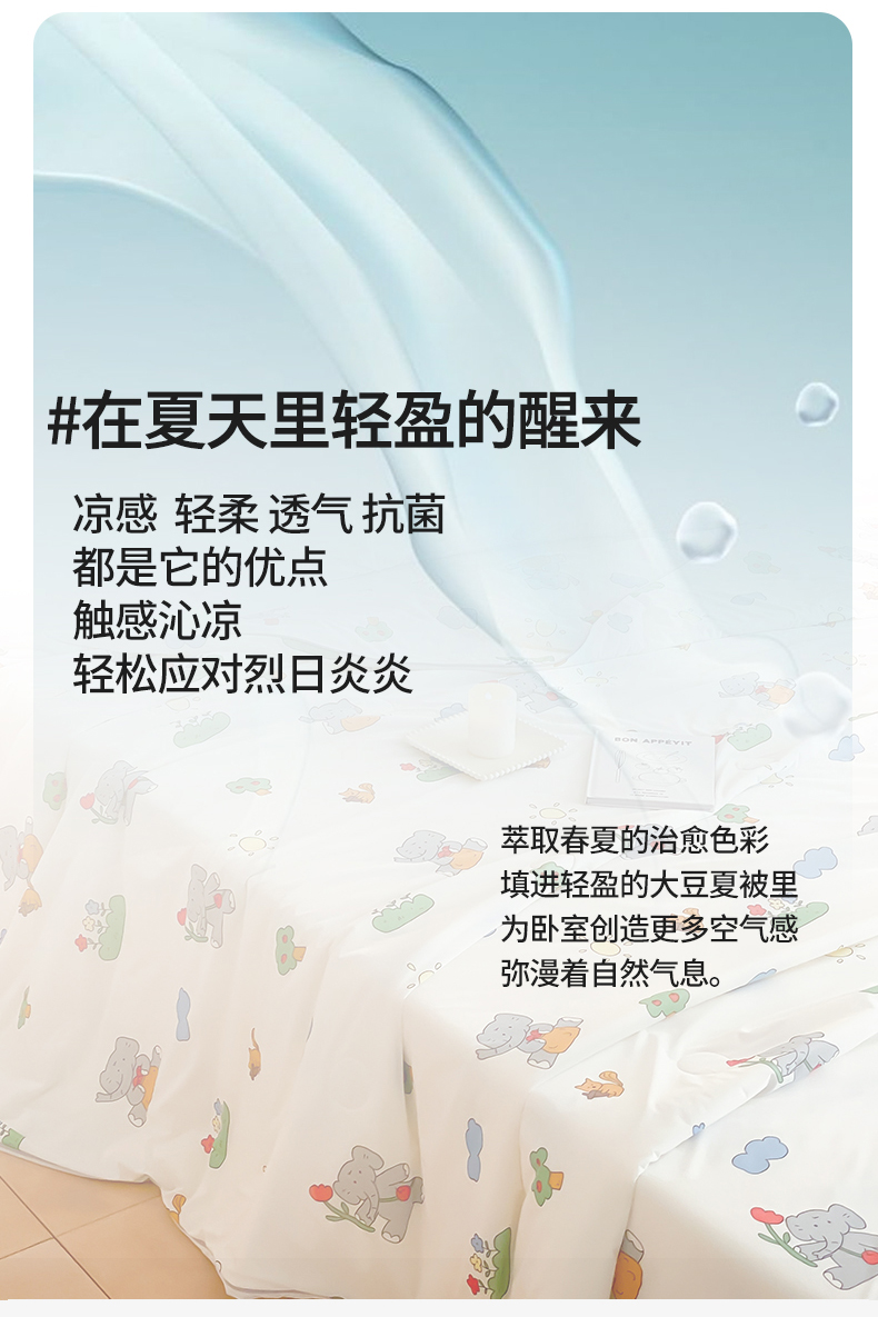商品名称:头等舱 2025新款针织棉凉感氨纶A类印华大豆抗菌夏被 欢乐小象
