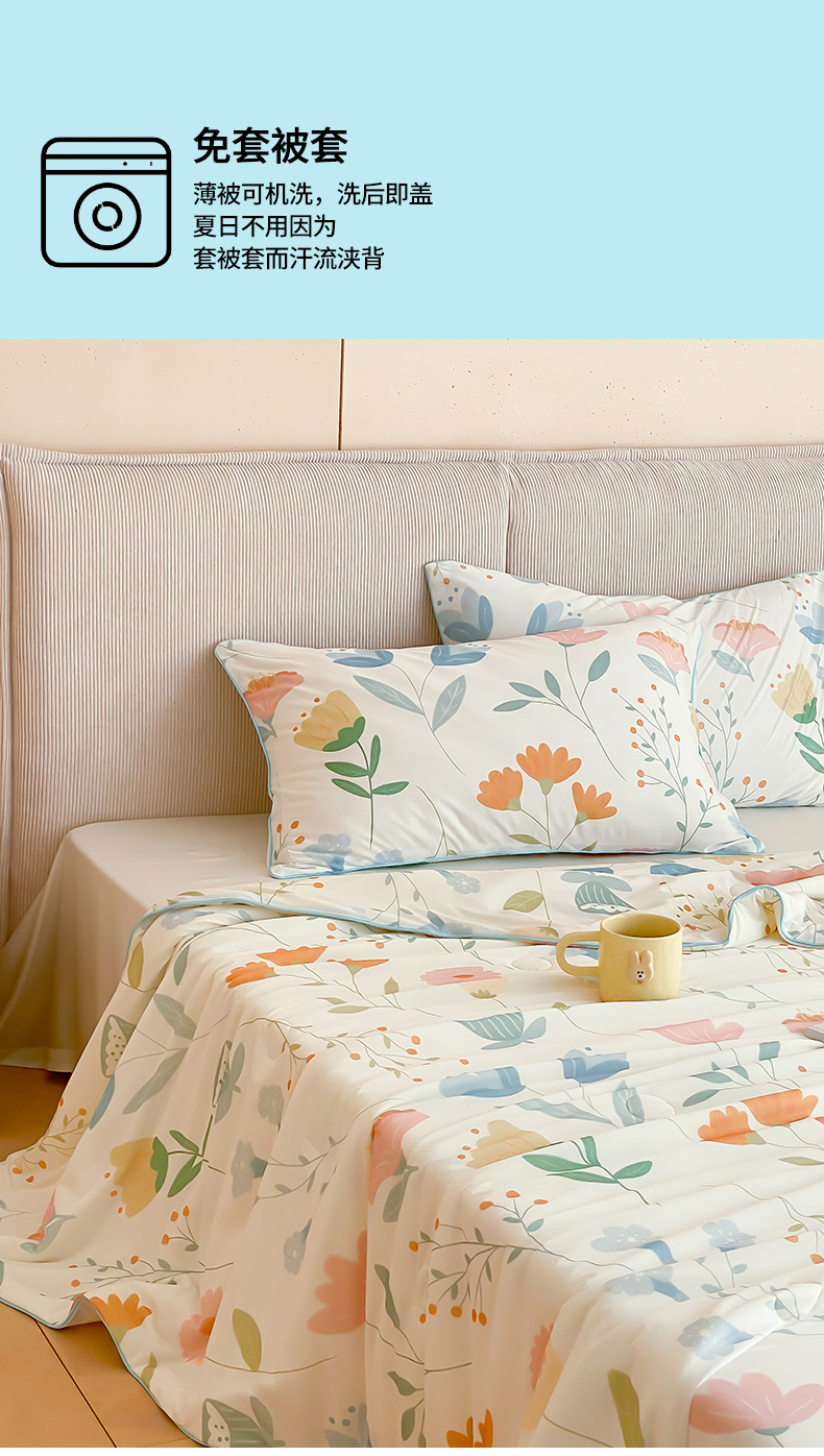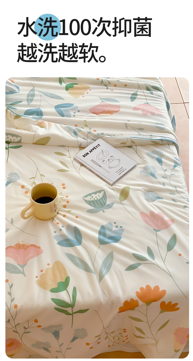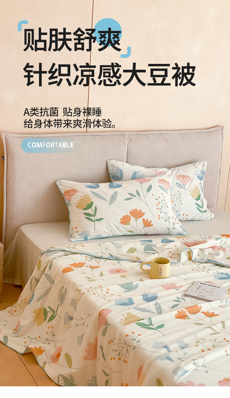商品名称:头等舱 2025新款针织棉凉感氨纶A类印华大豆抗菌夏被 繁华似锦