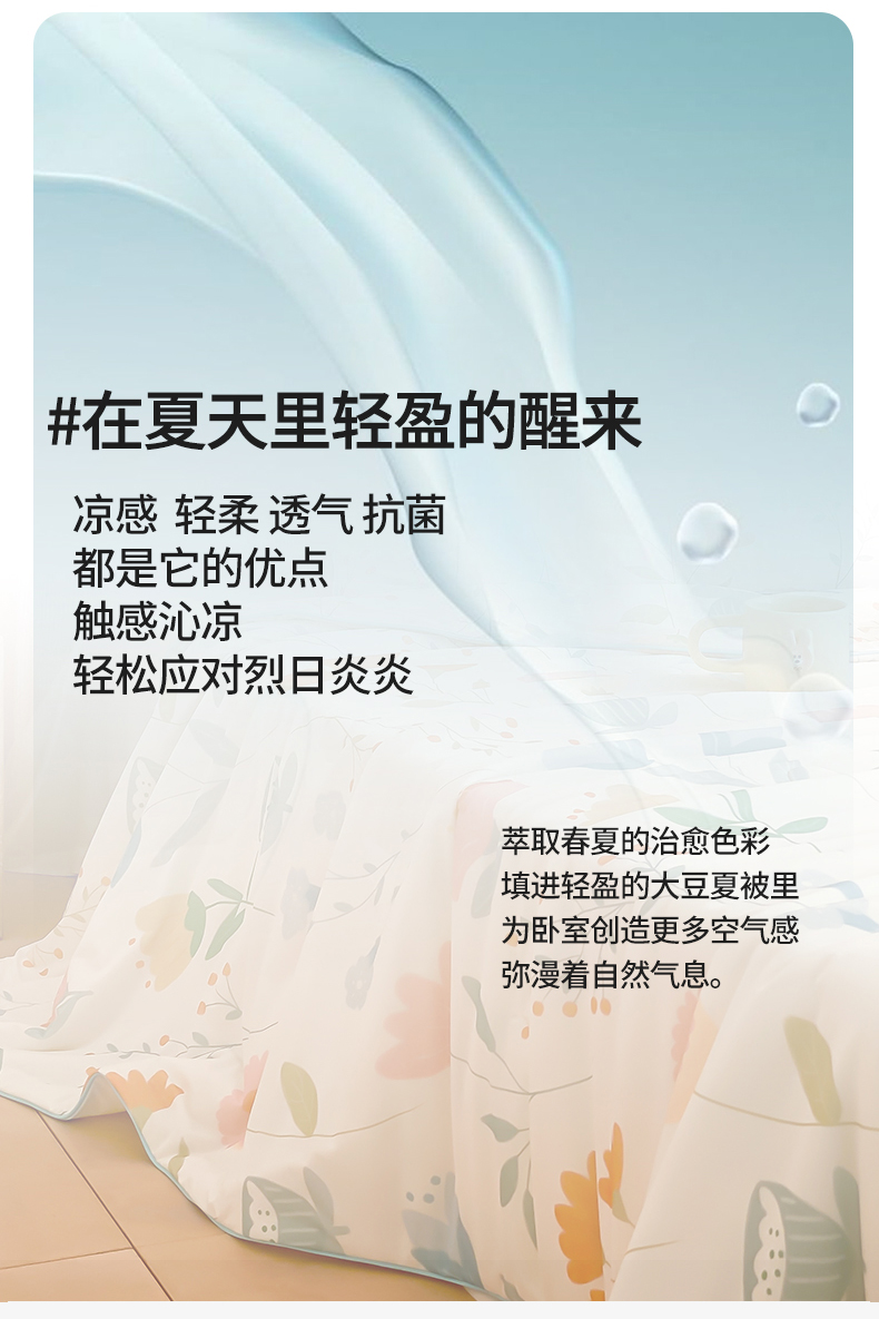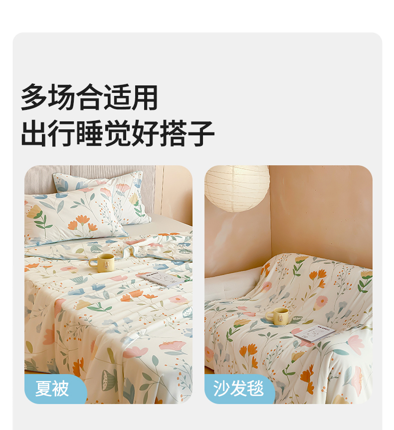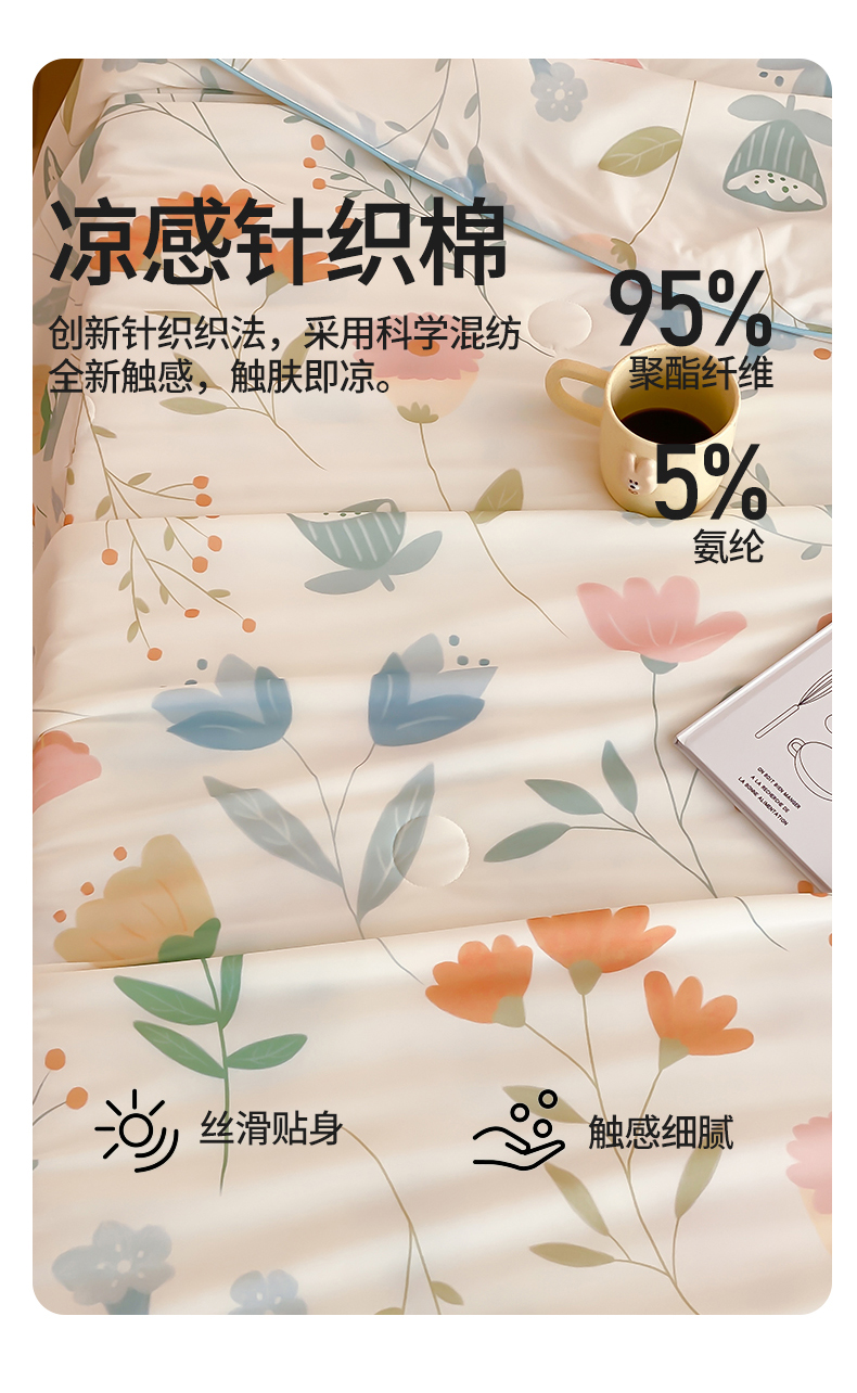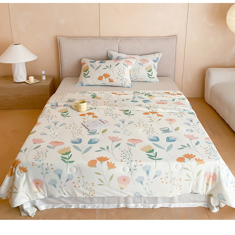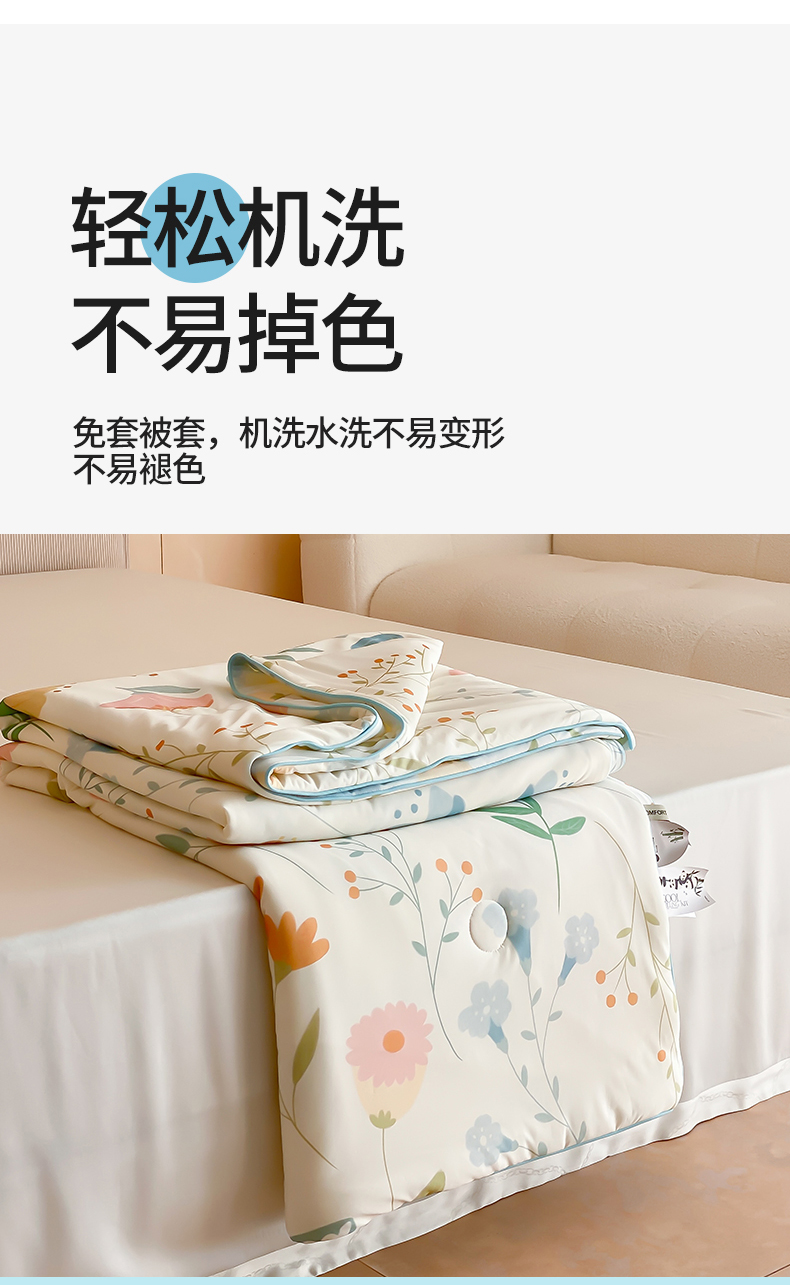 商品名称:头等舱 2025新款针织棉凉感氨纶A类印华大豆抗菌夏被 繁华似锦
