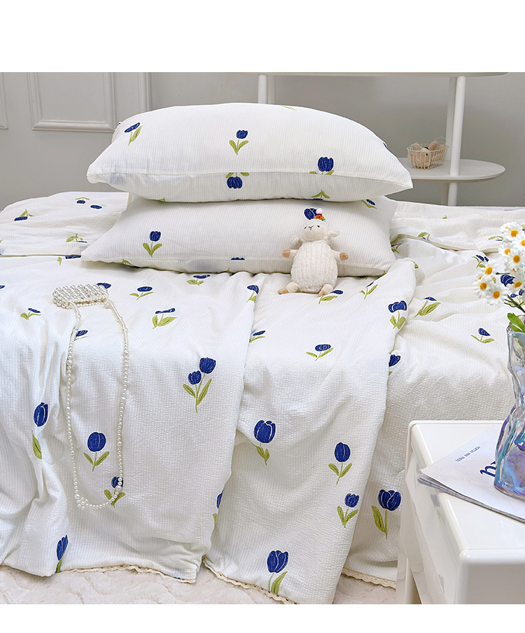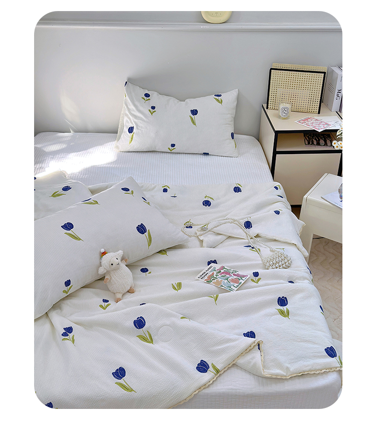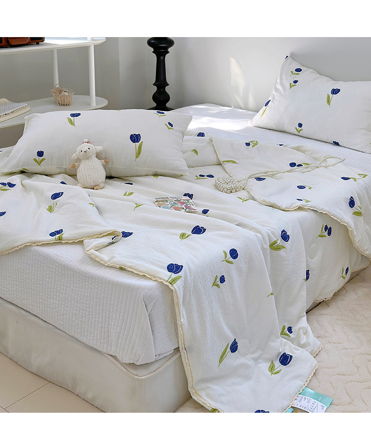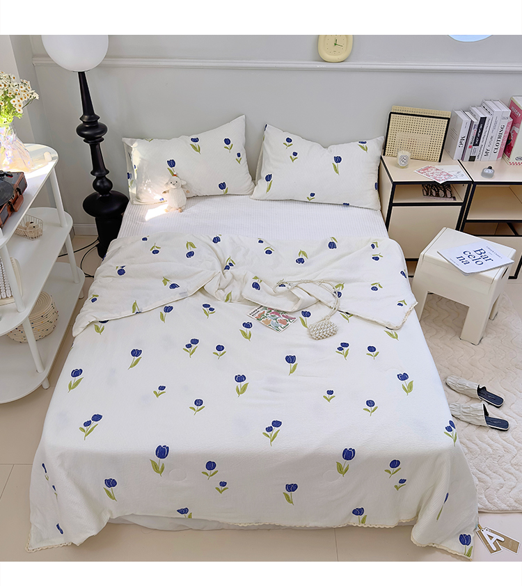 塔塔 云朵皱皱棉小花边夏被 紫色郁金香