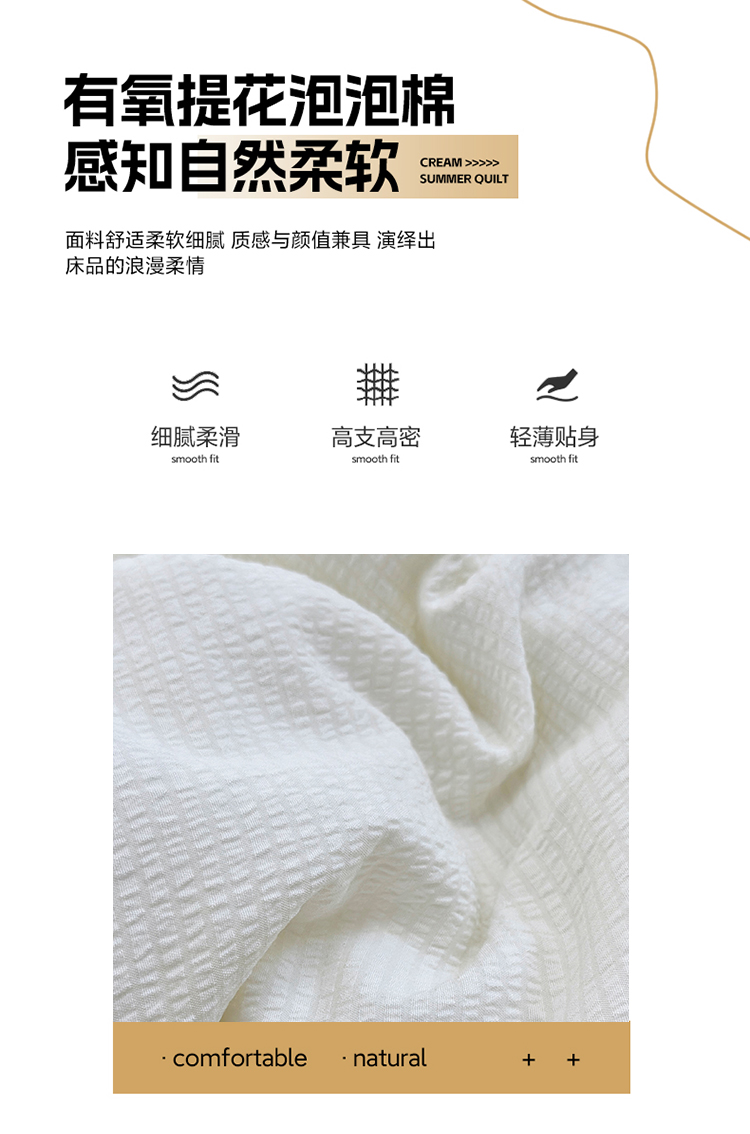 (总)TT.one 塔塔家居 2025新款云朵泡泡棉贝壳边大豆夏被,泡泡橙,泡泡白,泡泡粉,泡泡紫,泡泡绿,泡泡蓝