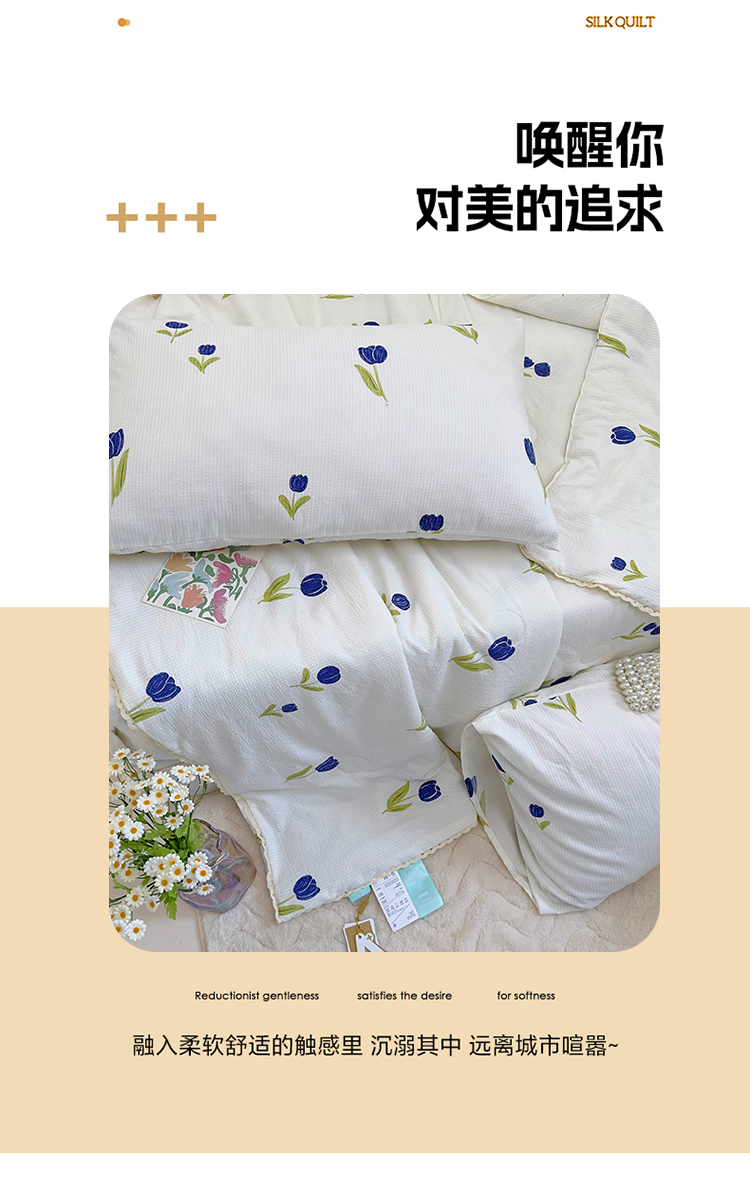 商品名称:塔塔 云朵皱皱棉小花边夏被 紫色郁金香