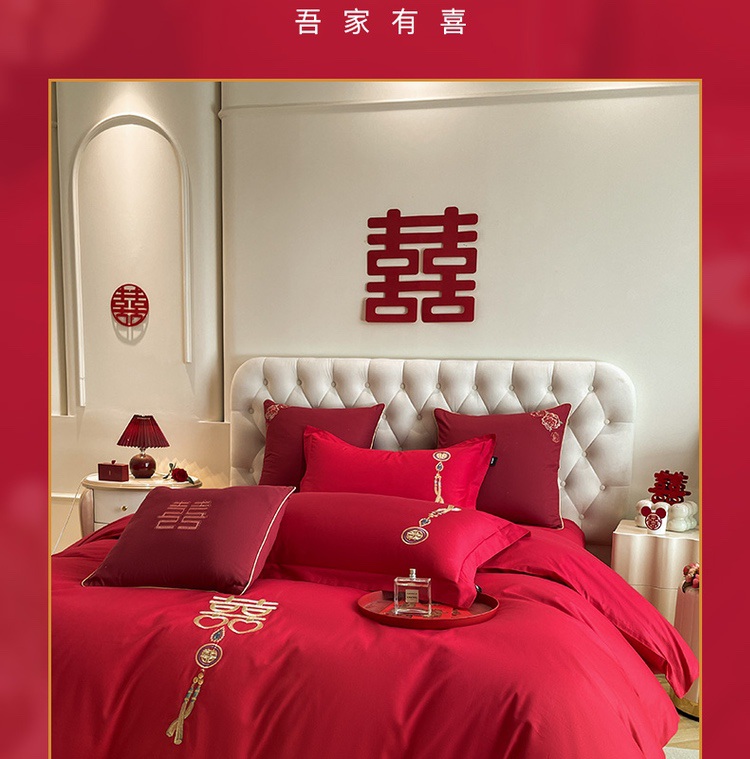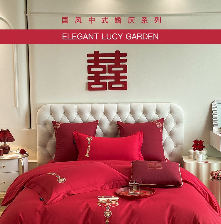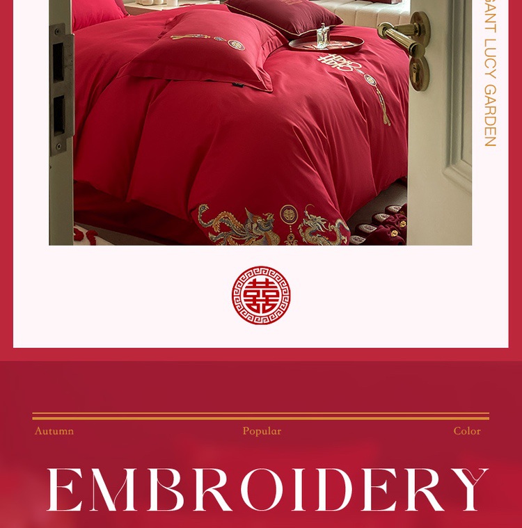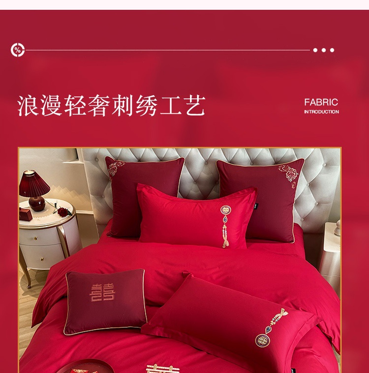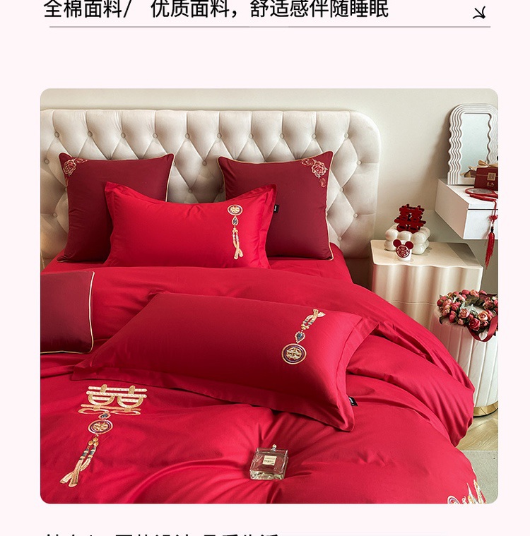 (总)佳汐蓝家纺 2025新款100支贡缎提花全棉刺绣婚庆四件套-繁花佩影,繁花佩影
