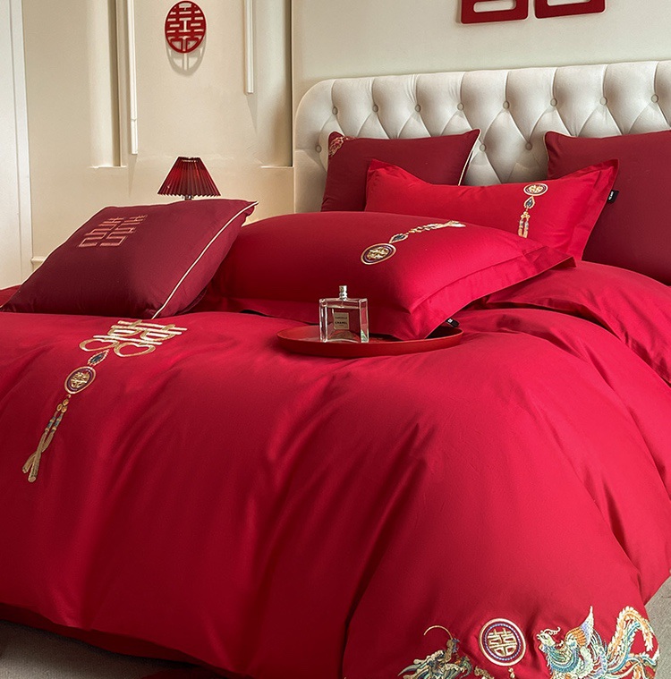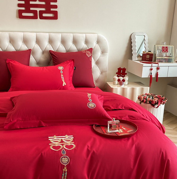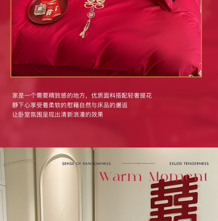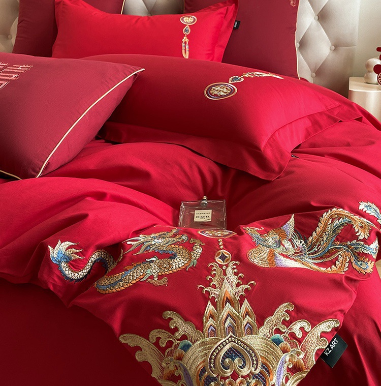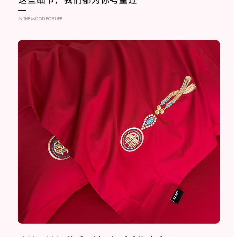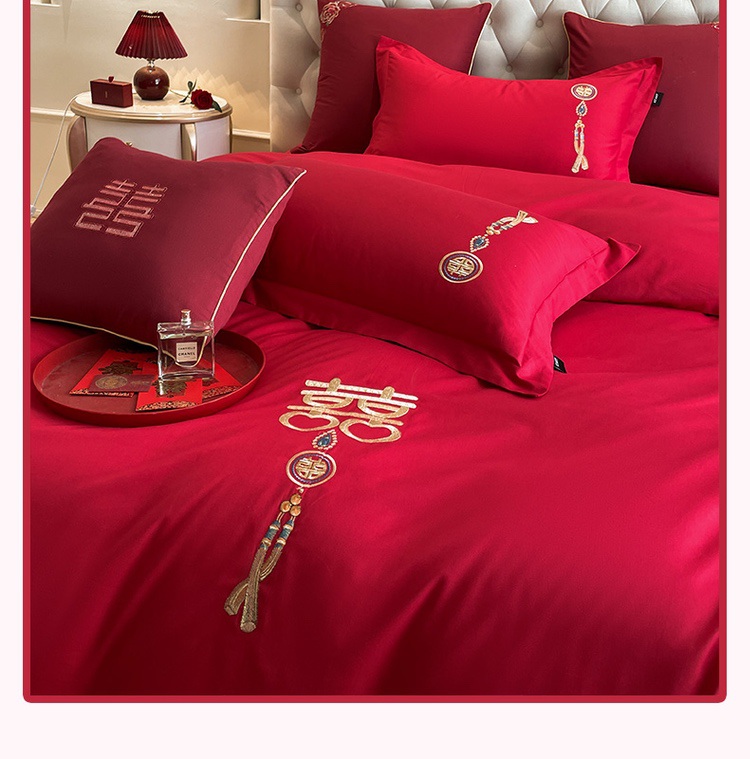 (总)佳汐蓝家纺 2025新款100支贡缎提花全棉刺绣婚庆四件套-繁花佩影,繁花佩影