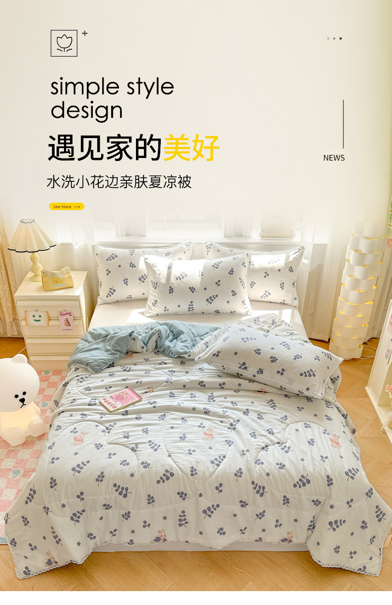 商品名称:慕尚家纺2025新款双层纱水洗夏被子被芯 兔稚