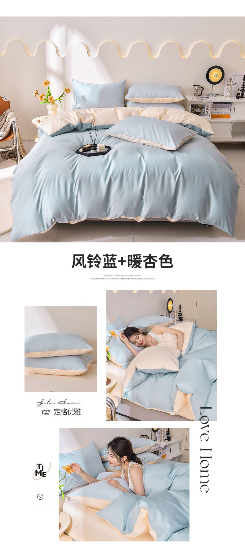 当前位置: 91家纺网 > 商品网购 > 床品套件 > 四件套 > 真丝四件套 > 简爱家纺 2025新款水洗真丝四件套 风铃蓝+暖杏色