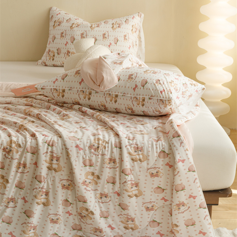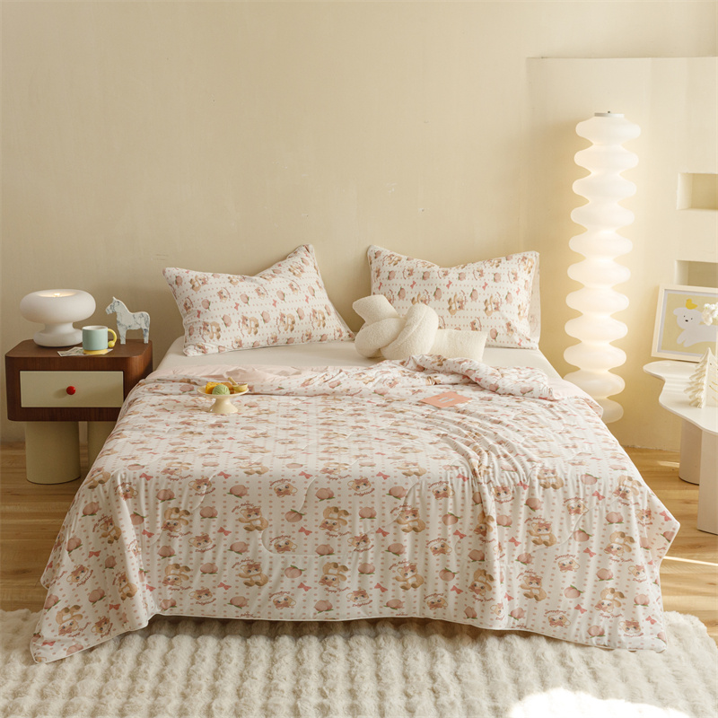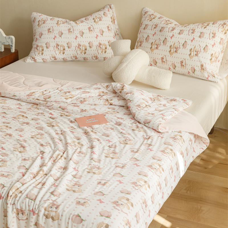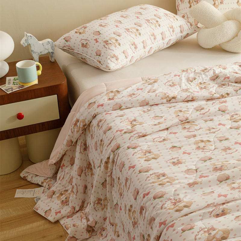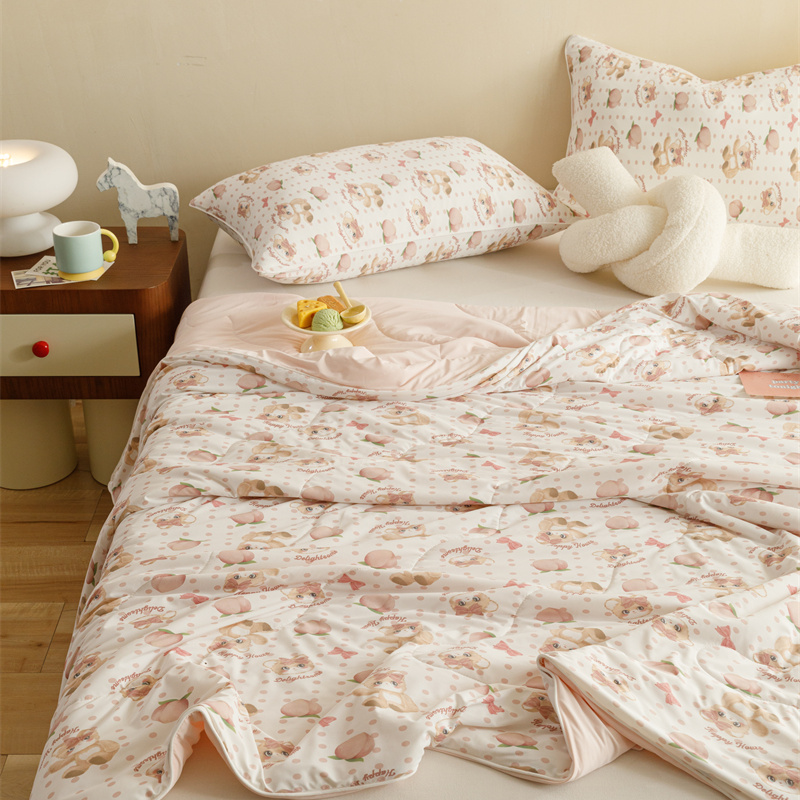 有货 2024新款中北欧风锦氨凉感被 粉点猫