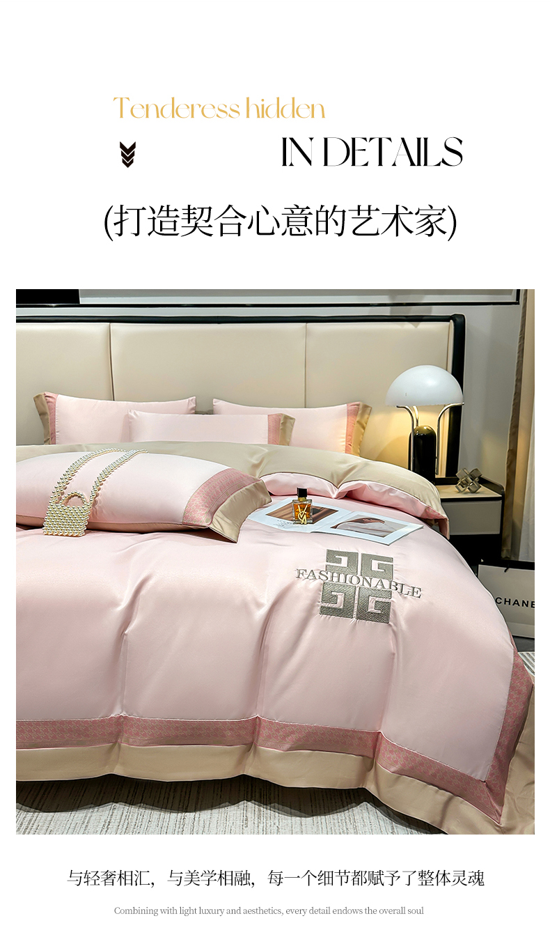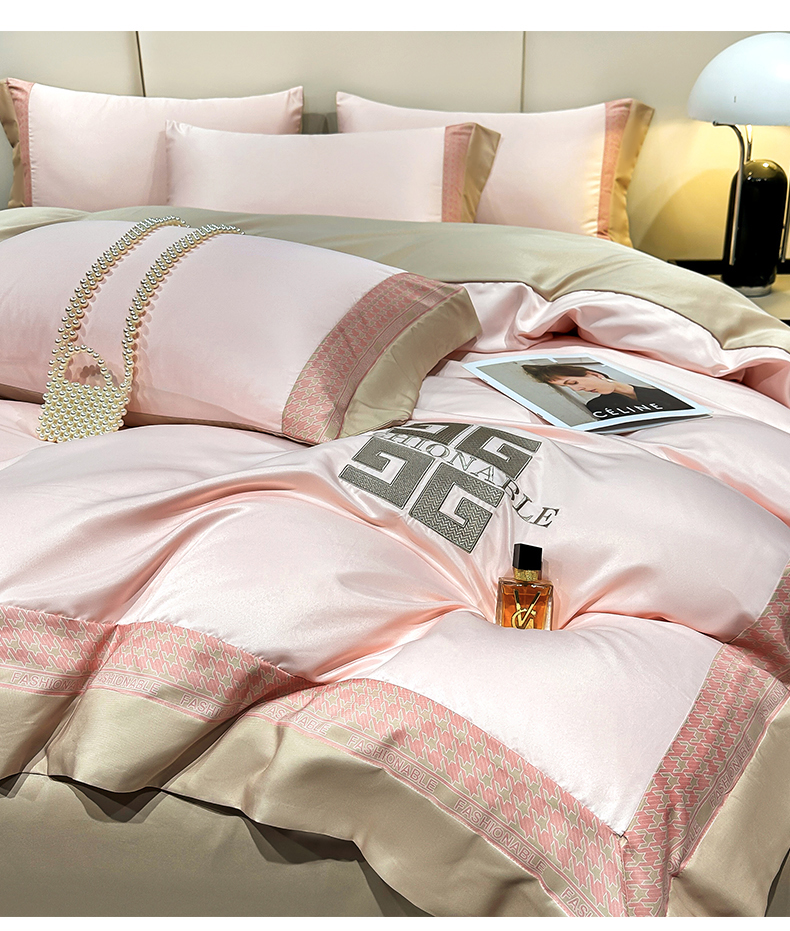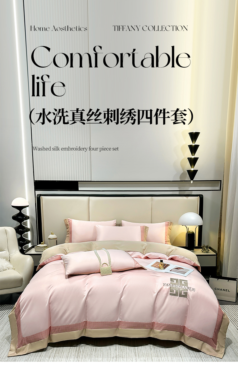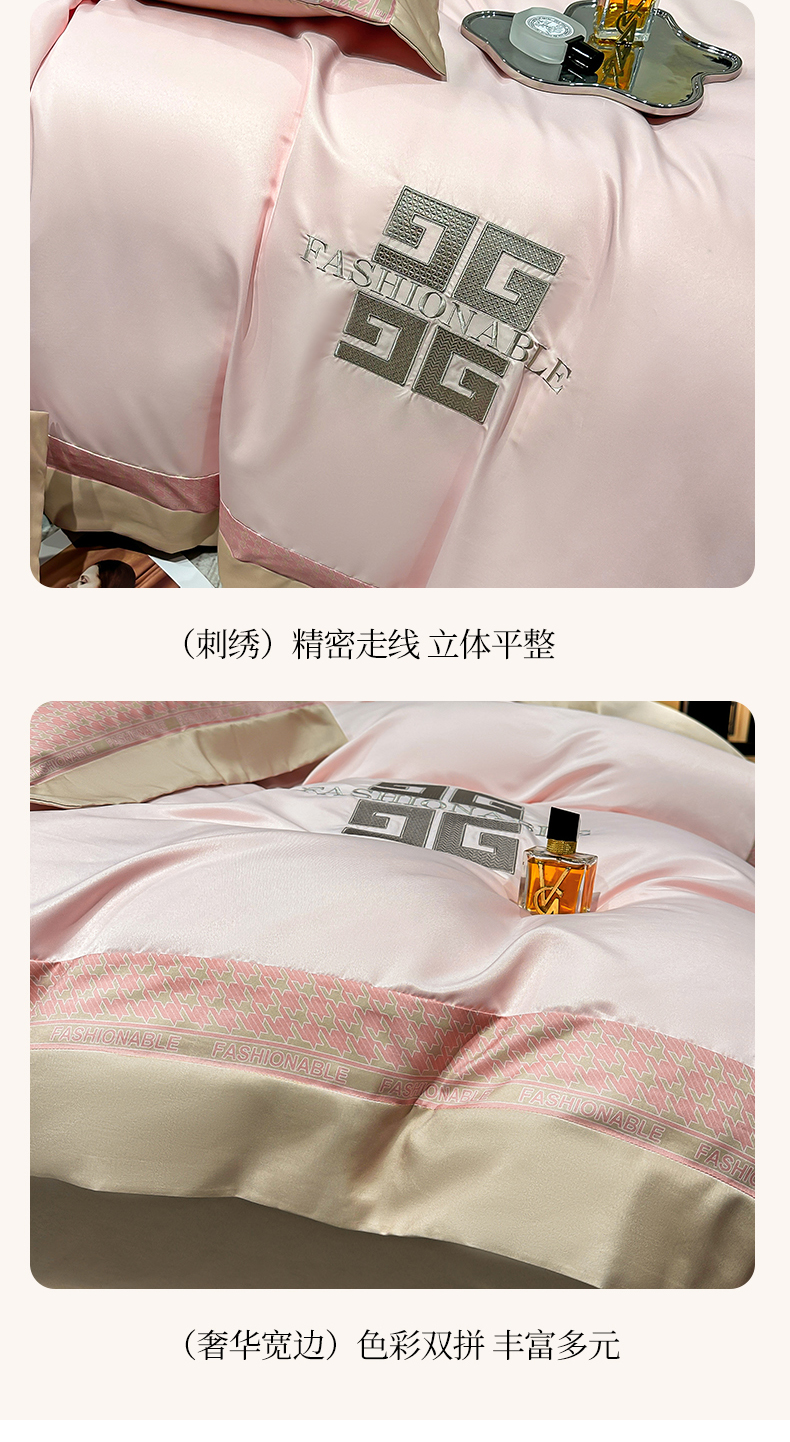 富盛家纺 2024新款水洗真丝刺绣四件套-威灵顿 威灵顿—粉色