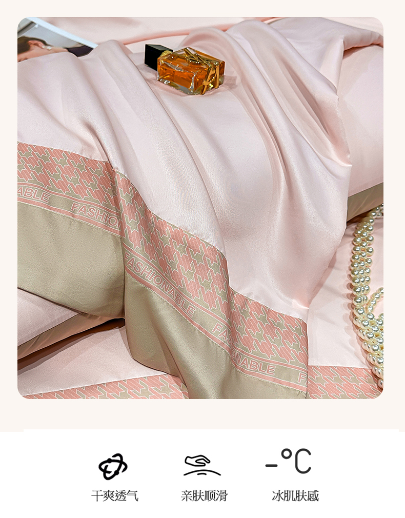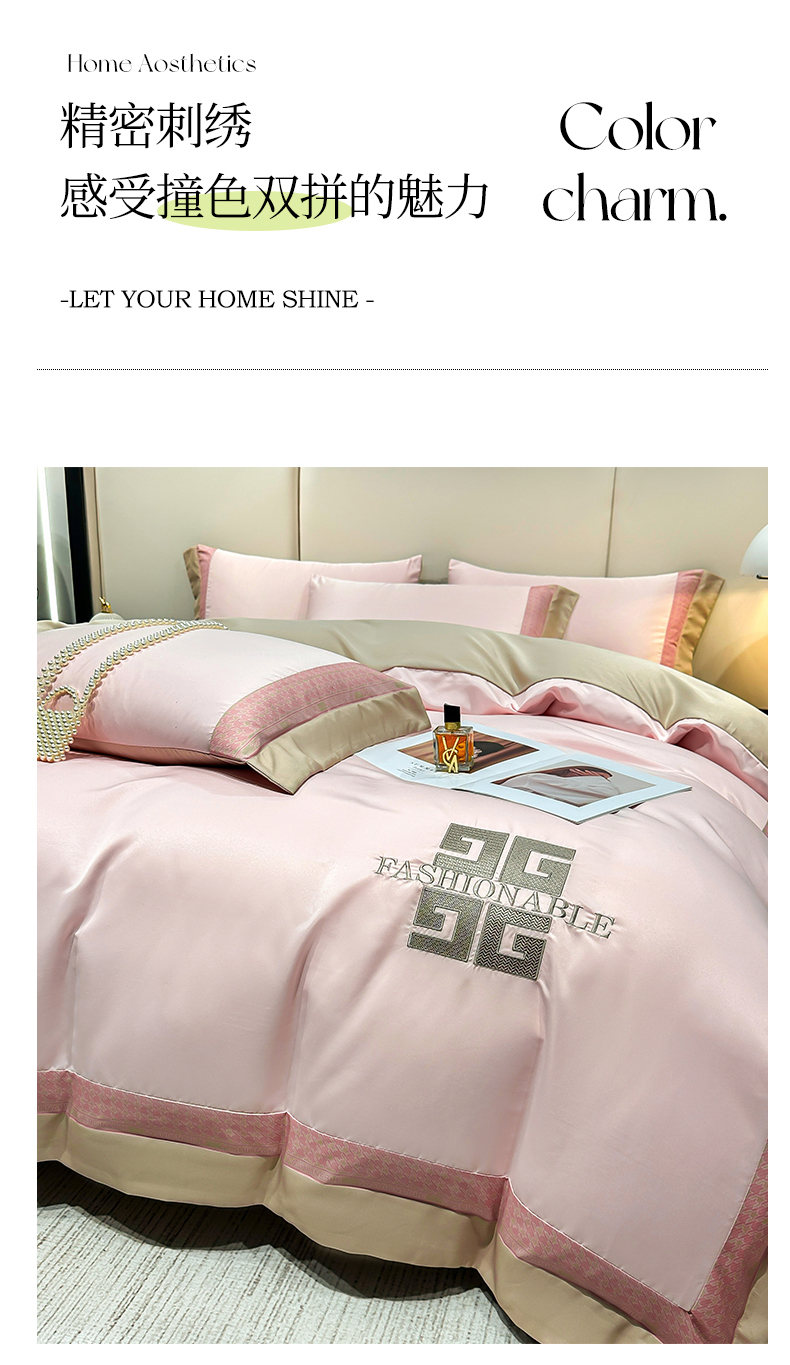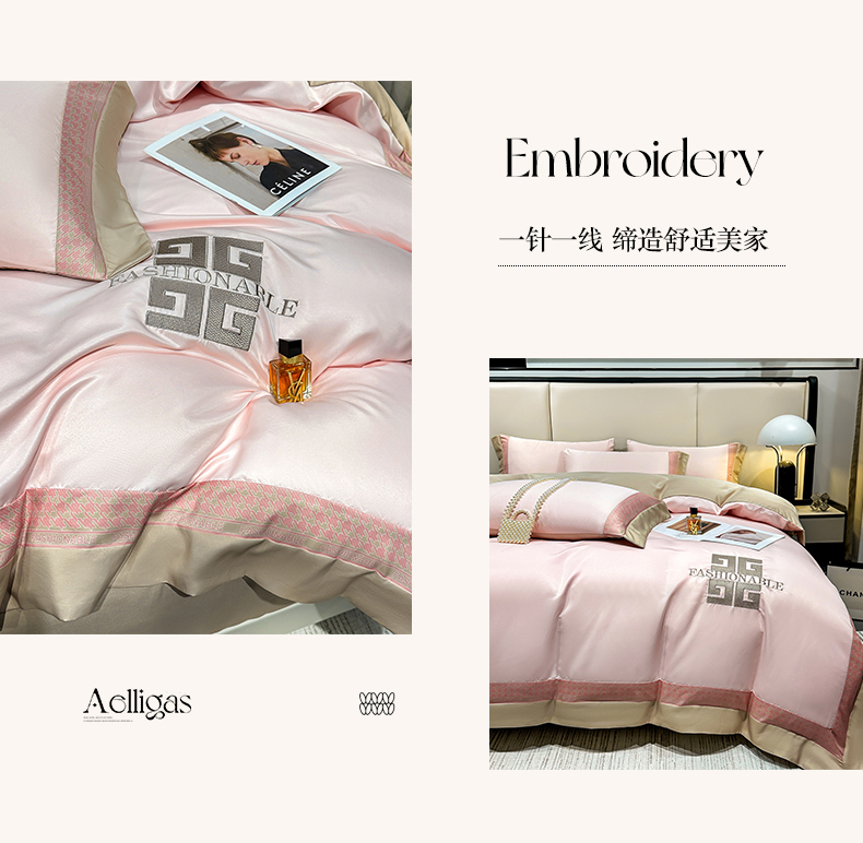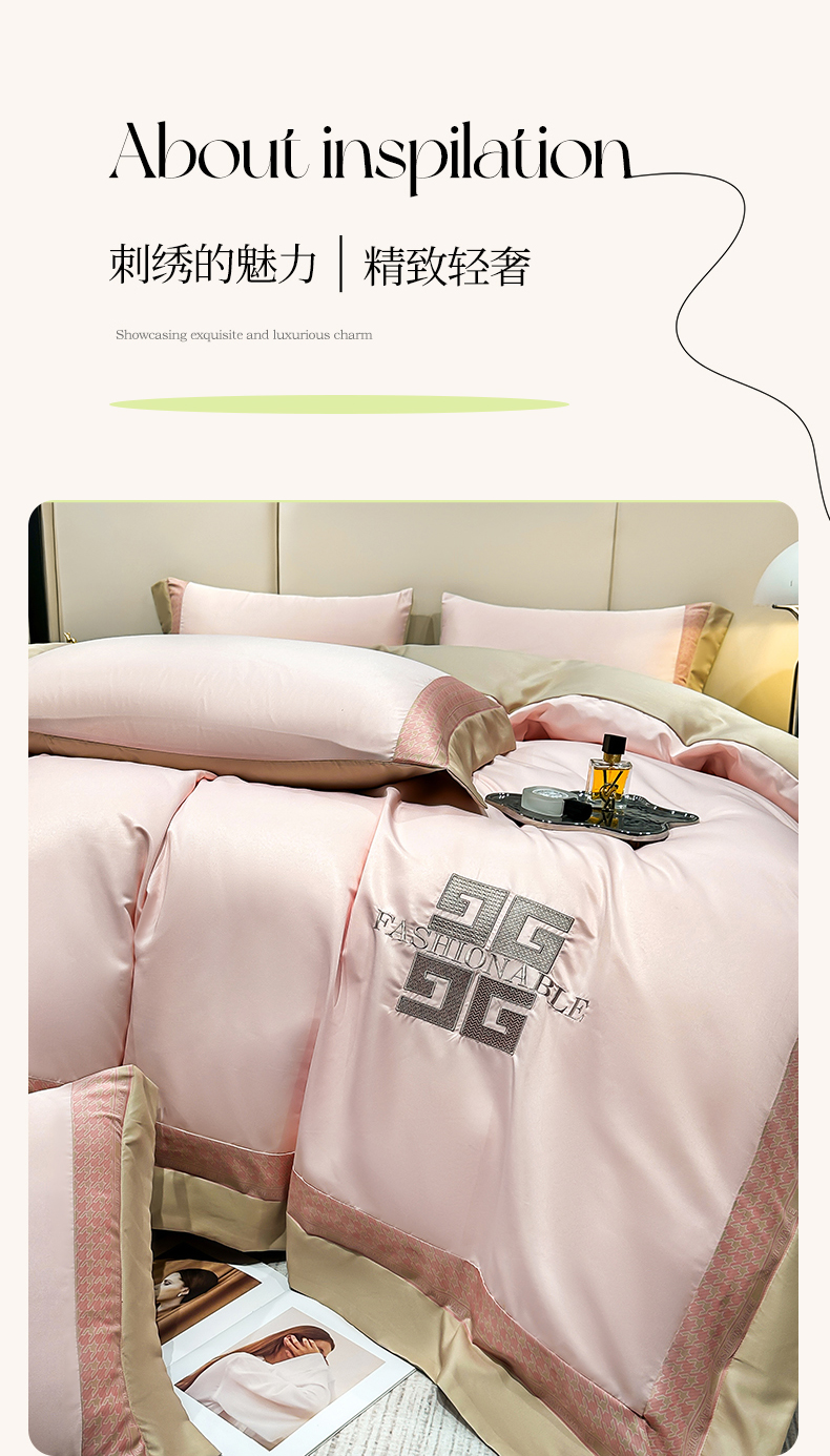 富盛家纺 2024新款水洗真丝刺绣四件套-威灵顿 威灵顿—粉色