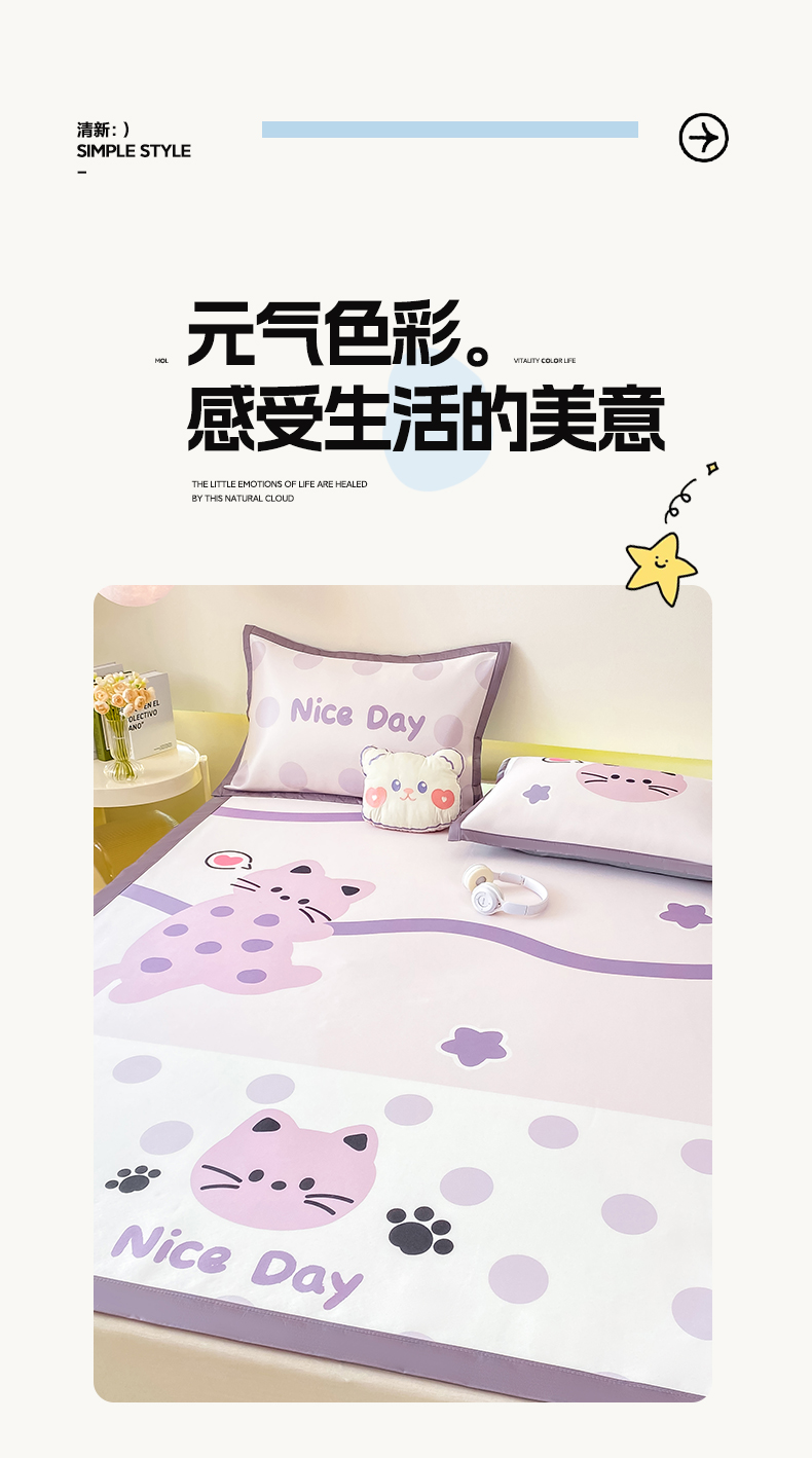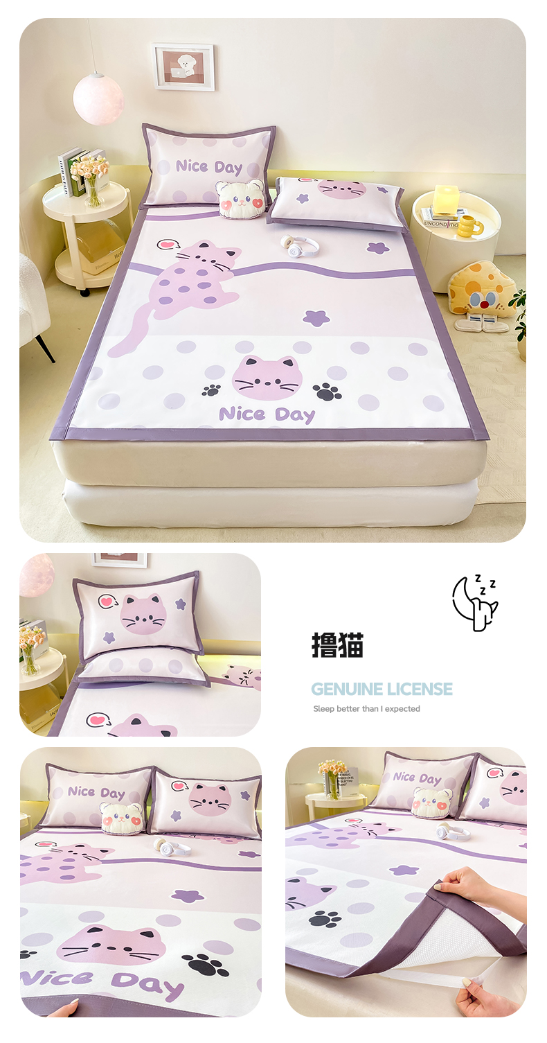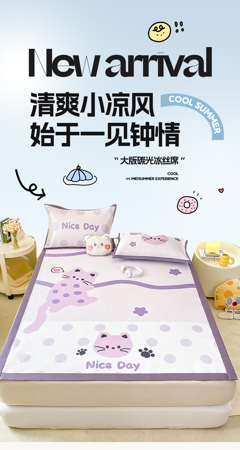 当前位置: 91家纺网 > 商品网购 > 床上用品 > 凉席 > 冰丝席 > 帅露家纺 2025新款1600D大版数码印花碳光冰丝席防滑软凉席三件套 撸猫