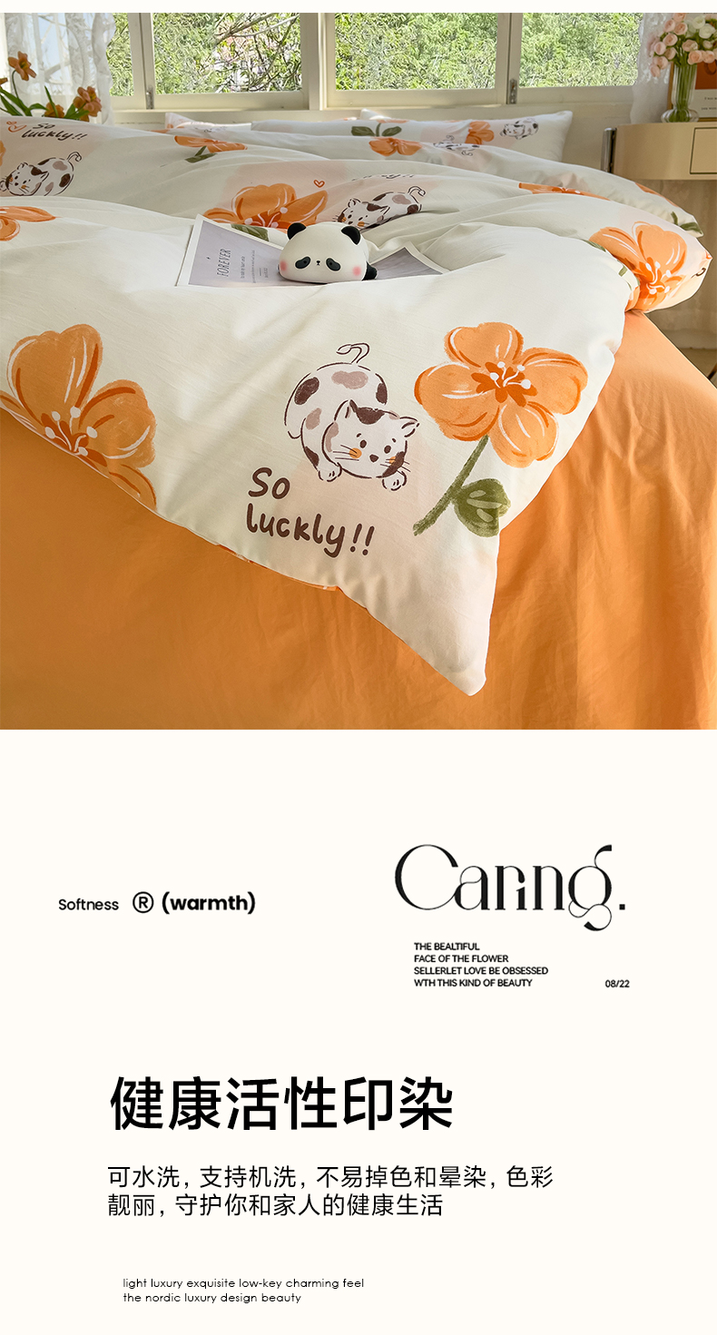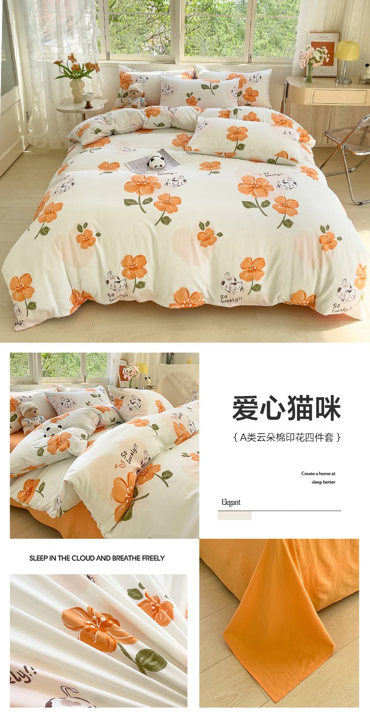 当前位置: 91家纺网 > 商品网购 > 床品套件 > 四件套 > 其它四件套 > 乐萱家纺 2024新款水洗云朵棉小清新四件套超柔印花单被套 爱心猫咪