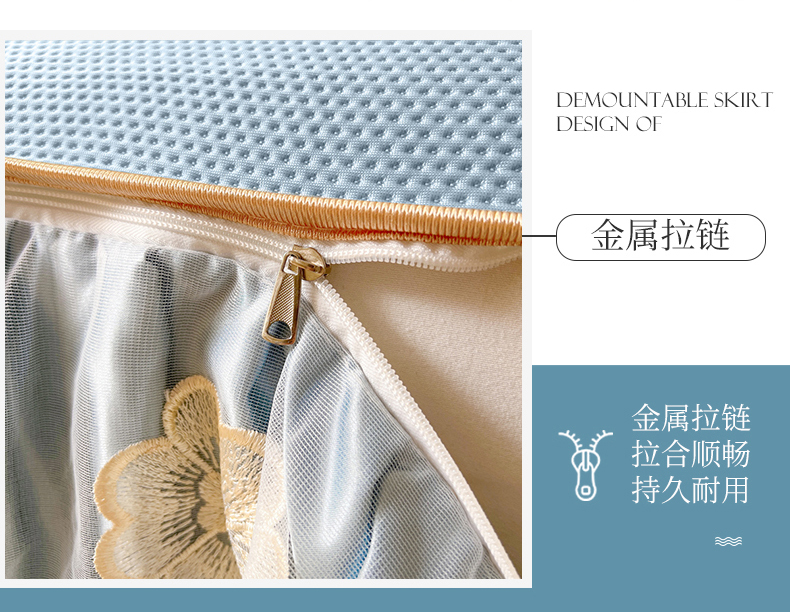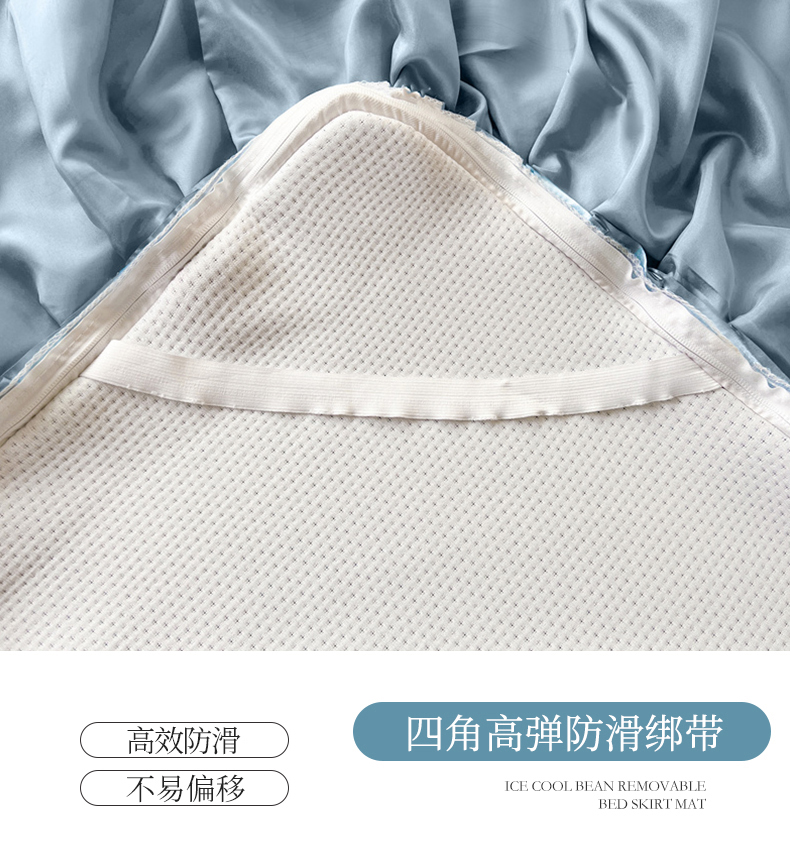 (总)虹星家纺 2024新款A类冰感凉豆豆可拆卸床裙席三件套,静谧灰,宝石蓝,冰川蓝,梦幻粉,青果绿,珍珠灰