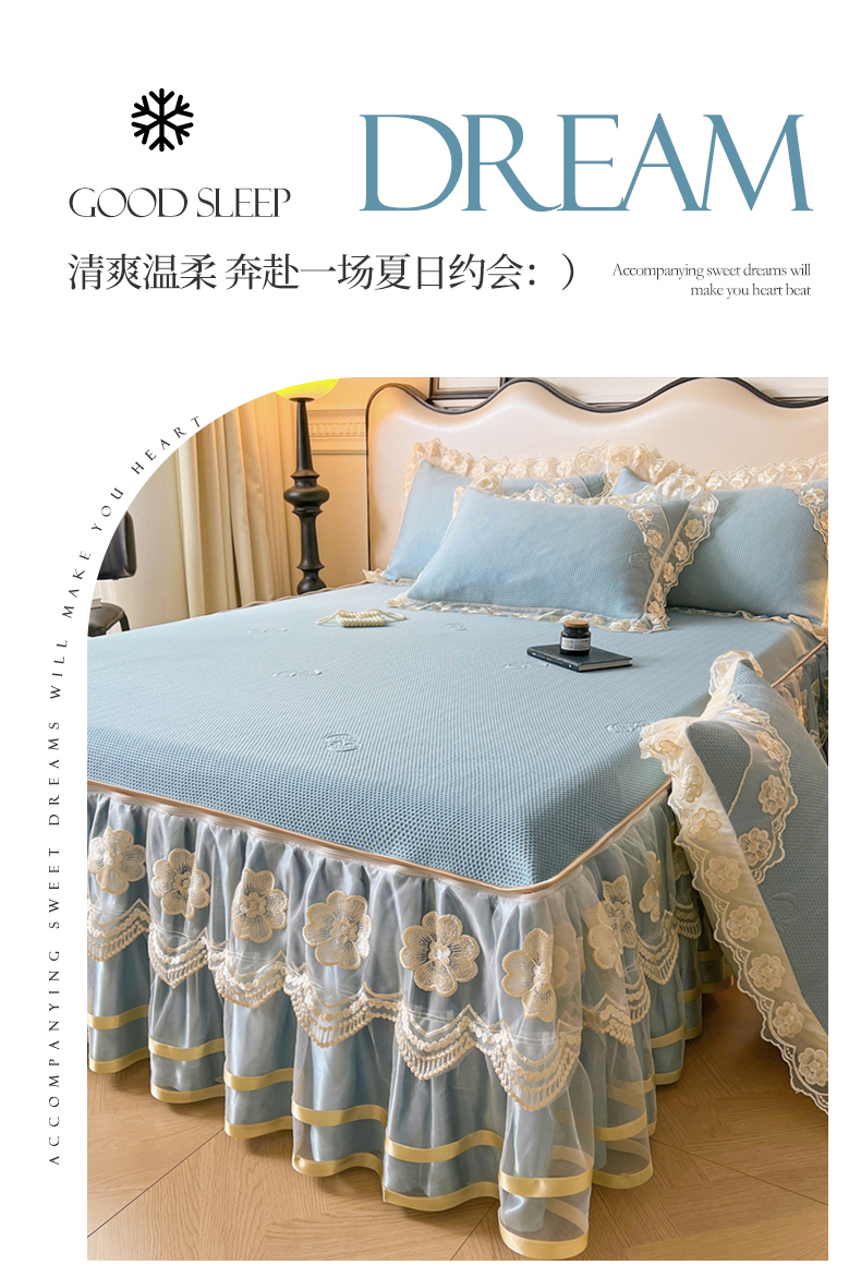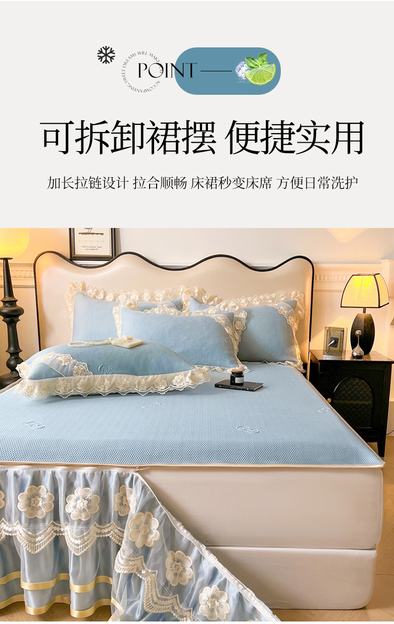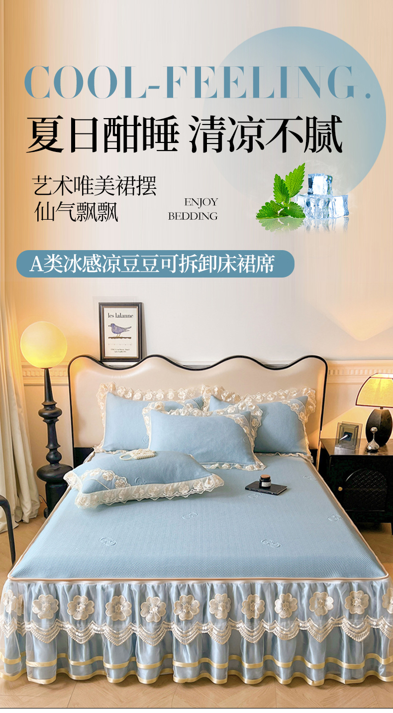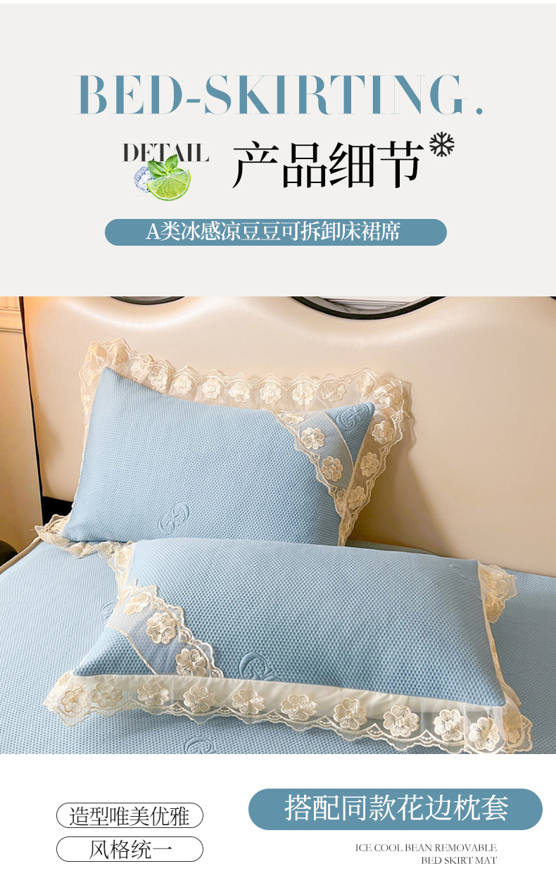 (总)虹星家纺 2025新款A类冰感凉豆豆床裙席三件套-素夏,素夏-抹茶绿,素夏-蜜桃粉,素夏-青果绿,素夏-天空蓝,素夏-月光灰