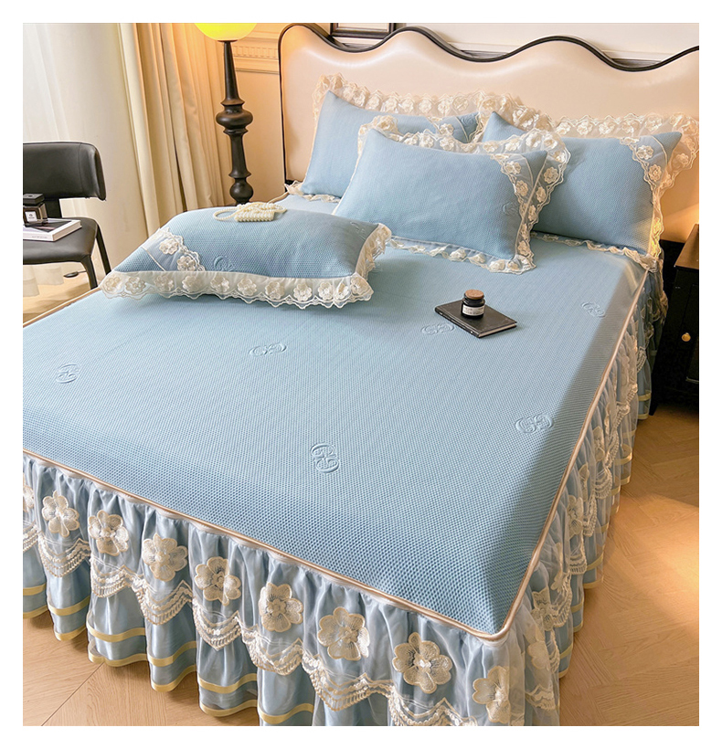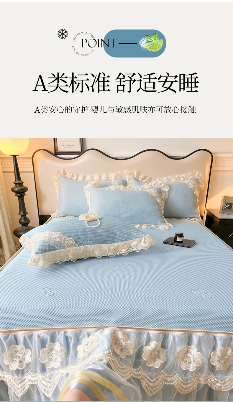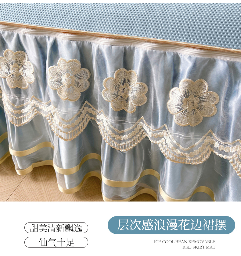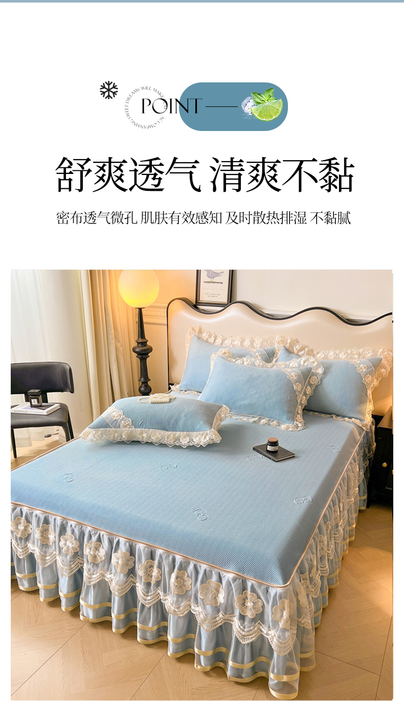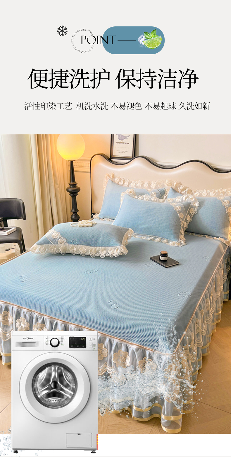 (总)虹星家纺 2025新款A类冰感凉豆豆床裙席三件套-素夏,素夏-抹茶绿,素夏-蜜桃粉,素夏-青果绿,素夏-天空蓝,素夏-月光灰