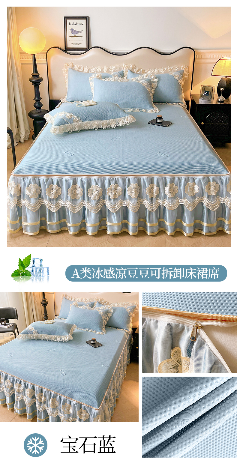 商品名称:虹星家纺 2024新款A类冰感凉豆豆可拆卸床裙席三件套 宝石蓝