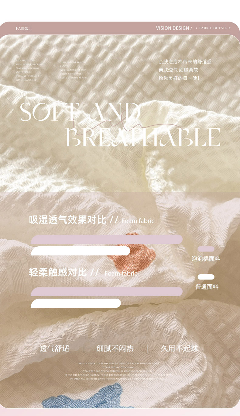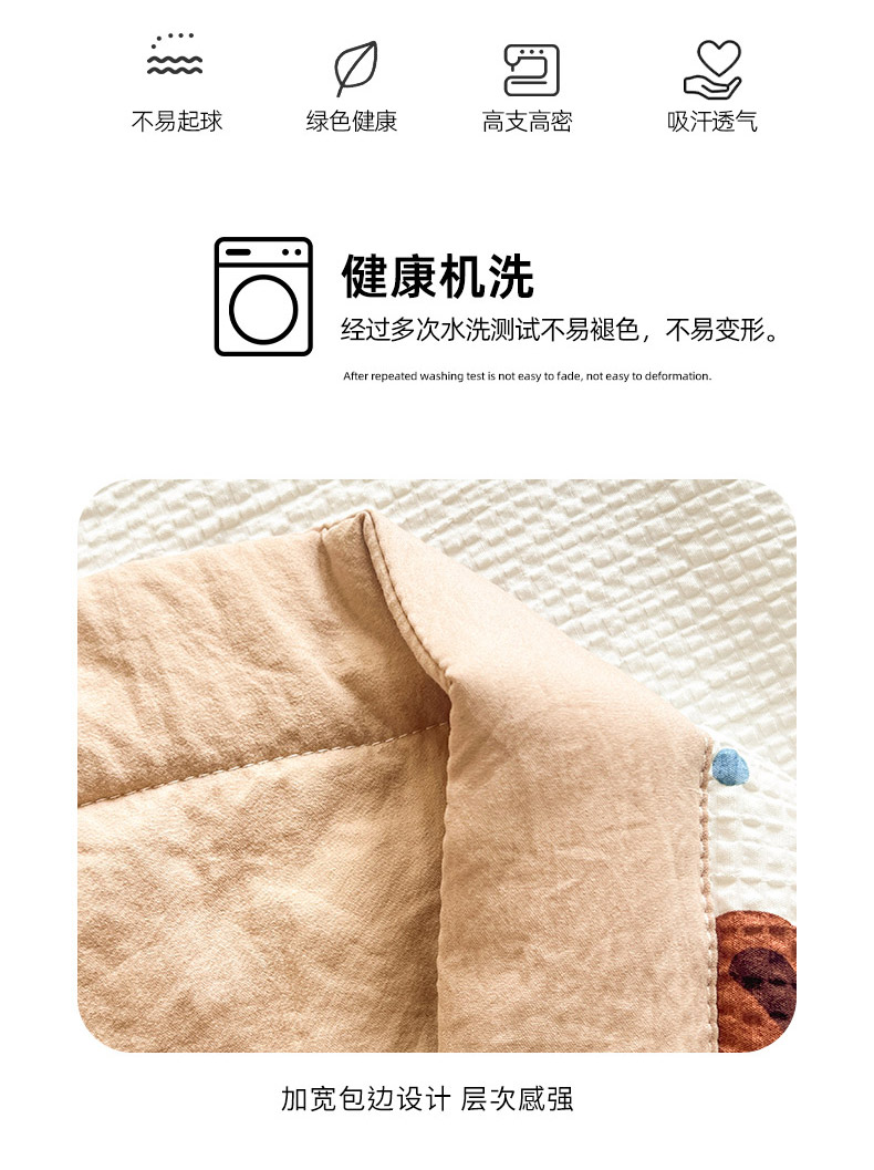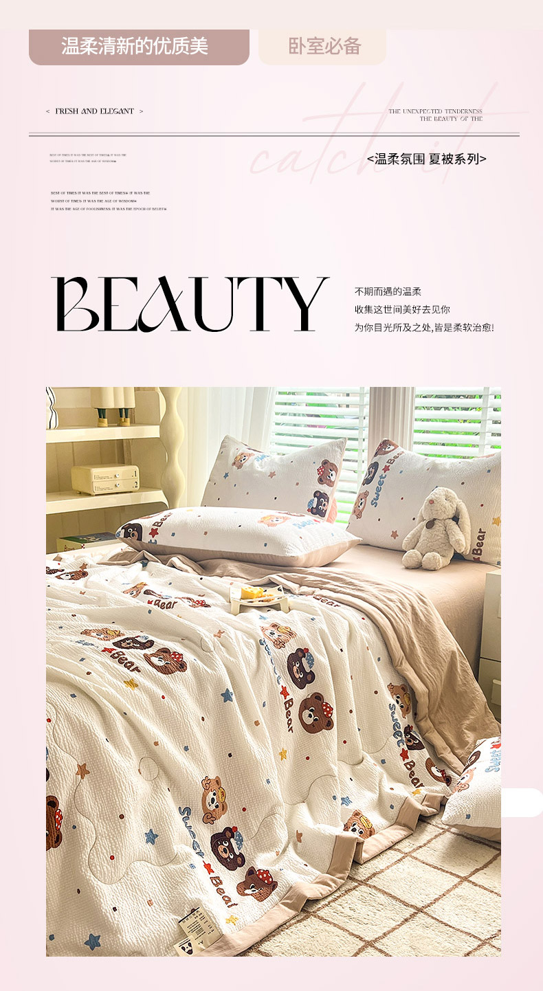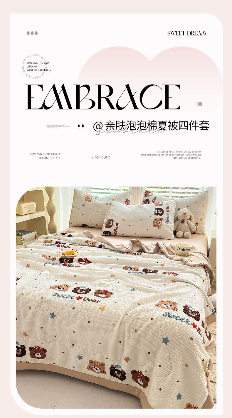 商品名称:妖妖家纺 2024新款有氧水洗泡泡棉印花四套泡芙棉夏被四件套 三只小熊