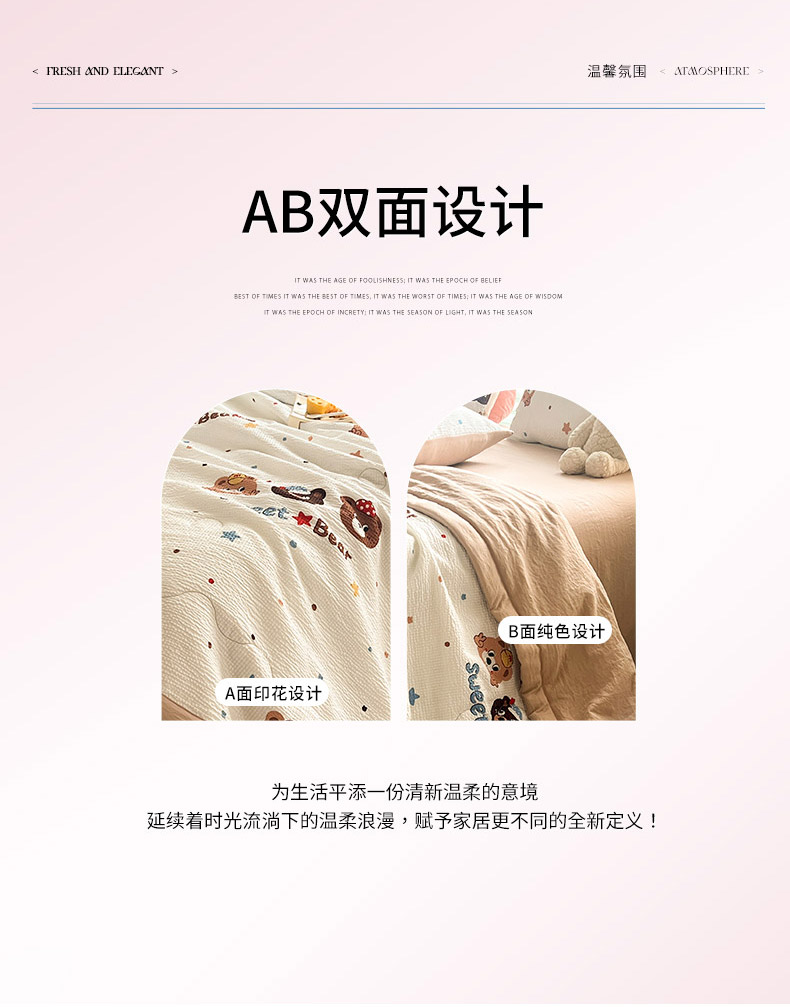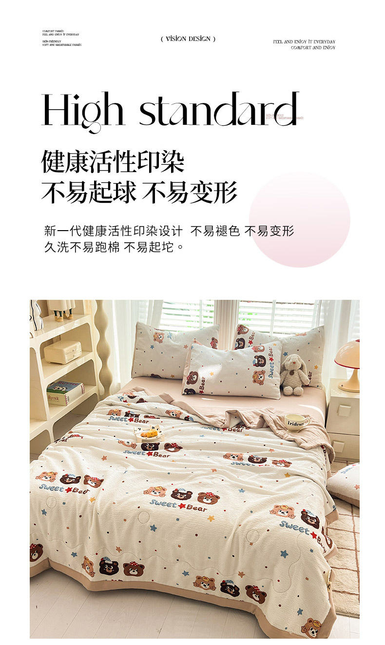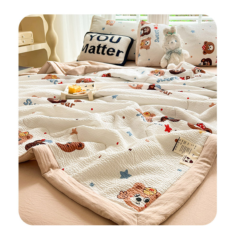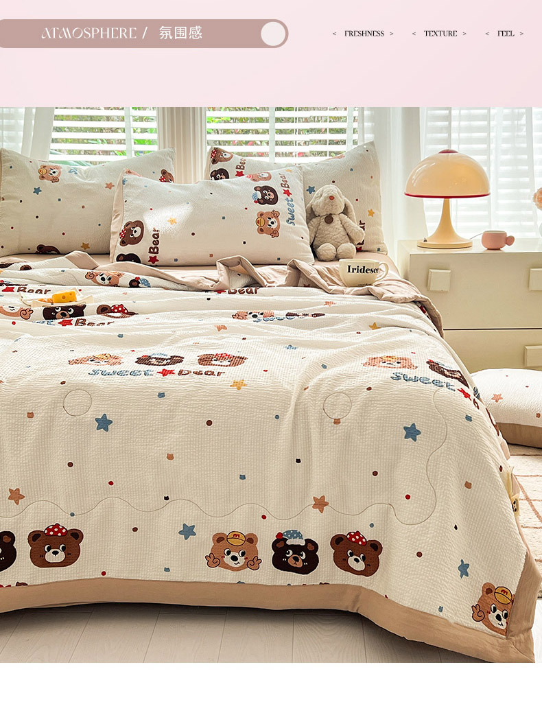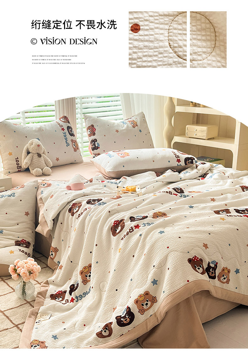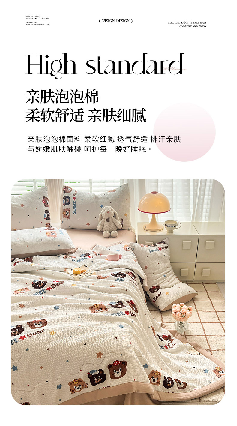 妖妖家纺 2024新款有氧水洗泡泡棉印花四套泡芙棉夏被四件套 三只小熊