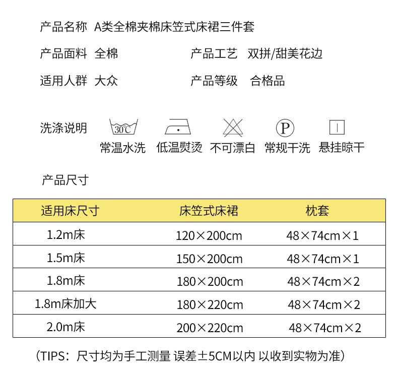 夹棉床裙180*220单件 | ¥130.00 |