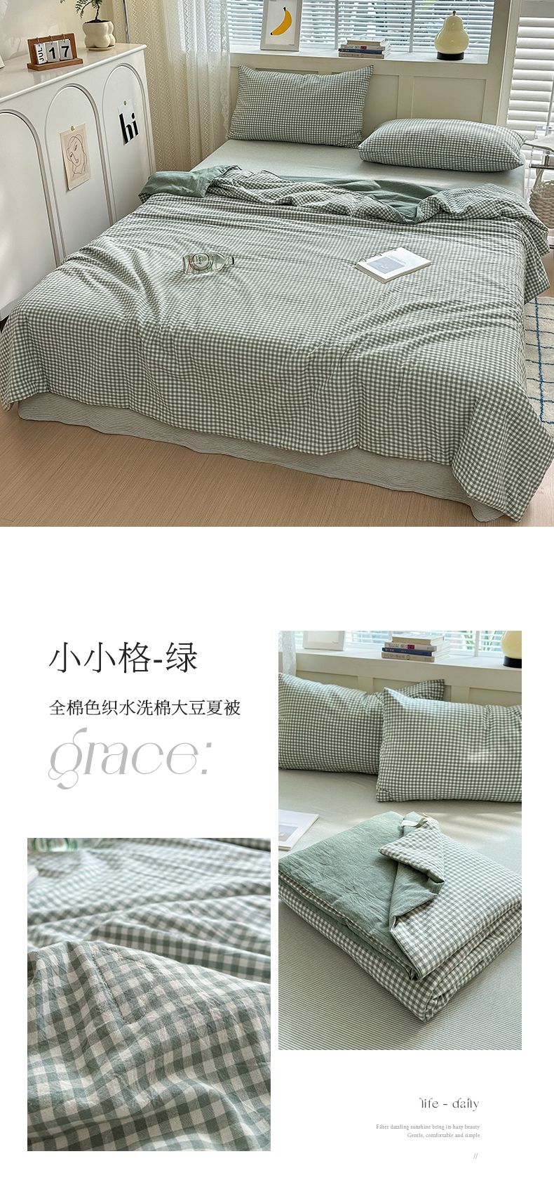当前位置: 91家纺网 > 商品网购 > 床品套件 > 四件套 > 夏被四件套 > 北欧良品 2024新款A类色织水洗棉夏被四件套家用空调被子套件 小小格-绿(枕套条纹+格子)
