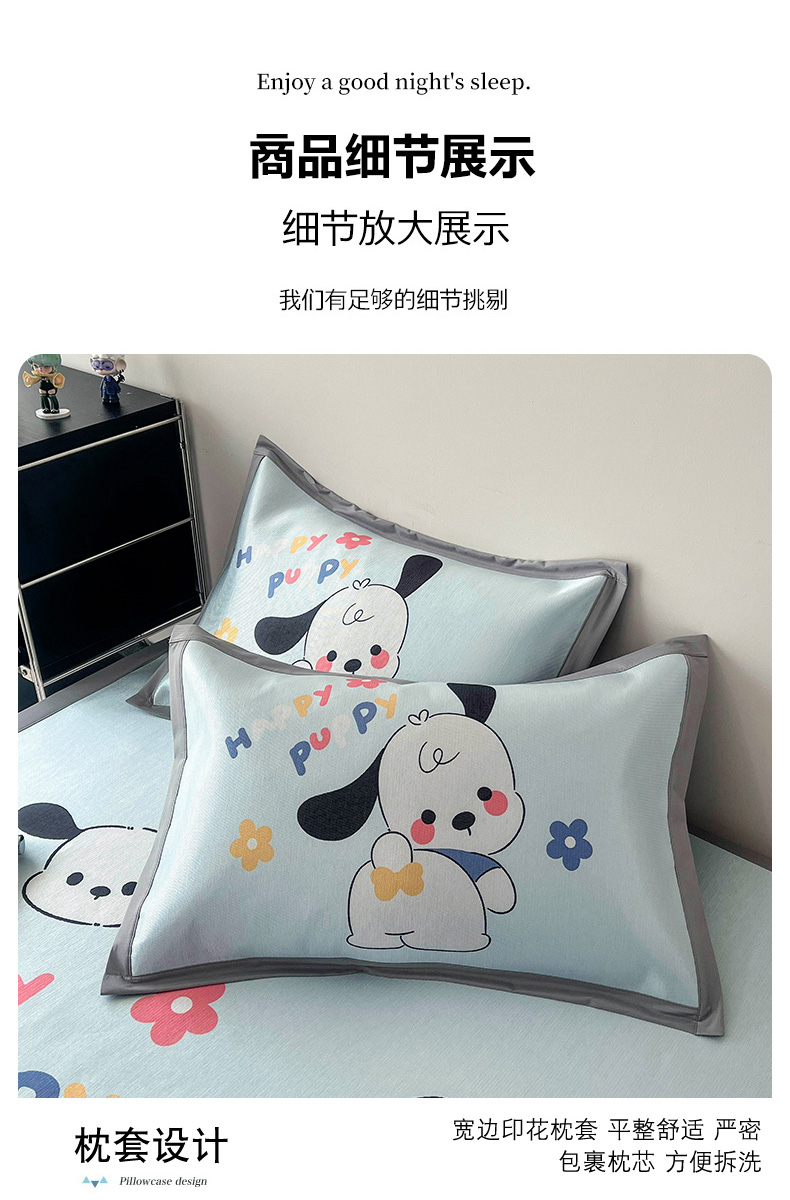 商品名称:倾慕 2024新款A类800D数码印花大版冰丝席凉席 调皮小狗