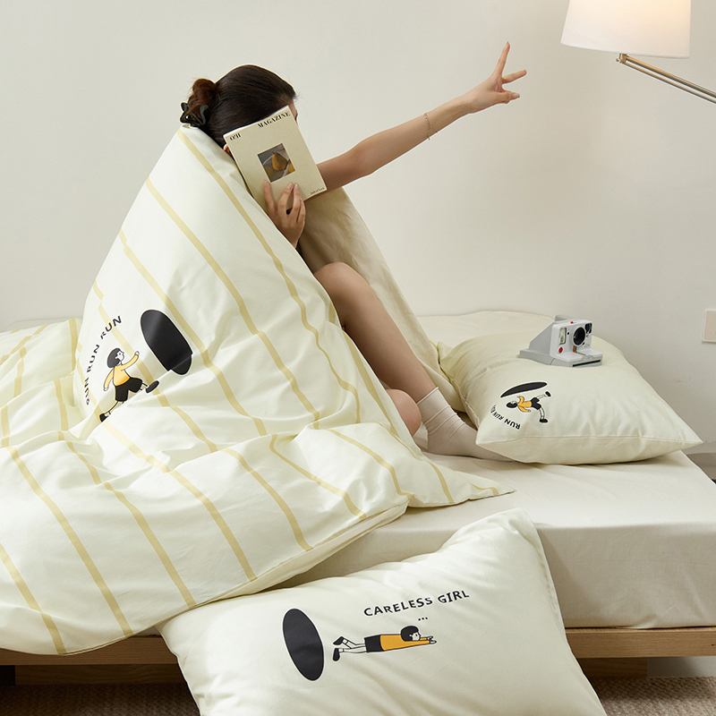 (总)原研家居 2023新款40支全棉13070印花系列四件套(第2批),花间小趣,宁静致远,大头鸭,波点煤球