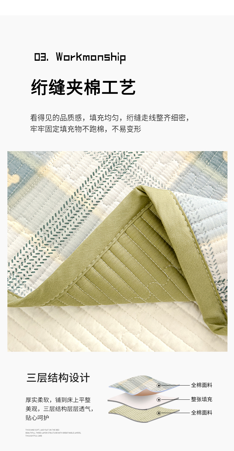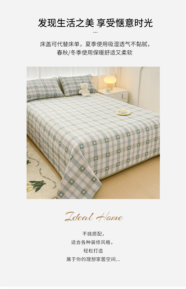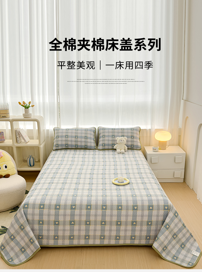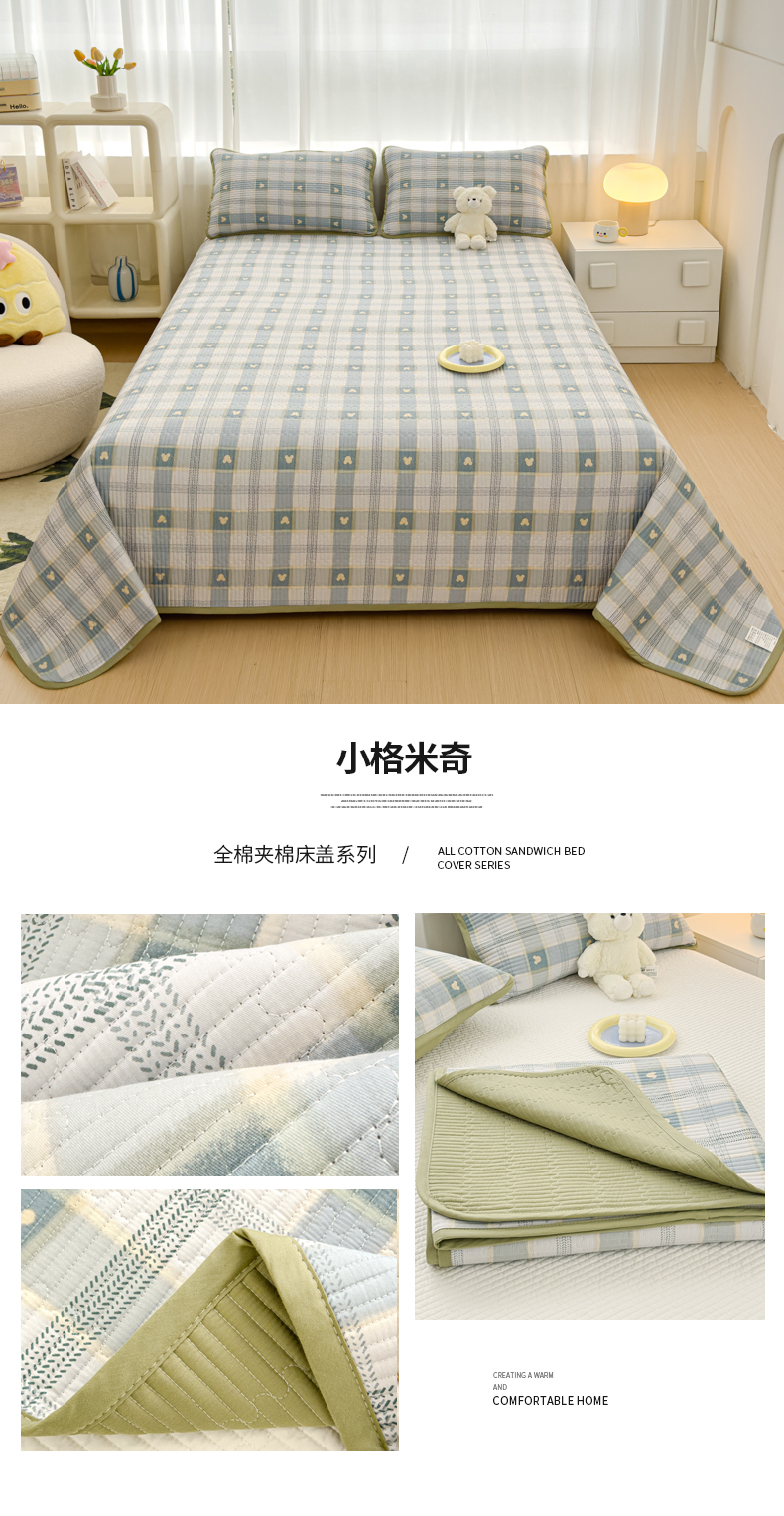 金丝鸟家纺 2024新款双面全棉夹棉床盖 小格米奇