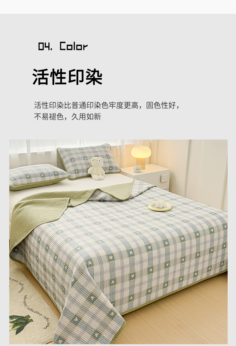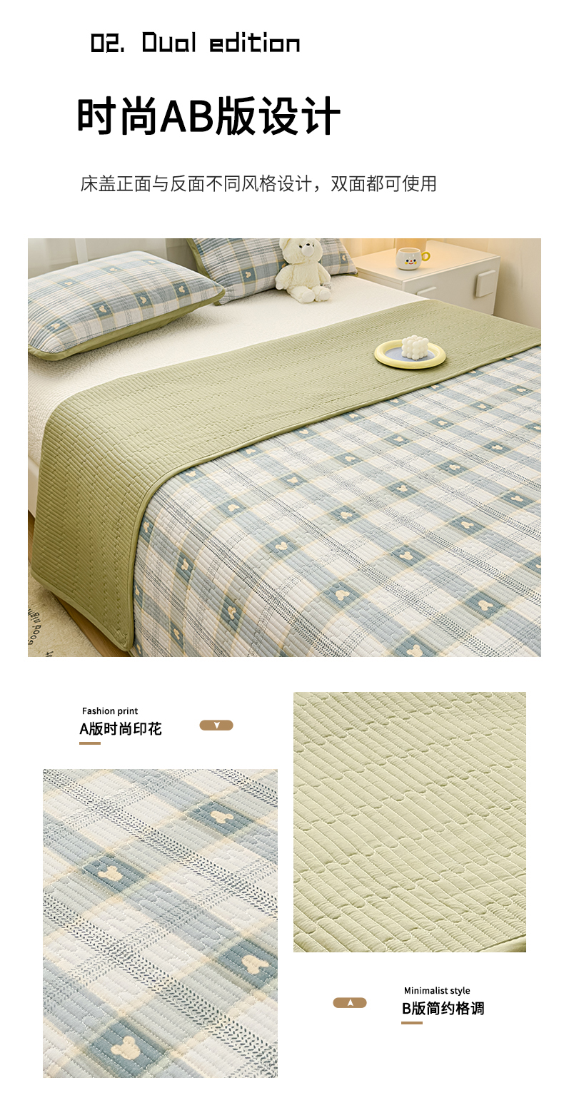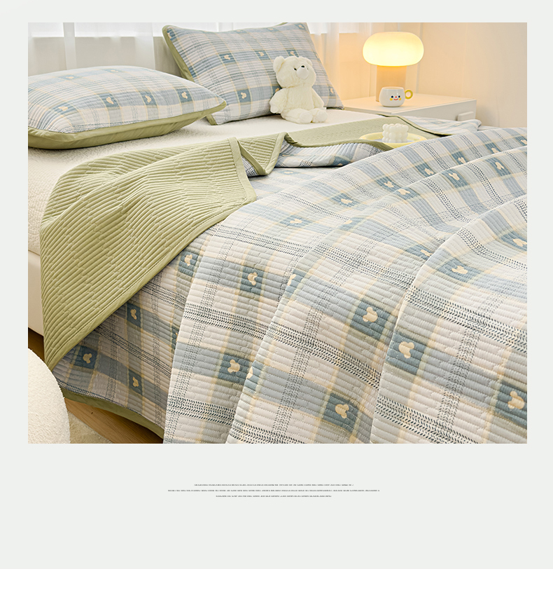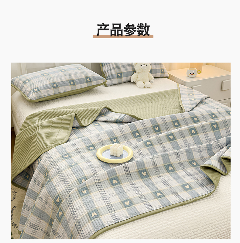 商品名称:金丝鸟家纺 2024新款双面全棉夹棉床盖 小格米奇