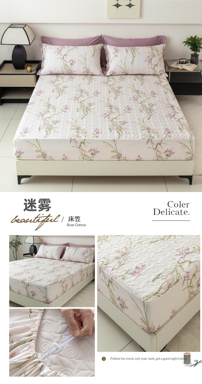 商品名称:优乐家纺 2025新款纯棉印花夹棉床笠三件套系列-纽扣款 迷雾