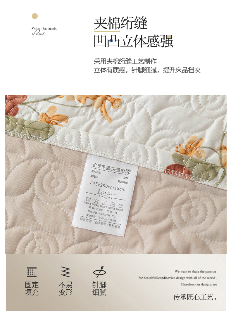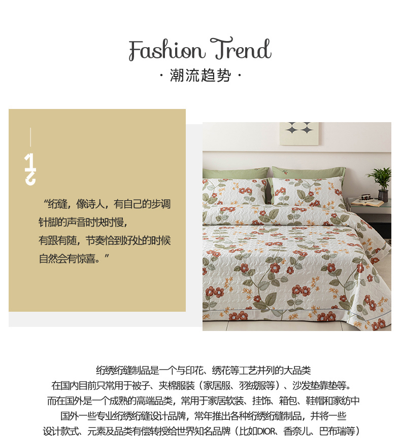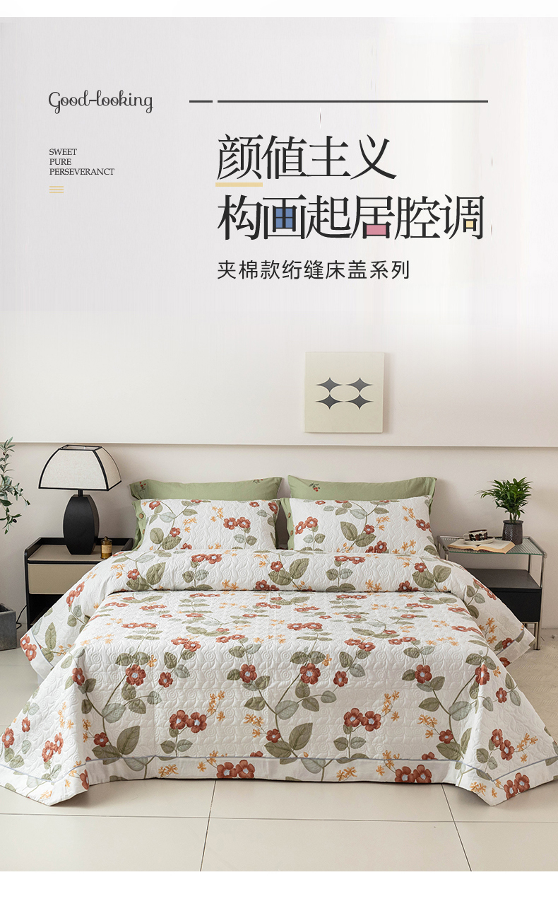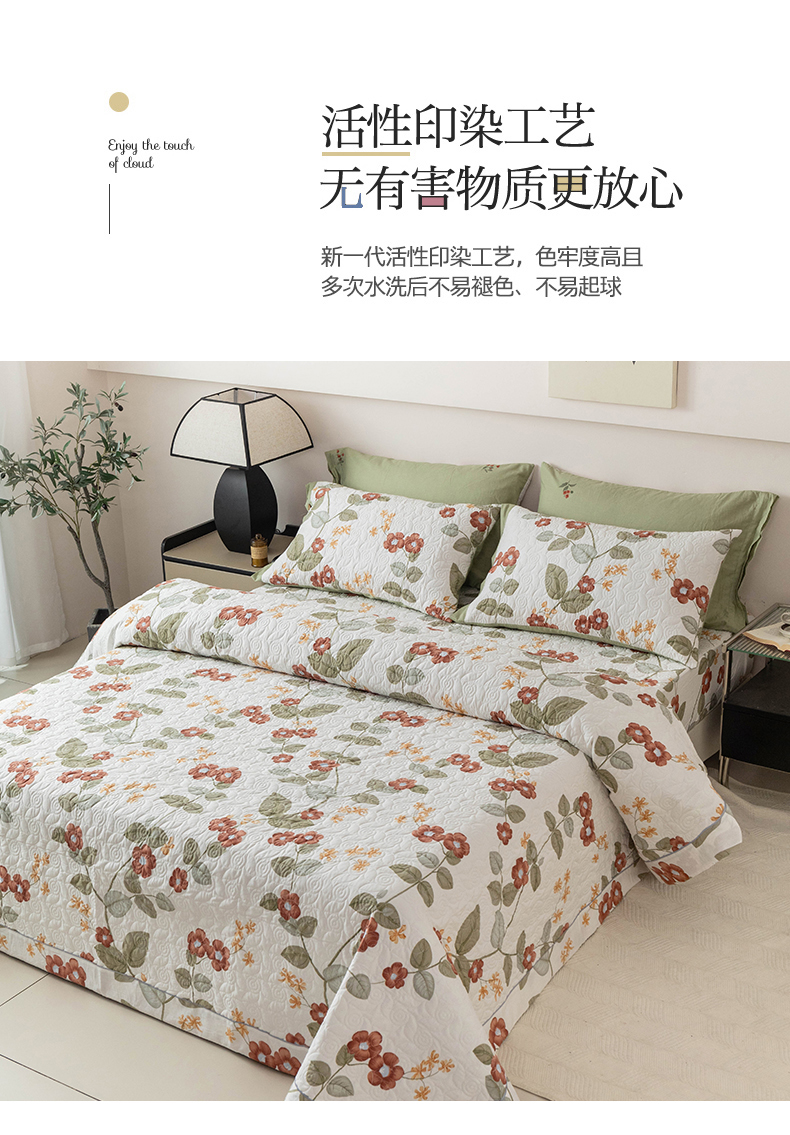 • 91家纺网 家纺一手货源 找家纺 优乐家纺 2025新款纯棉印花夹棉系列床盖三件套-纽扣款 和颜悦色