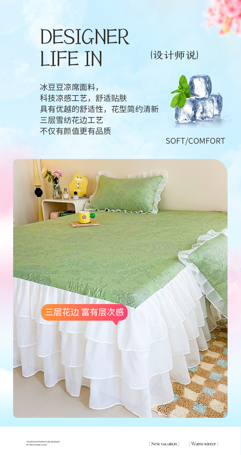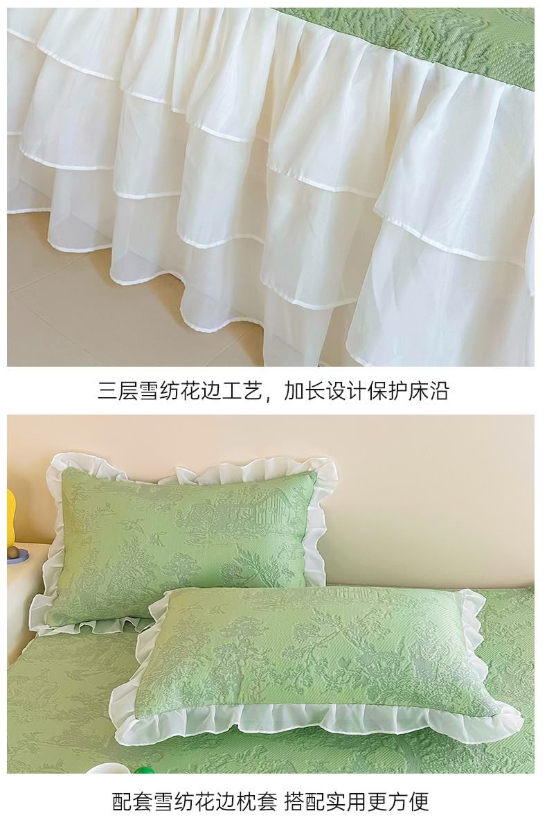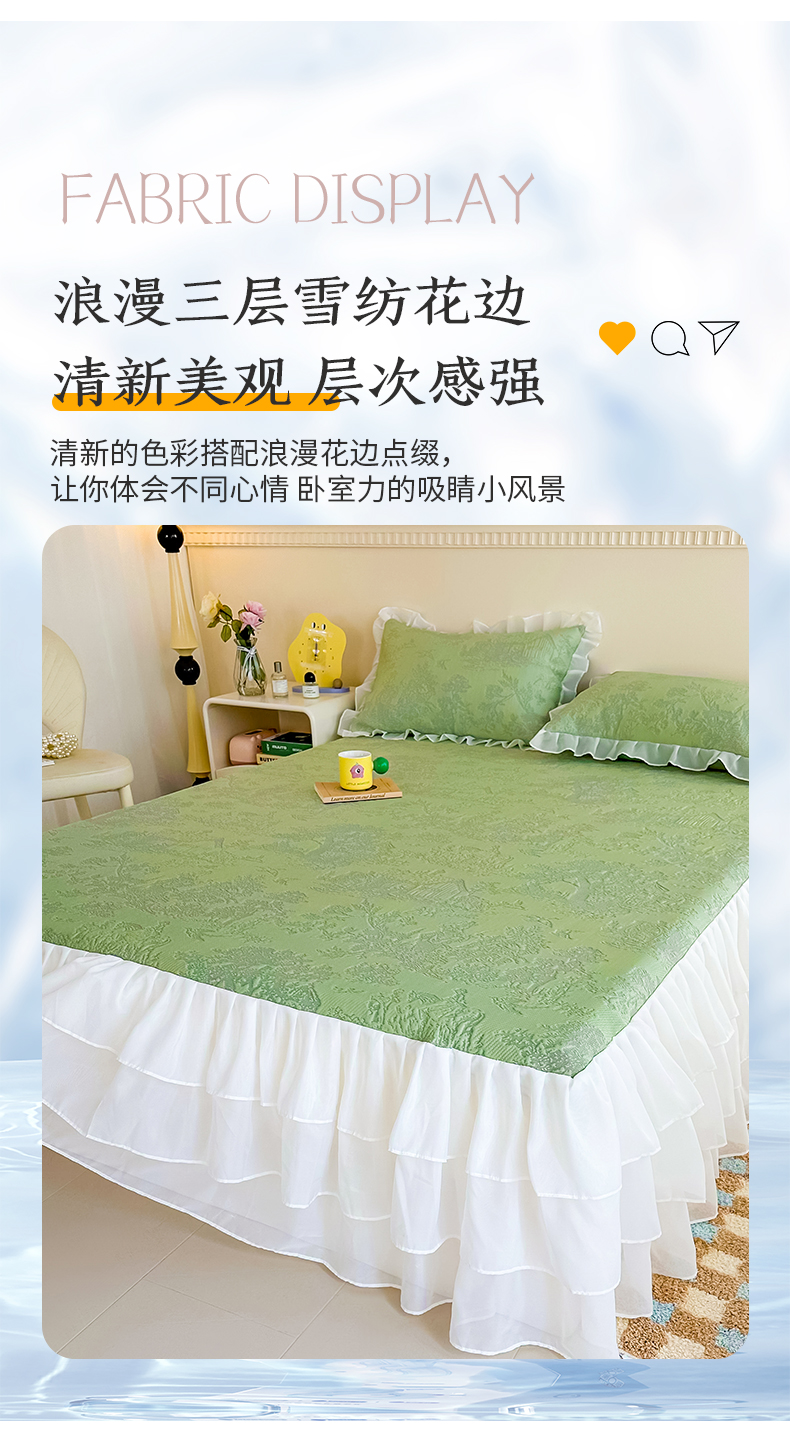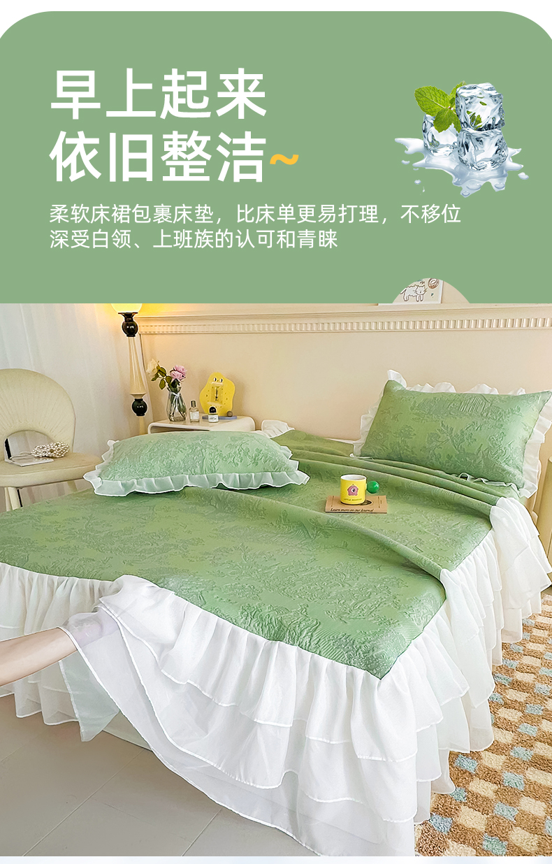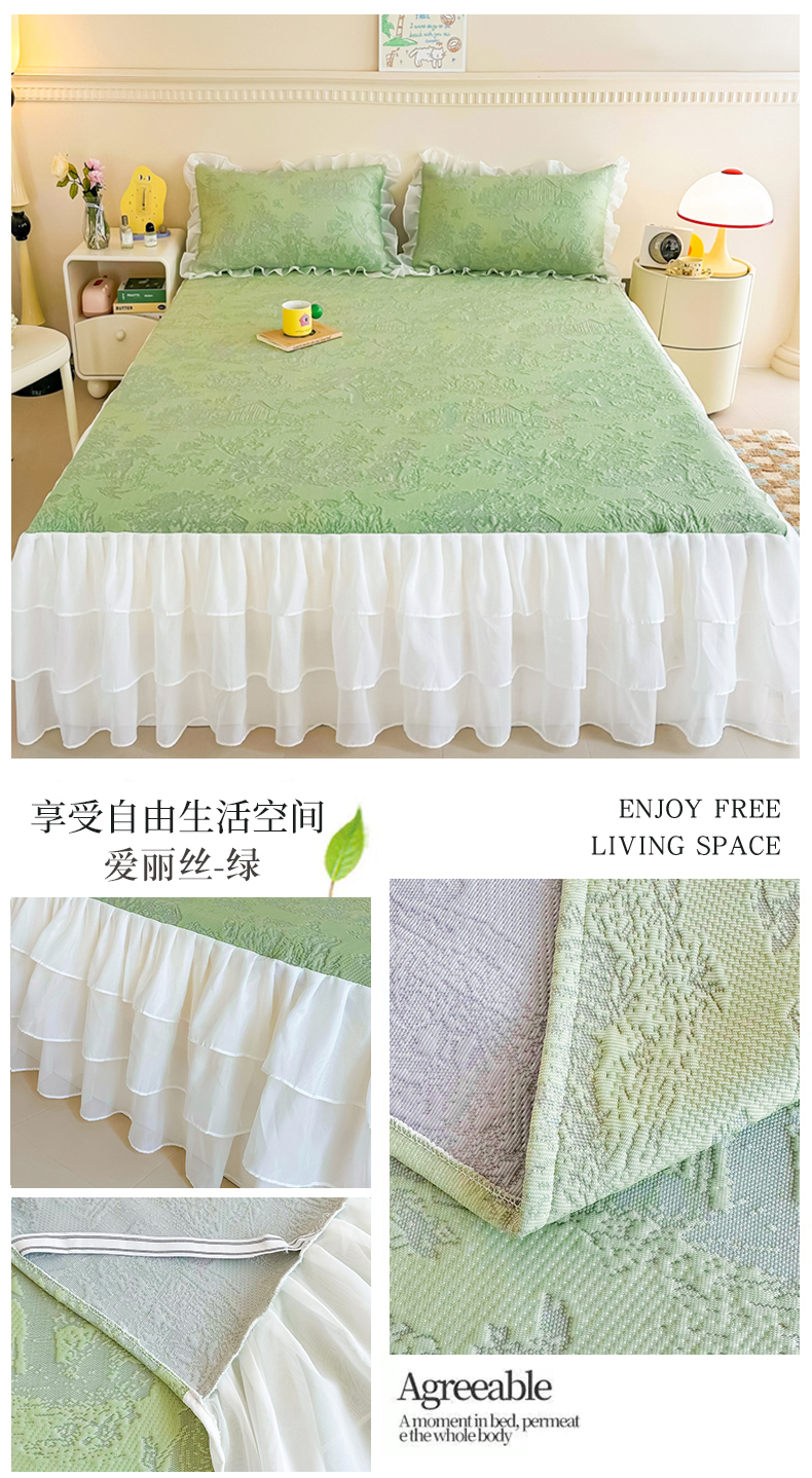 屹成家纺 2024新款PE高分子冰丝凉席床裙款 爱丽丝-绿