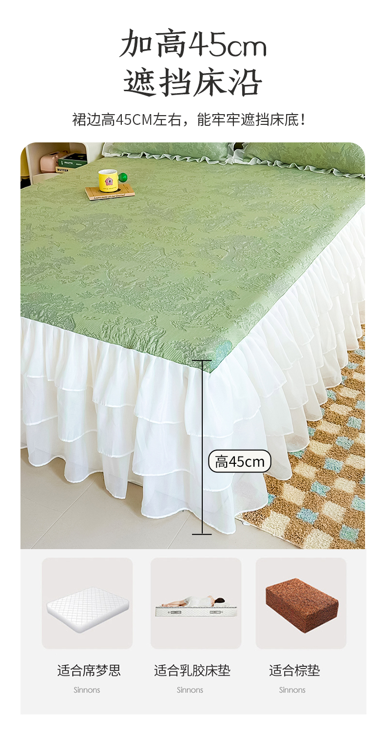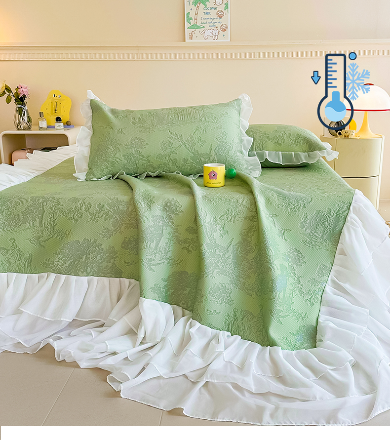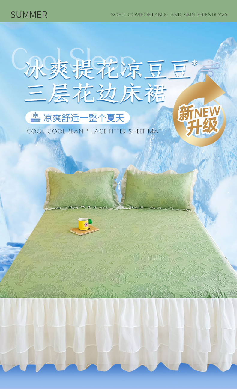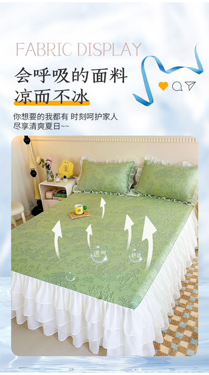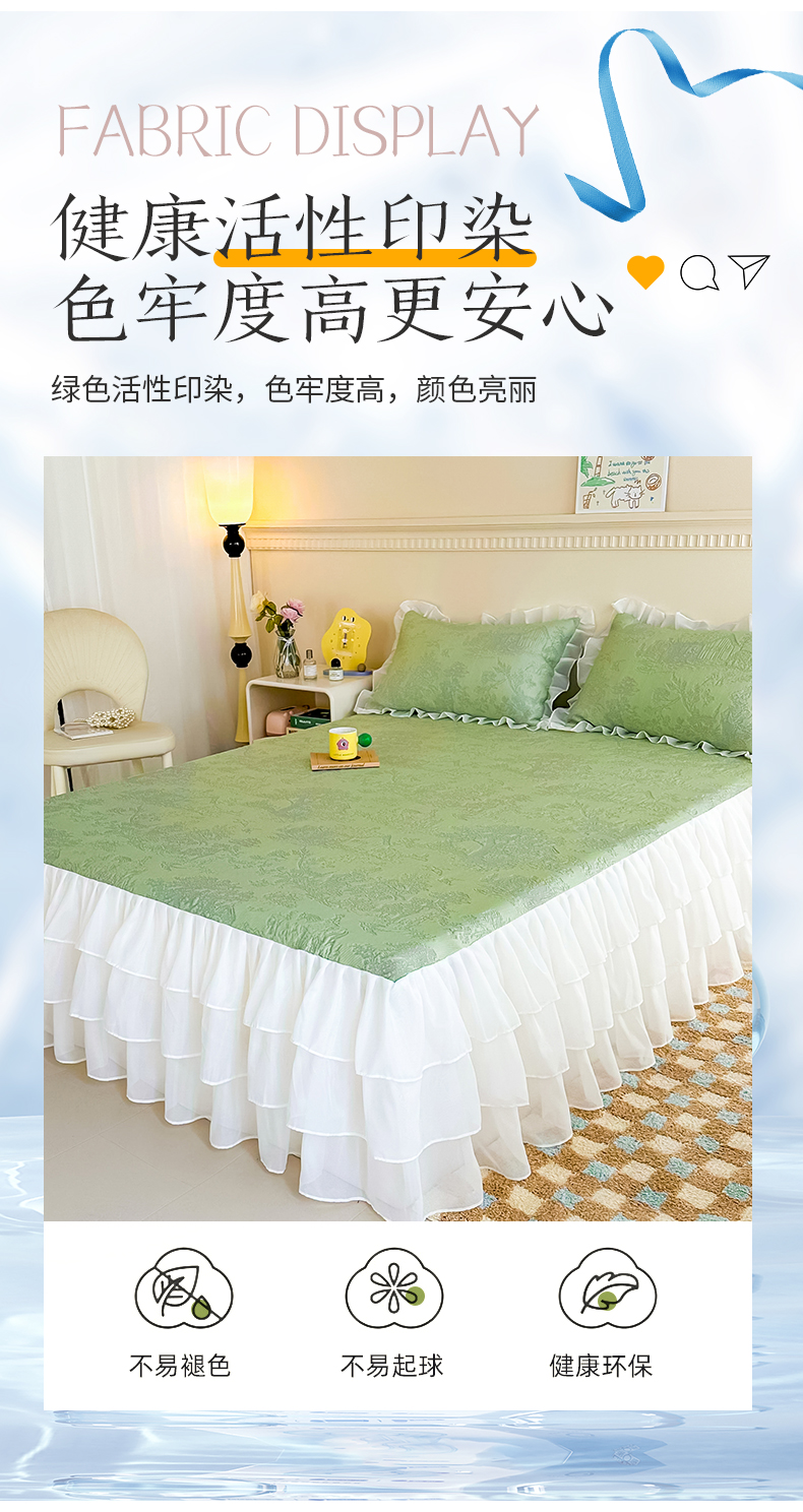 屹成家纺 2024新款PE高分子冰丝凉席床裙款 爱丽丝-绿
