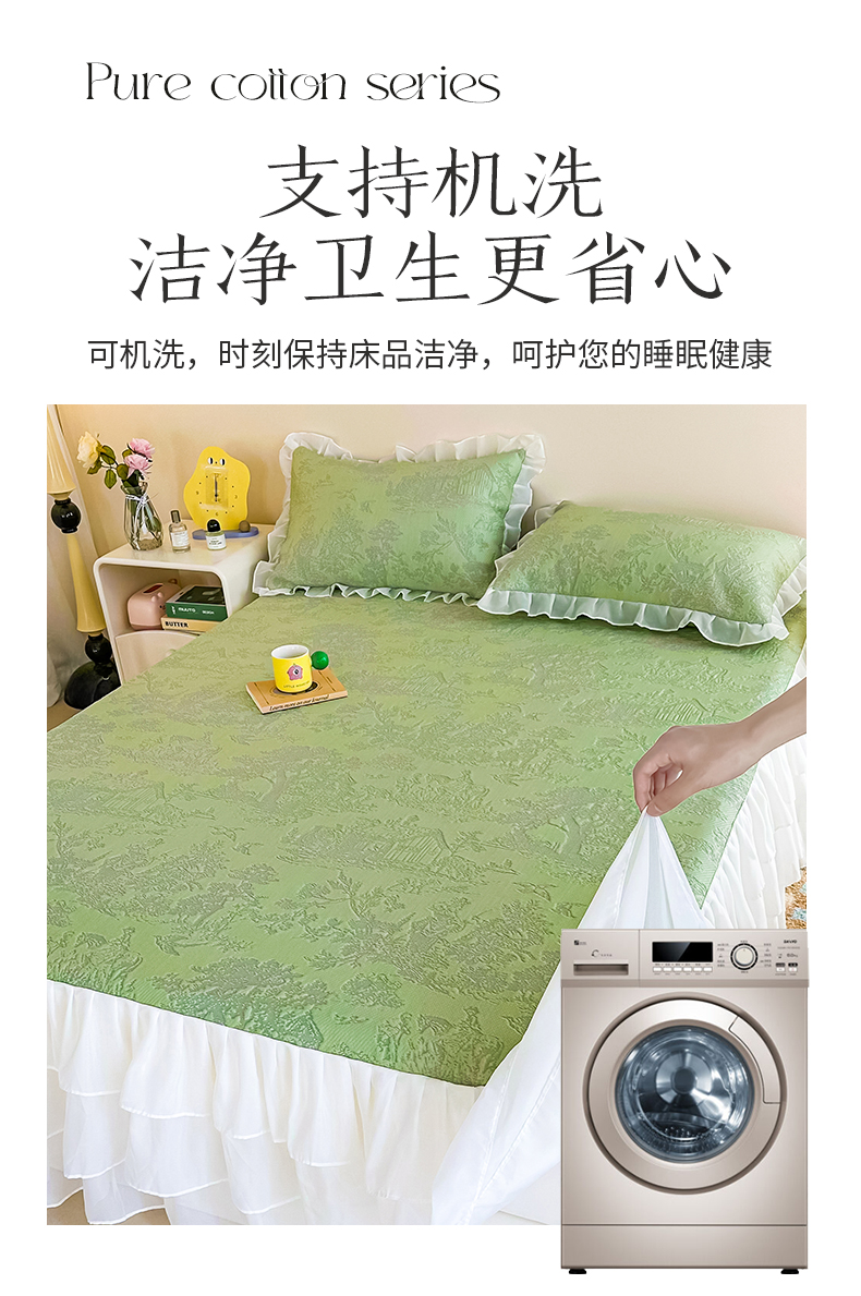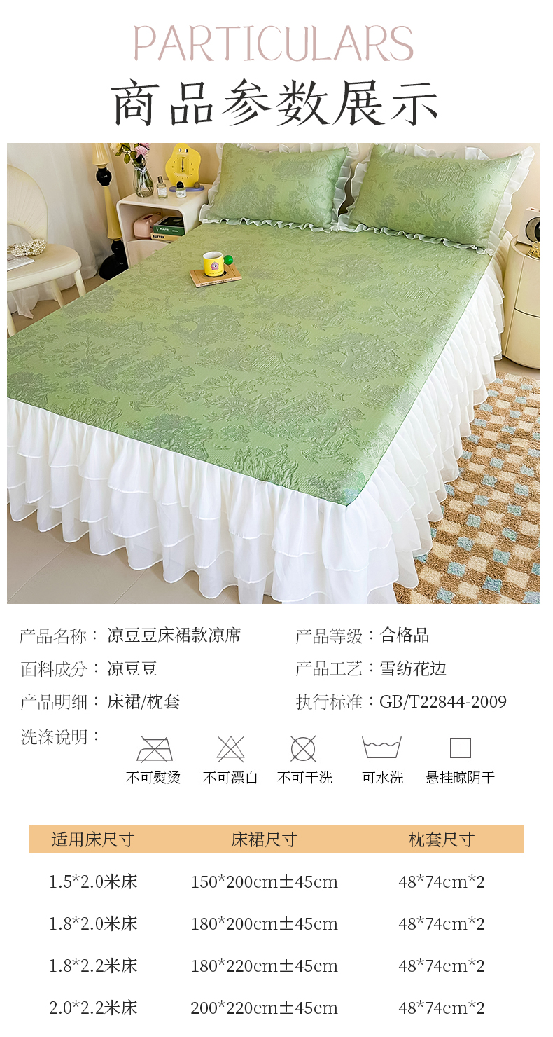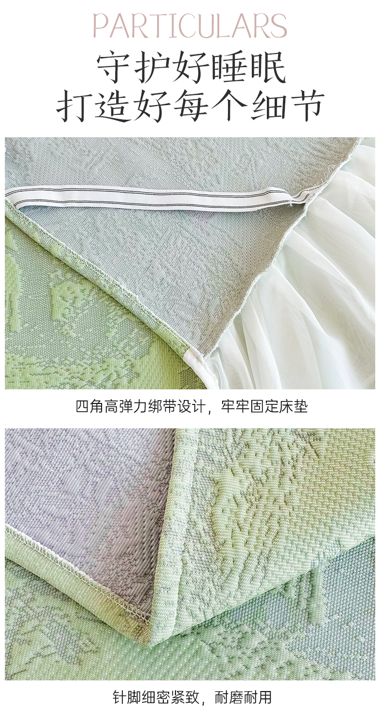 商品名称:屹成家纺 2024新款PE高分子冰丝凉席床裙款 爱丽丝-绿