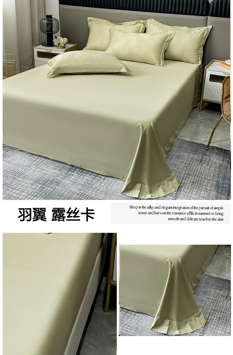 (总)艾迪尚家纺 2026法式韩版荷叶边纯色长绒棉纯棉单床单单品床单床单单件,薄荷青灰,冰川蓝香草白,茉绿奶芙,奶芙慕粉,青提絮语,柔杏浅绿,瑞绿慕斯粉,雾蓝杏语,云白芽绿,云灰仙女粉